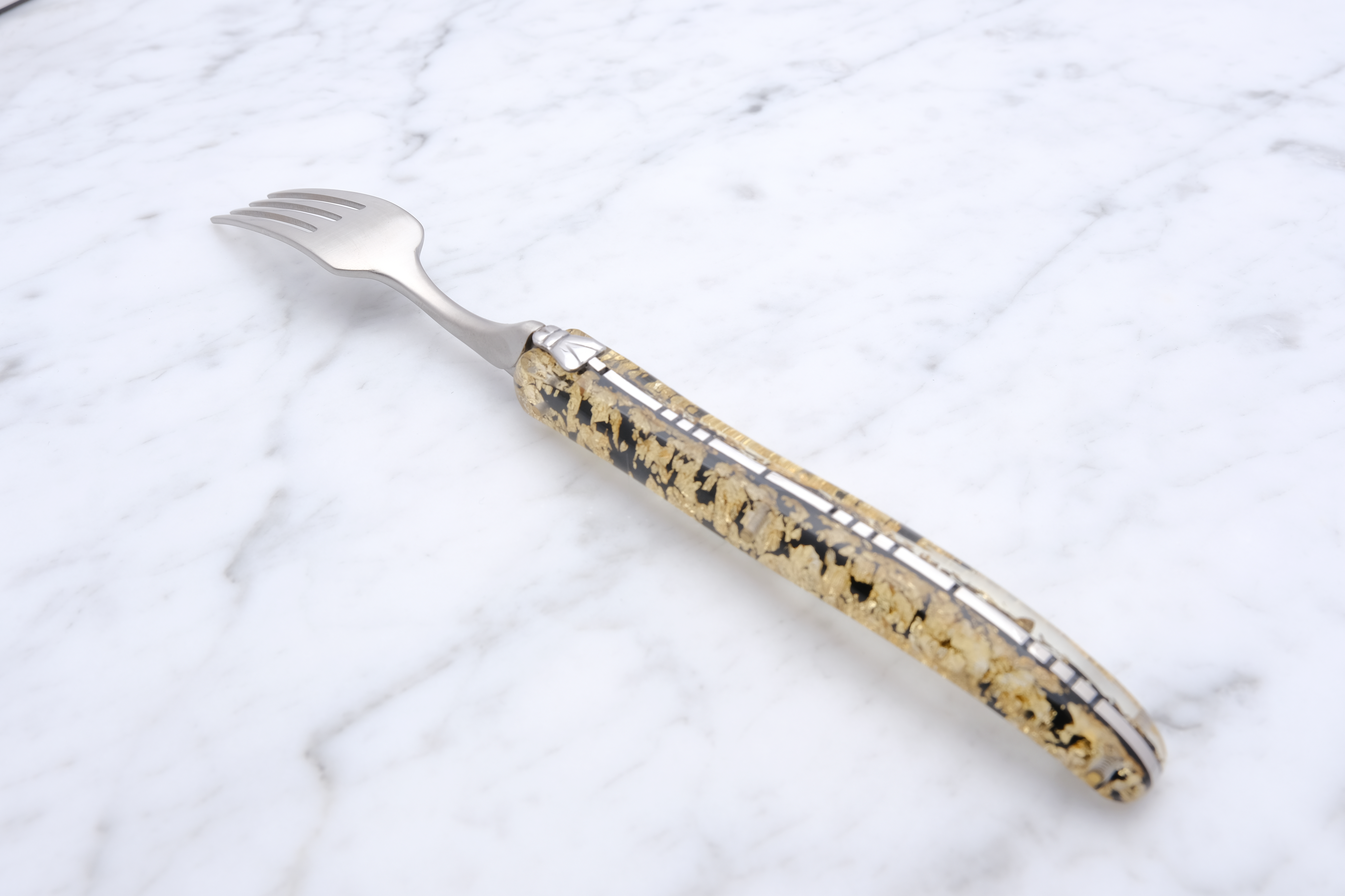 Laguiole En-Aubrac hat eine lange und stolze Tradition im Schmieden von Klappmessern, Steakmessern und Korkenziehern. Hier haben sie elegante Gabeln hergestellt, die gut mit ihren Klapp- und Steakmessern auf dem Esstisch harmonieren und das gleiche klassische Design aufweisen.