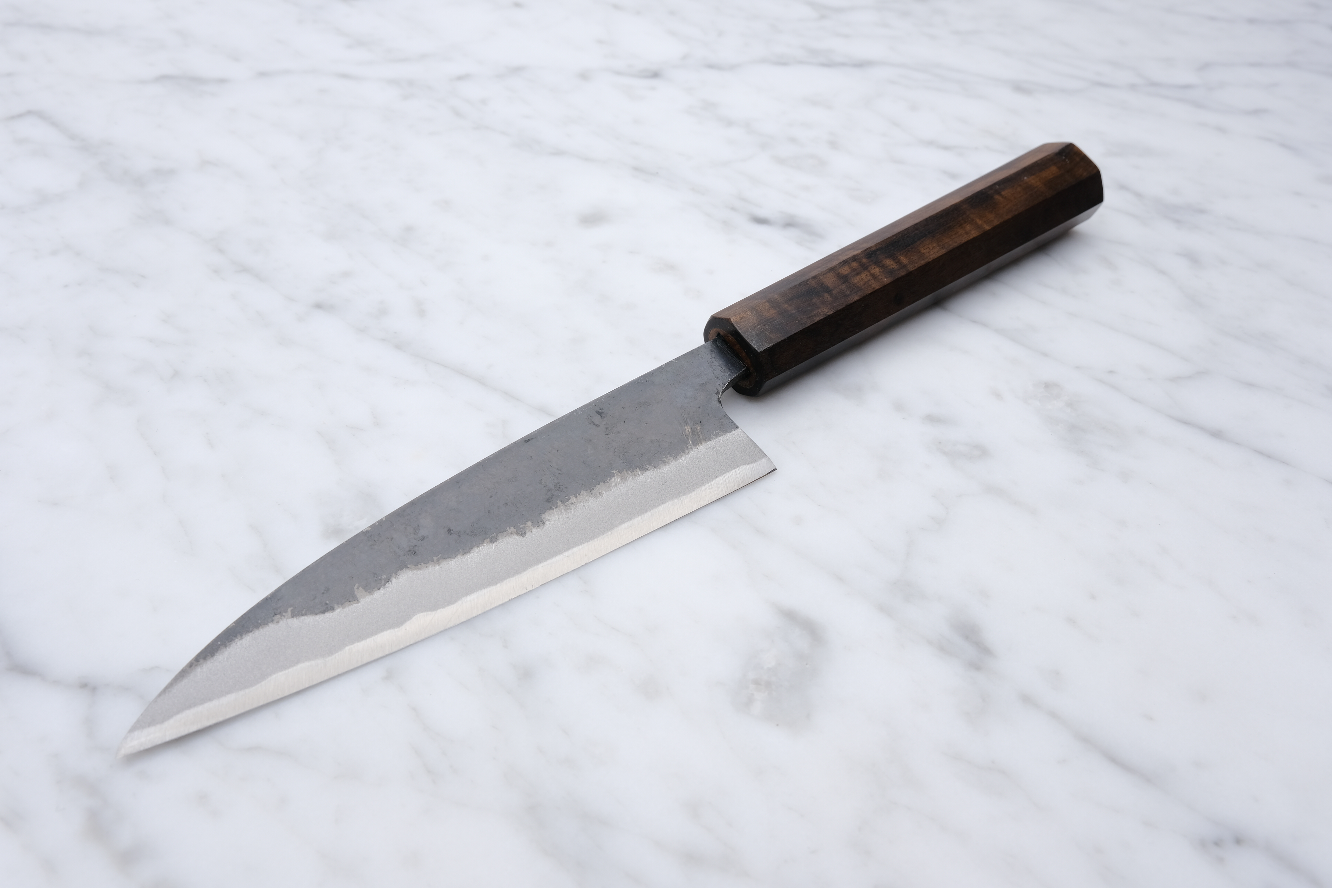 Die in Tosa, Japan, von Hand geschmiedeten Sumi-Serien bestehen aus Blau 2 im Kern und Weicheisen auf der Außenseite, was bedeutet, dass sie mit der Zeit eine Patina bilden und möglicherweise rosten können, wenn sie nicht gepflegt werden.