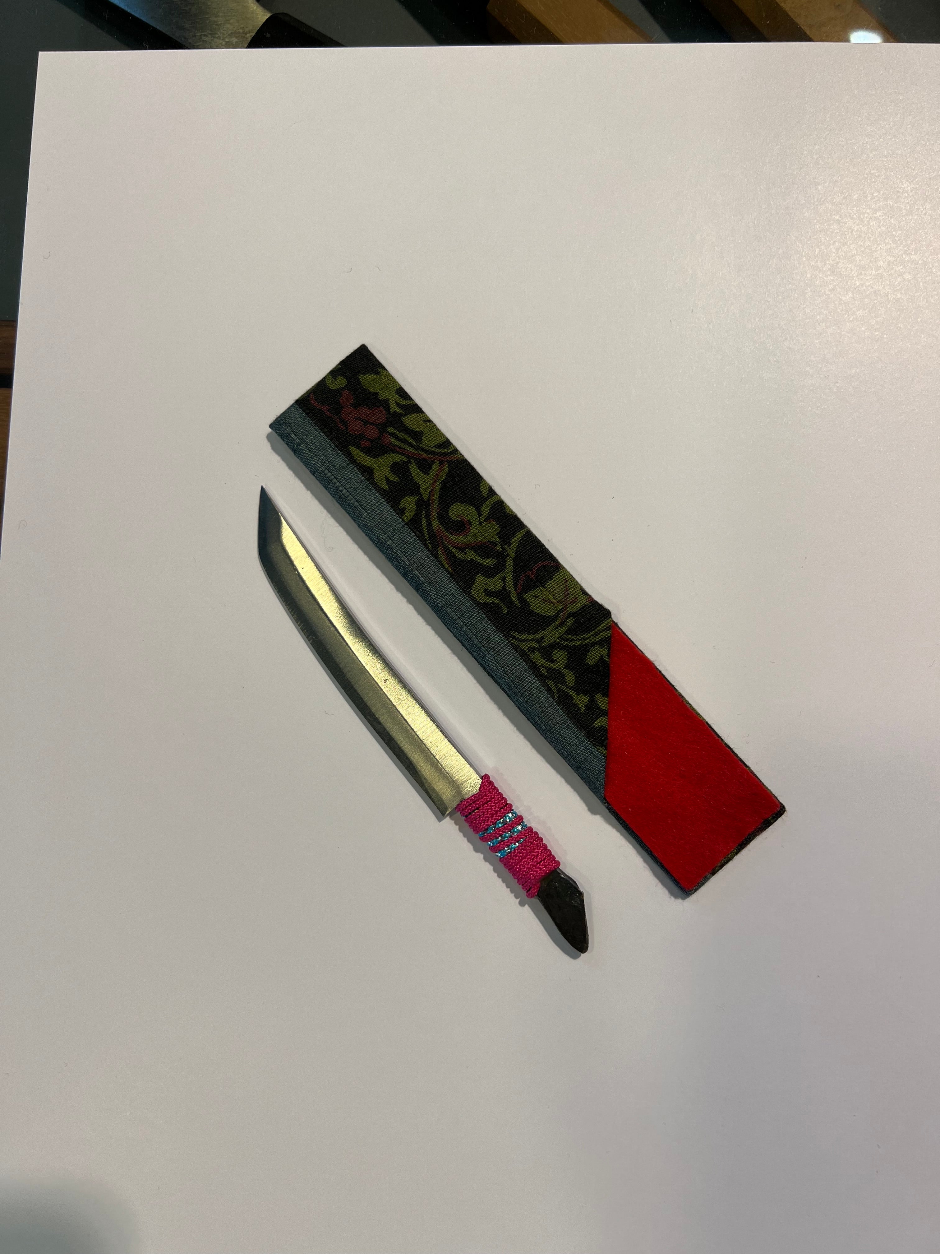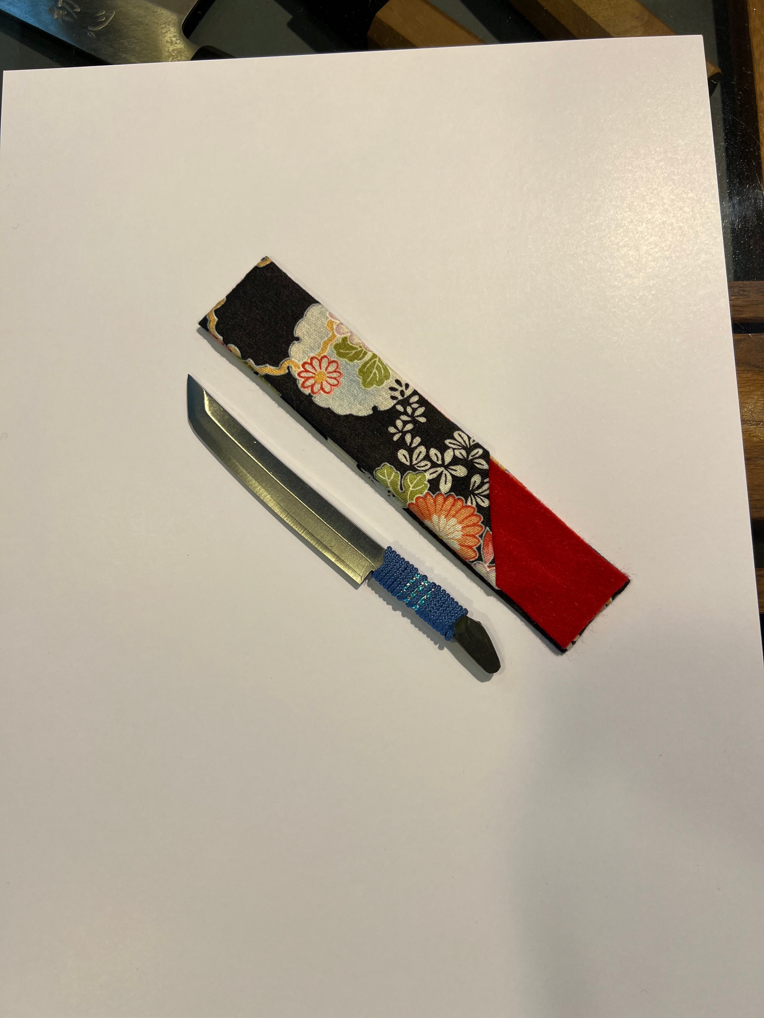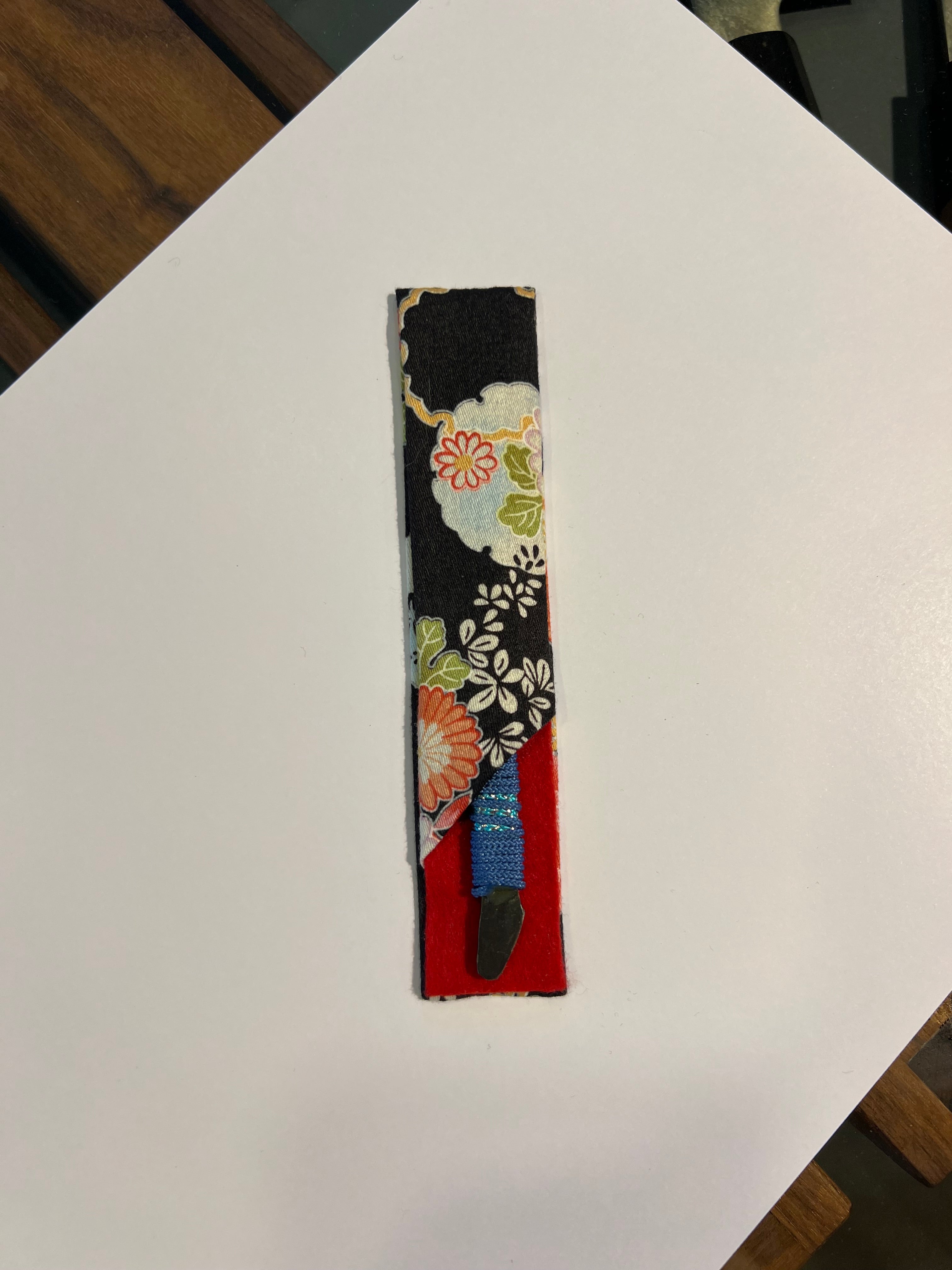 Schöner kleiner Brief, der mit Stoff-Saya geöffnet wird.