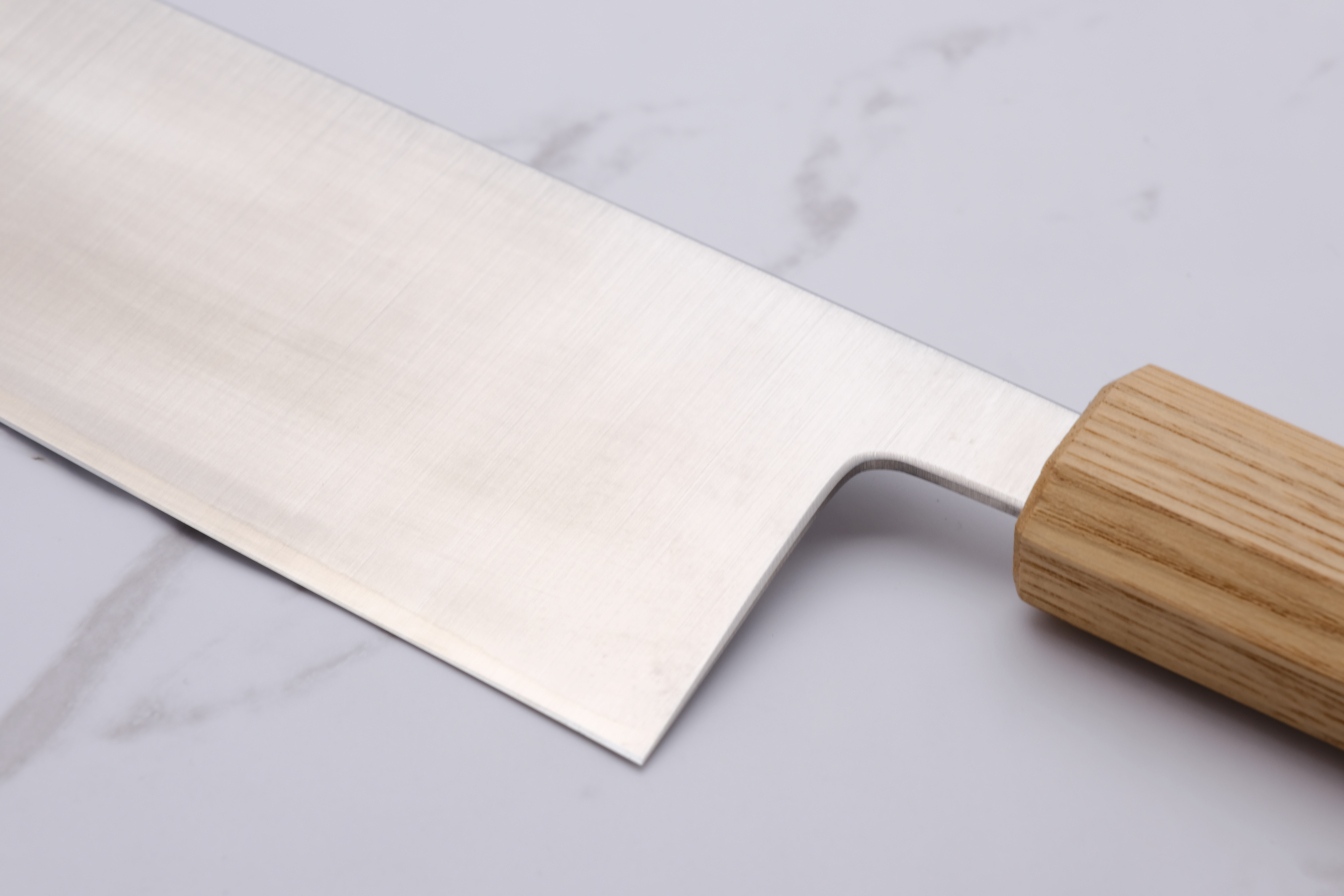 Ein Aspekt des Messerschmiedens, den Konosuke besonders gut beherrscht, ist die Fähigkeit, die Klingen von der Ferse bis zur Spitze keilförmig zu gestalten. Dadurch ist die Klinge sehr dünn, was zusammen mit der Schärfe dazu führt, dass das Messer beim Schneiden leicht gleitet.