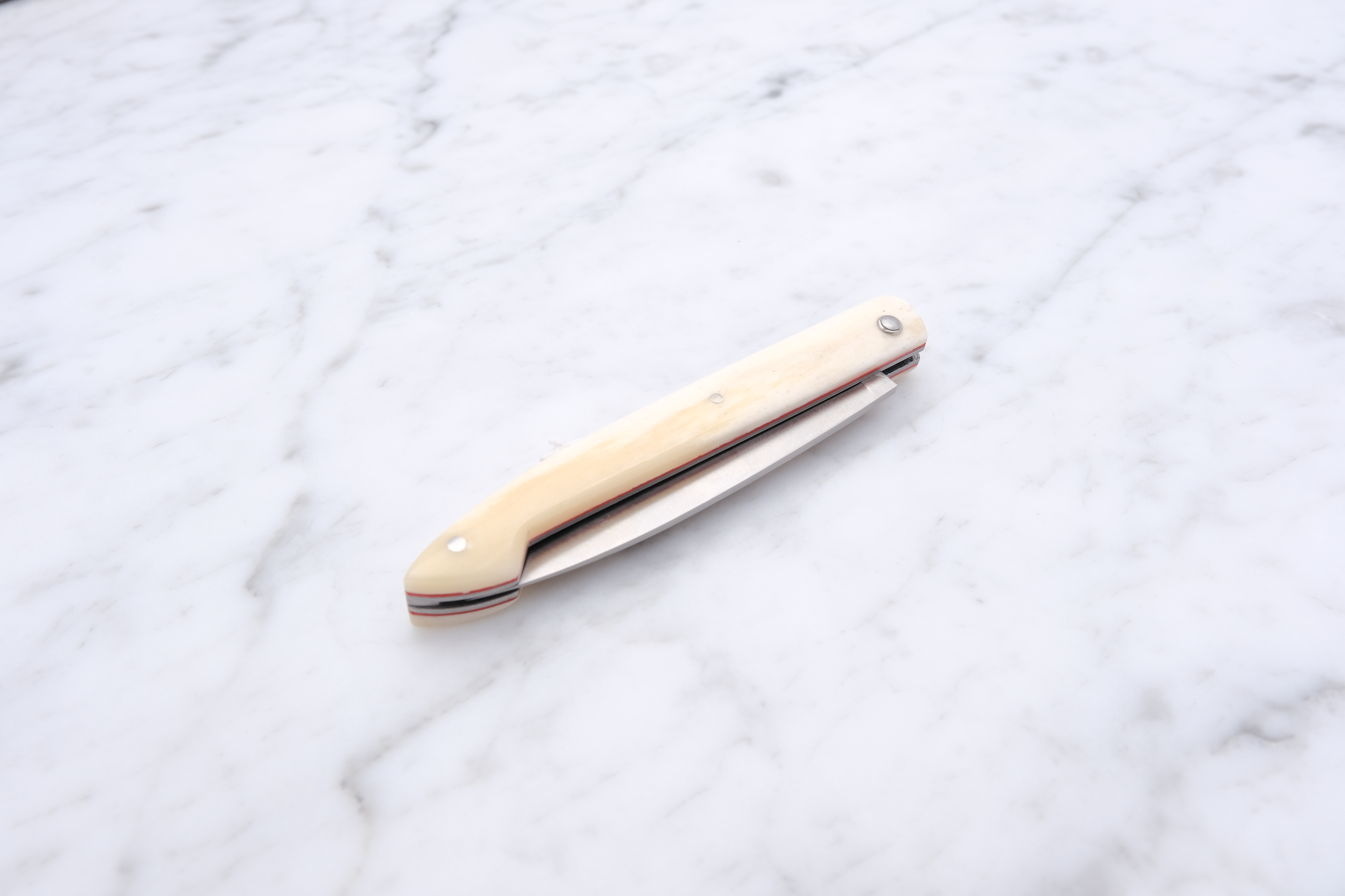 Laguiole Klappmesser 10cm. - Rinderknochen mit roter Zwischenschicht