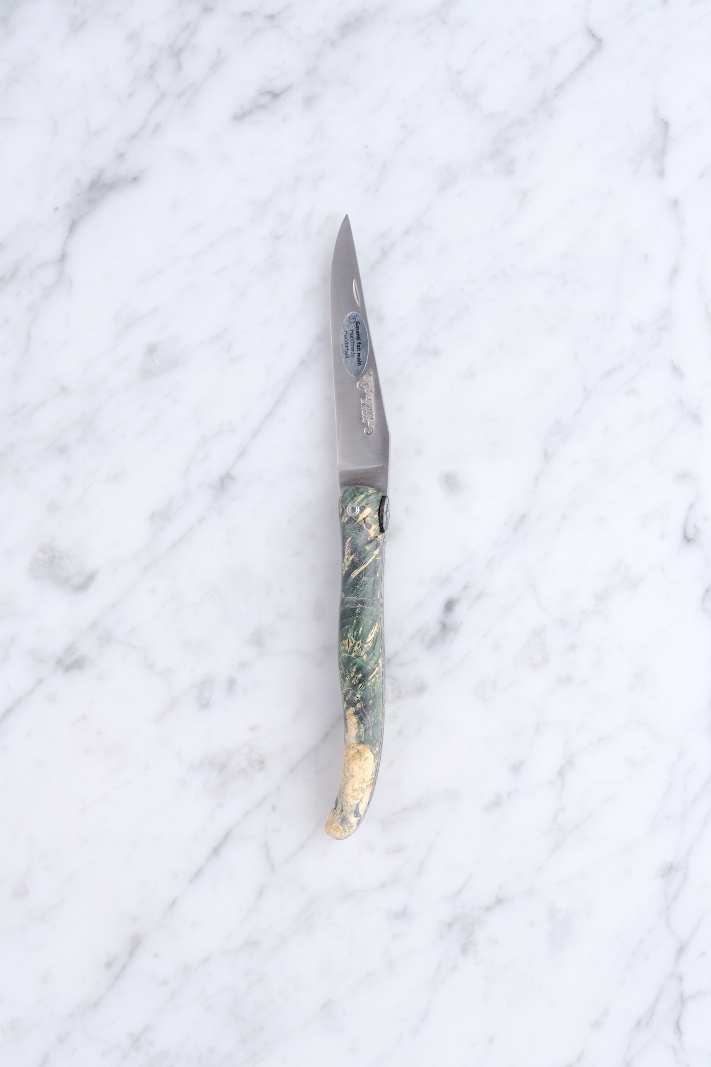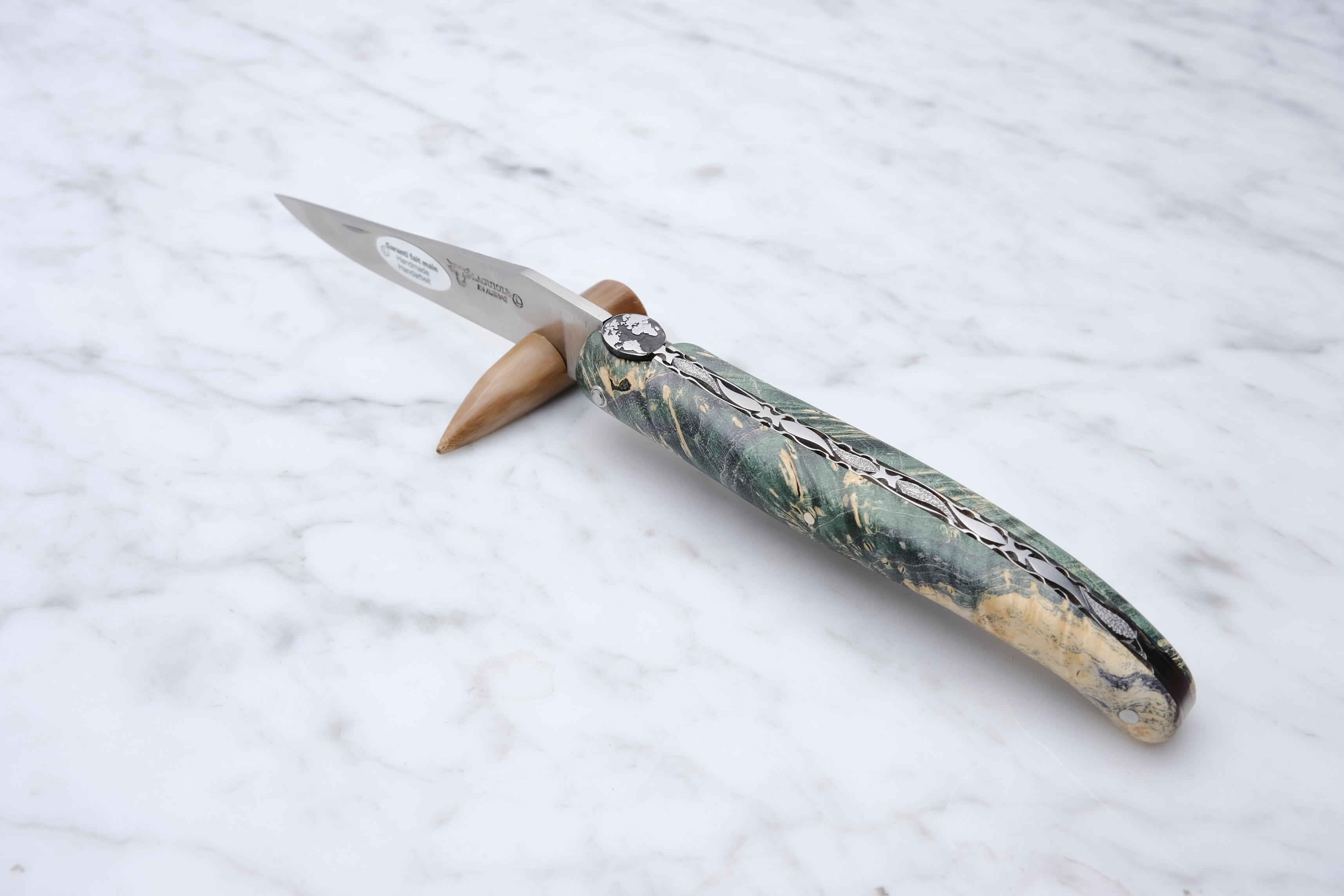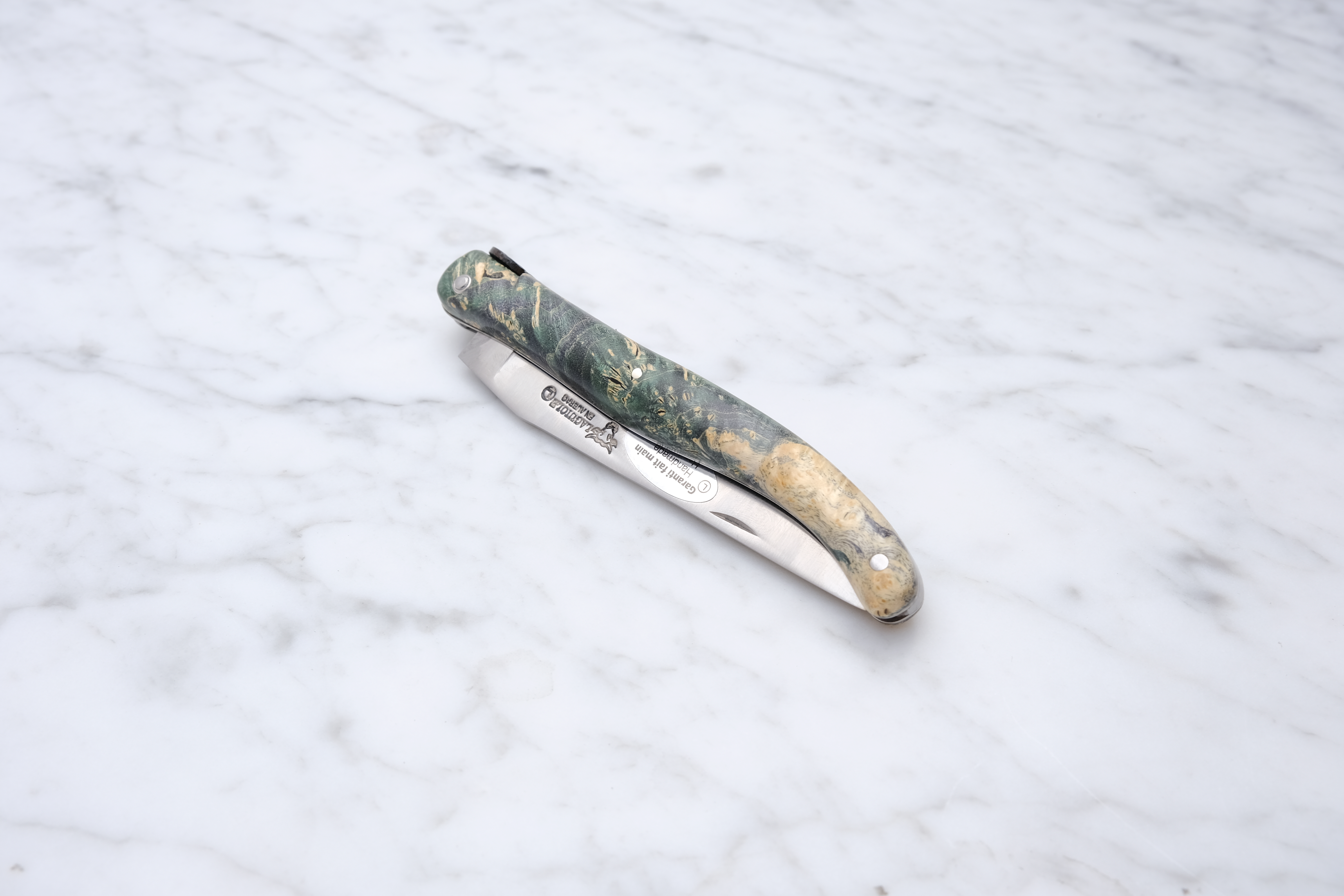 Laguiole Taschenmesser 12cm - Grüner stabilisierter Pappelknopf (Erdthema)