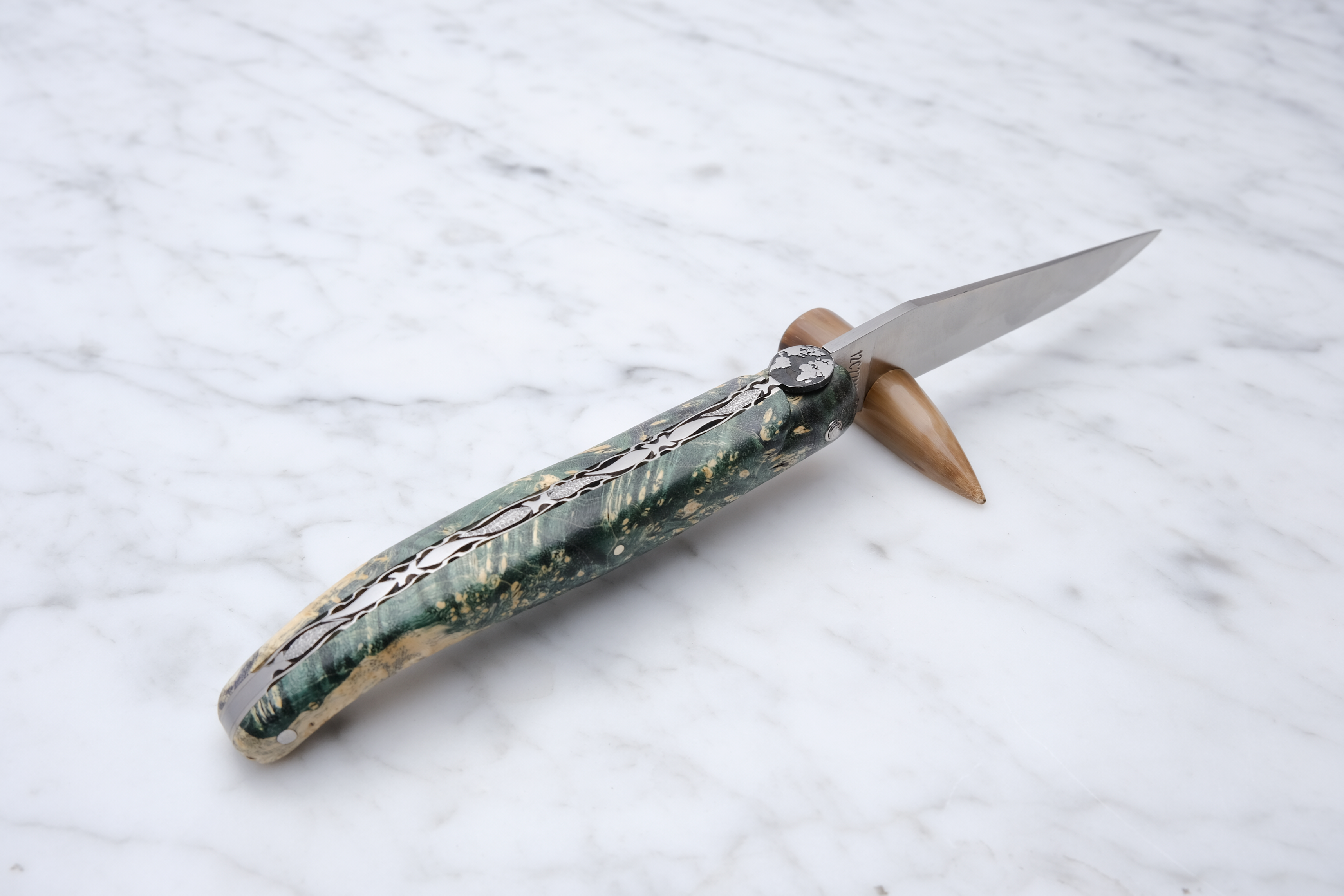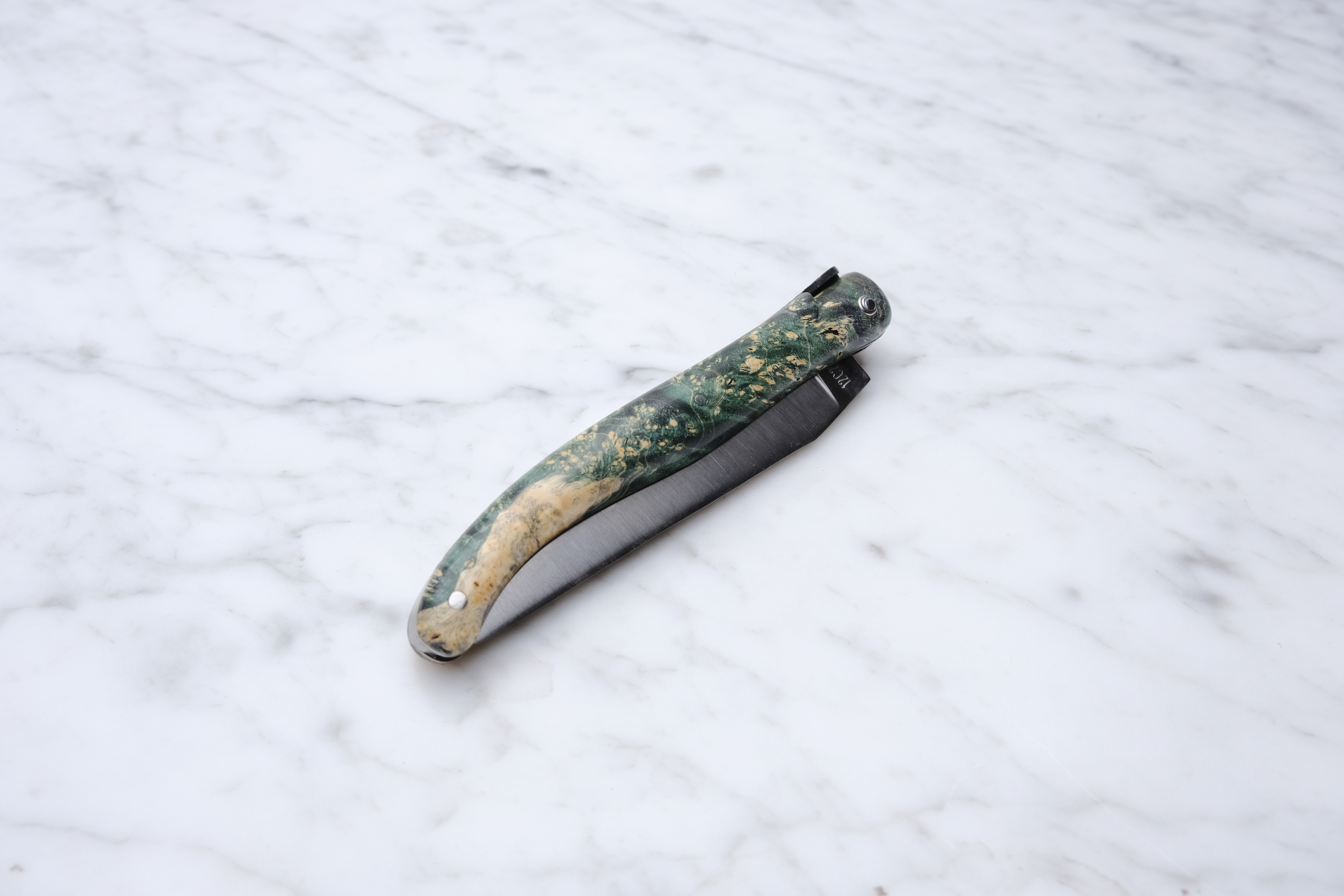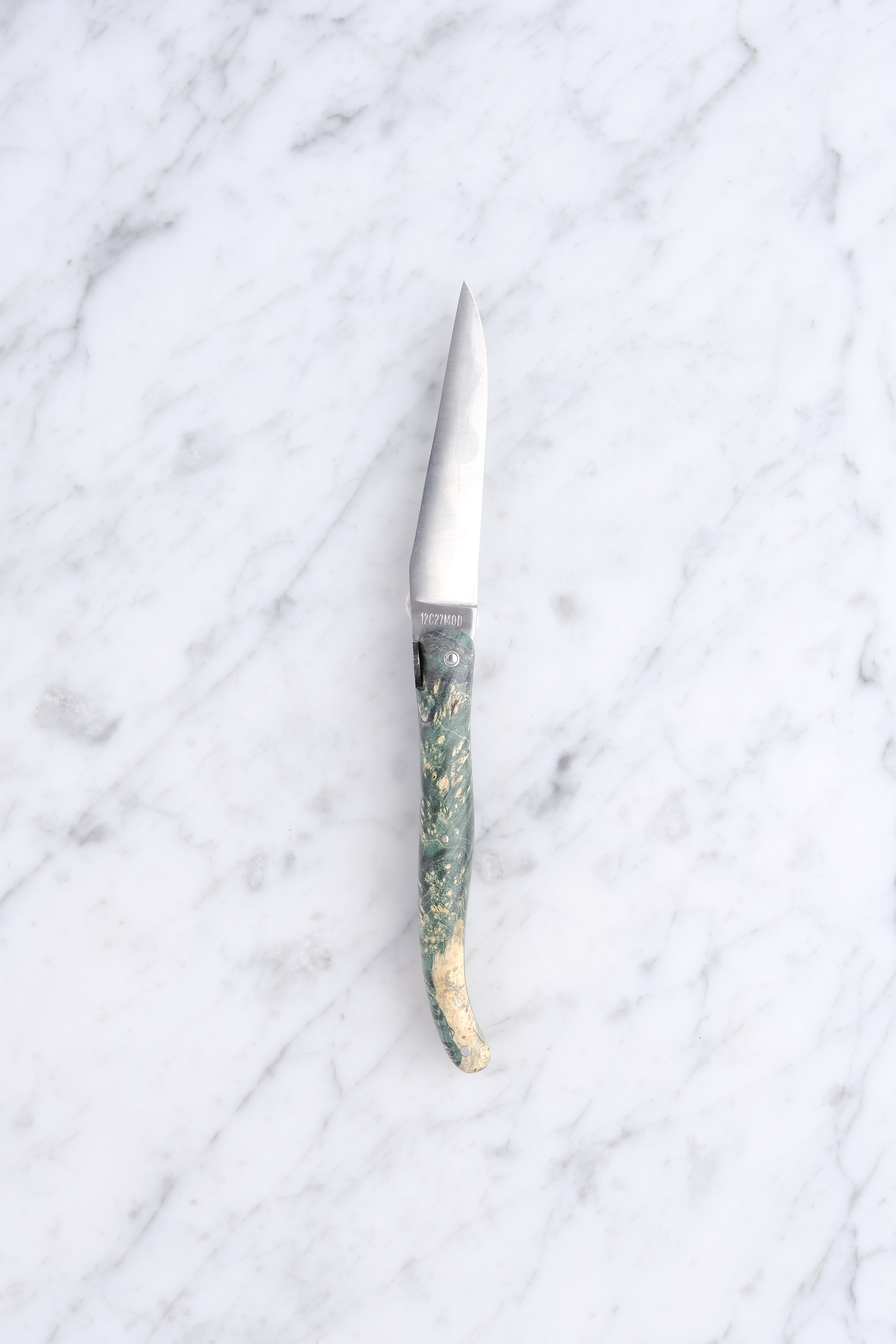 Laguiole Taschenmesser 12cm - Grüner stabilisierter Pappelknopf (Erdthema)