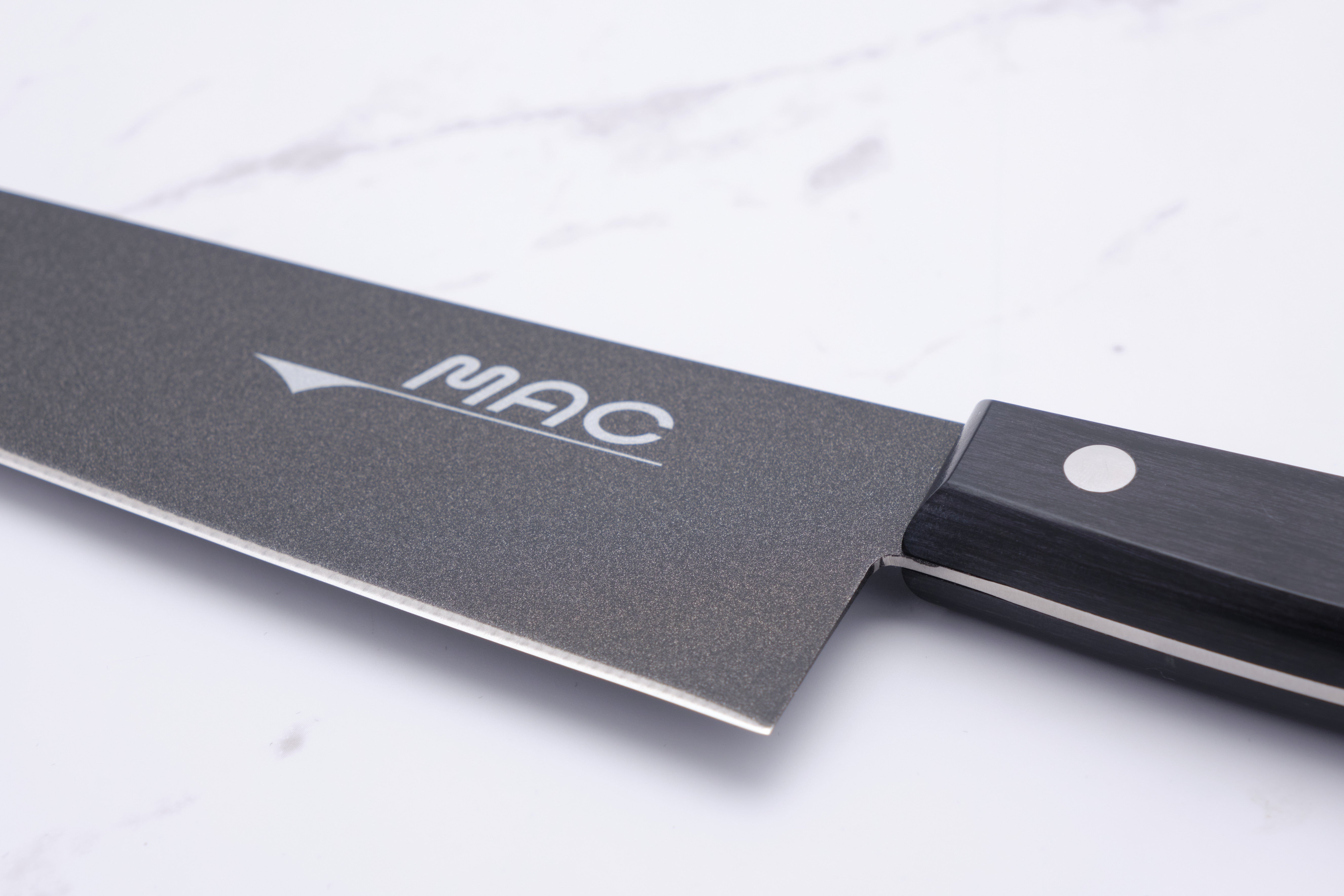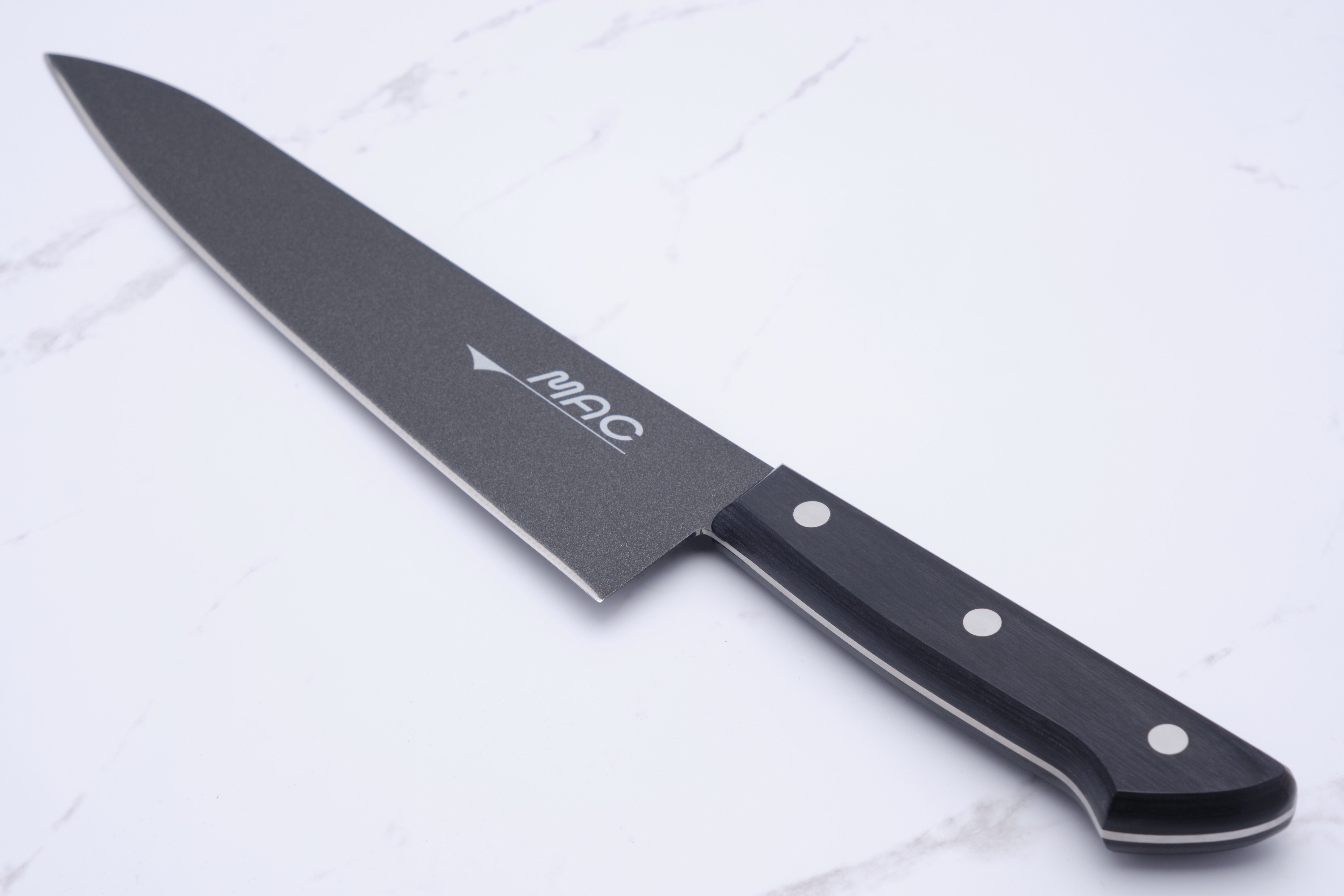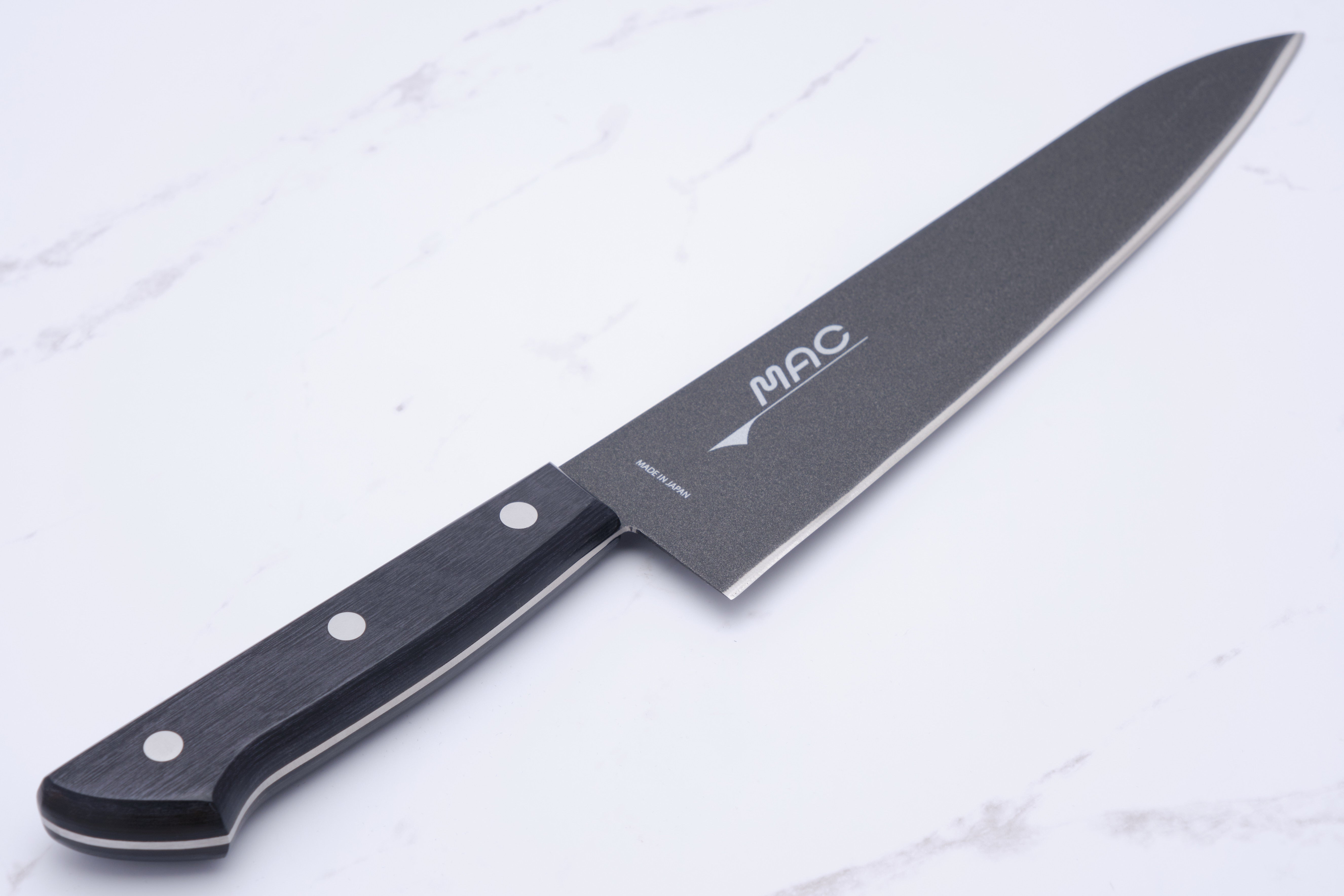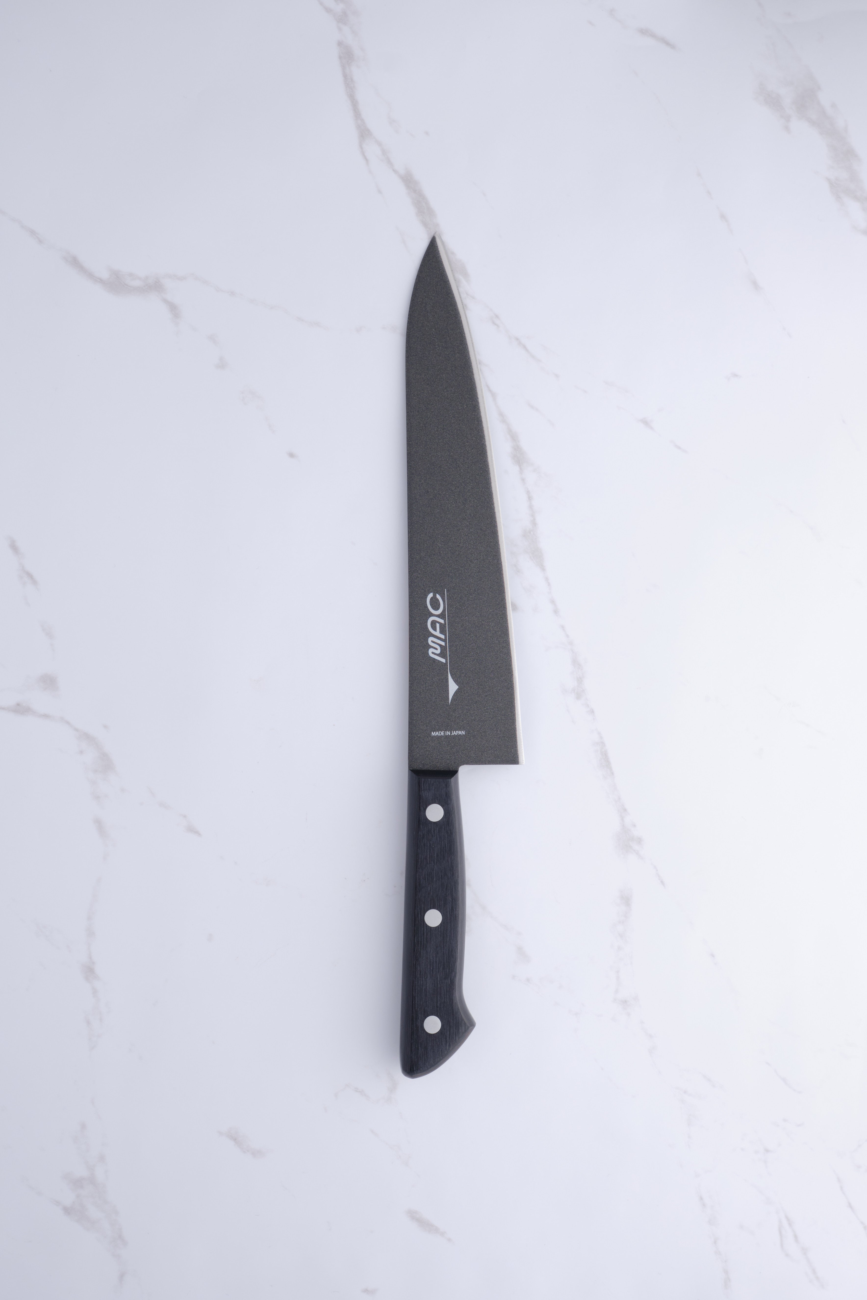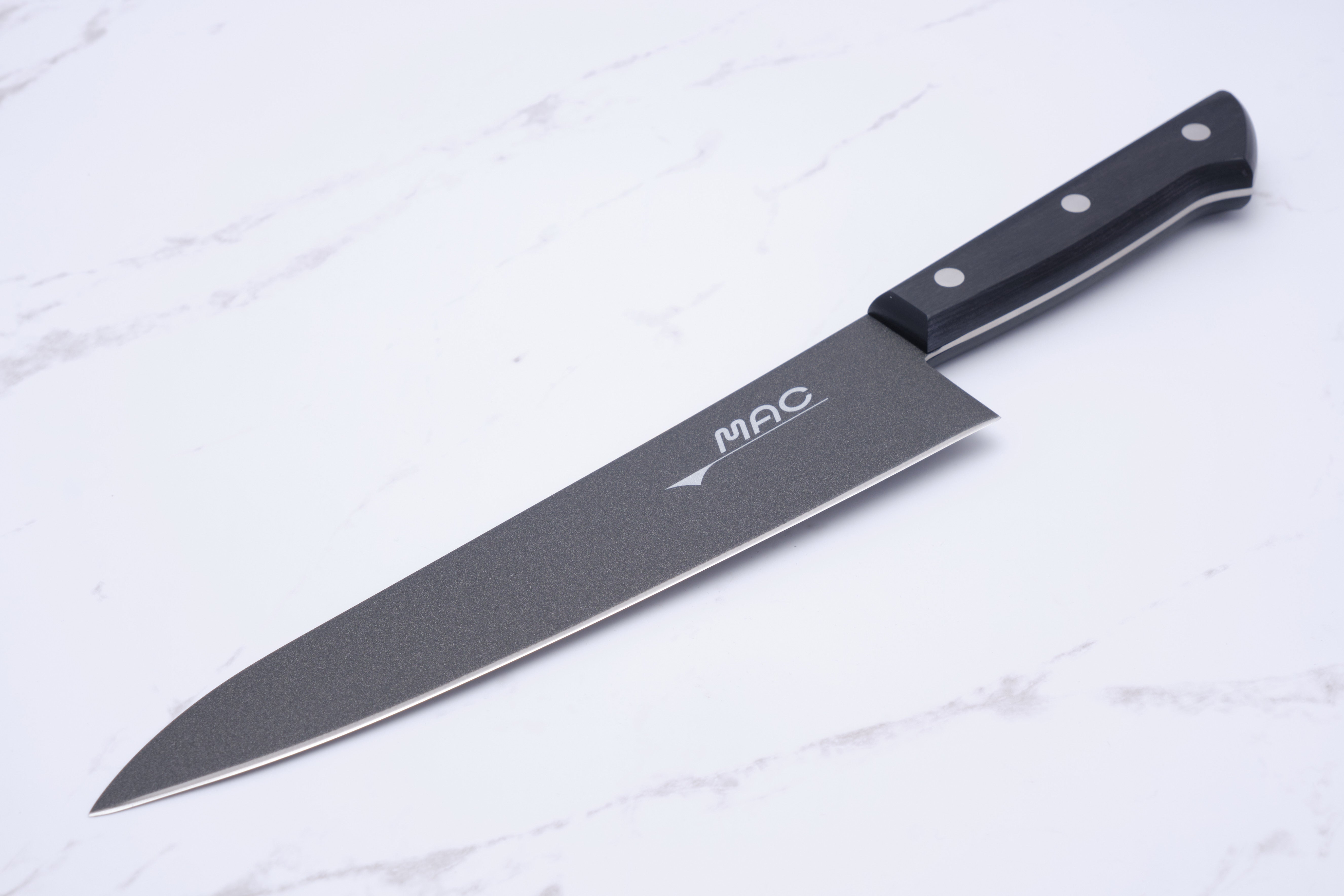 Fantastisches Kochmesser, das ursprünglich für Sushi-Köche hergestellt wurde, als diese es satt hatten, dass der Reis beim Schneiden der Brötchen am Messer kleben blieb, und sie deshalb Teflon auf das Messer auftrugen. Später stellte sich heraus, dass es bei einer Vielzahl von Rohstoffen funktioniert.