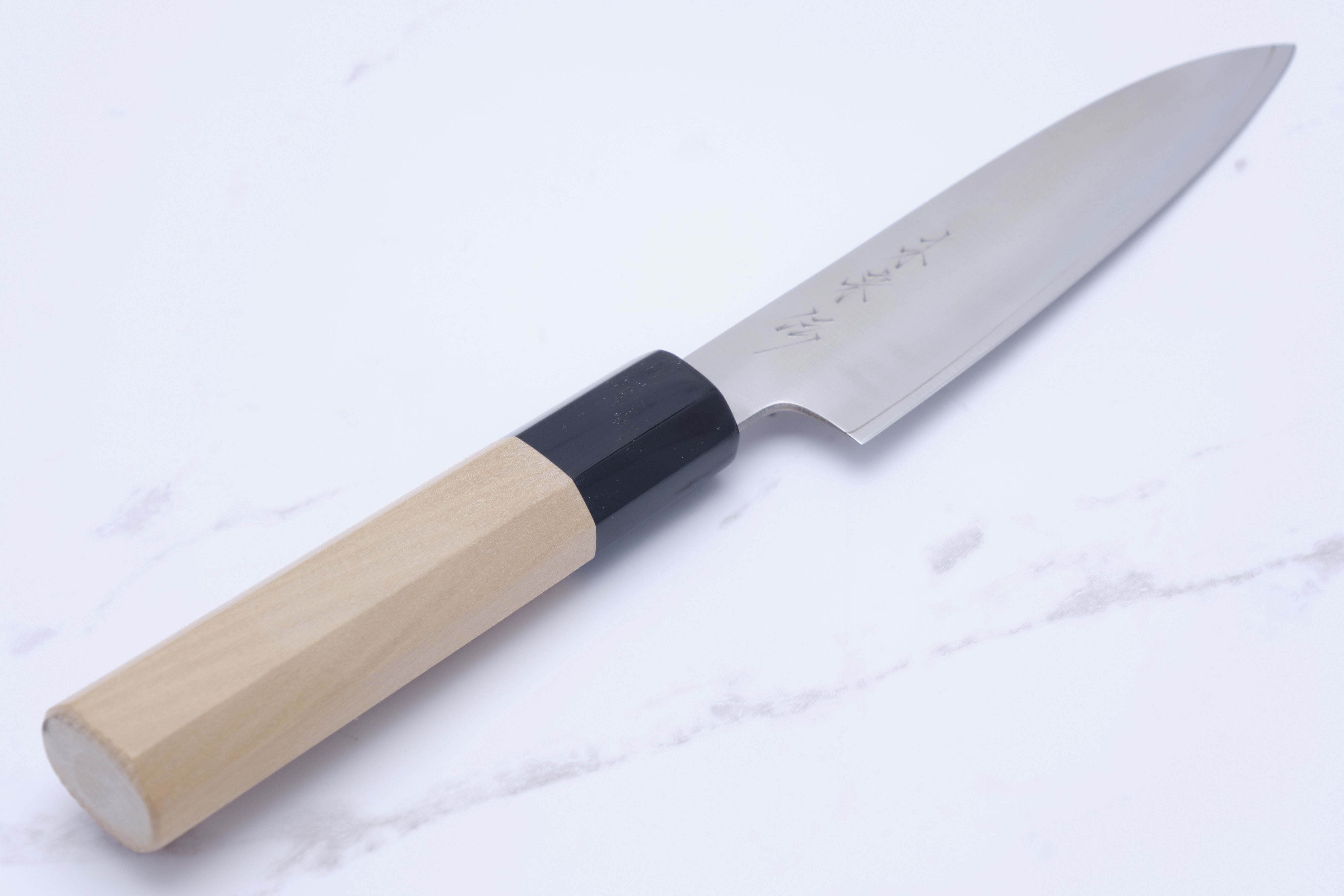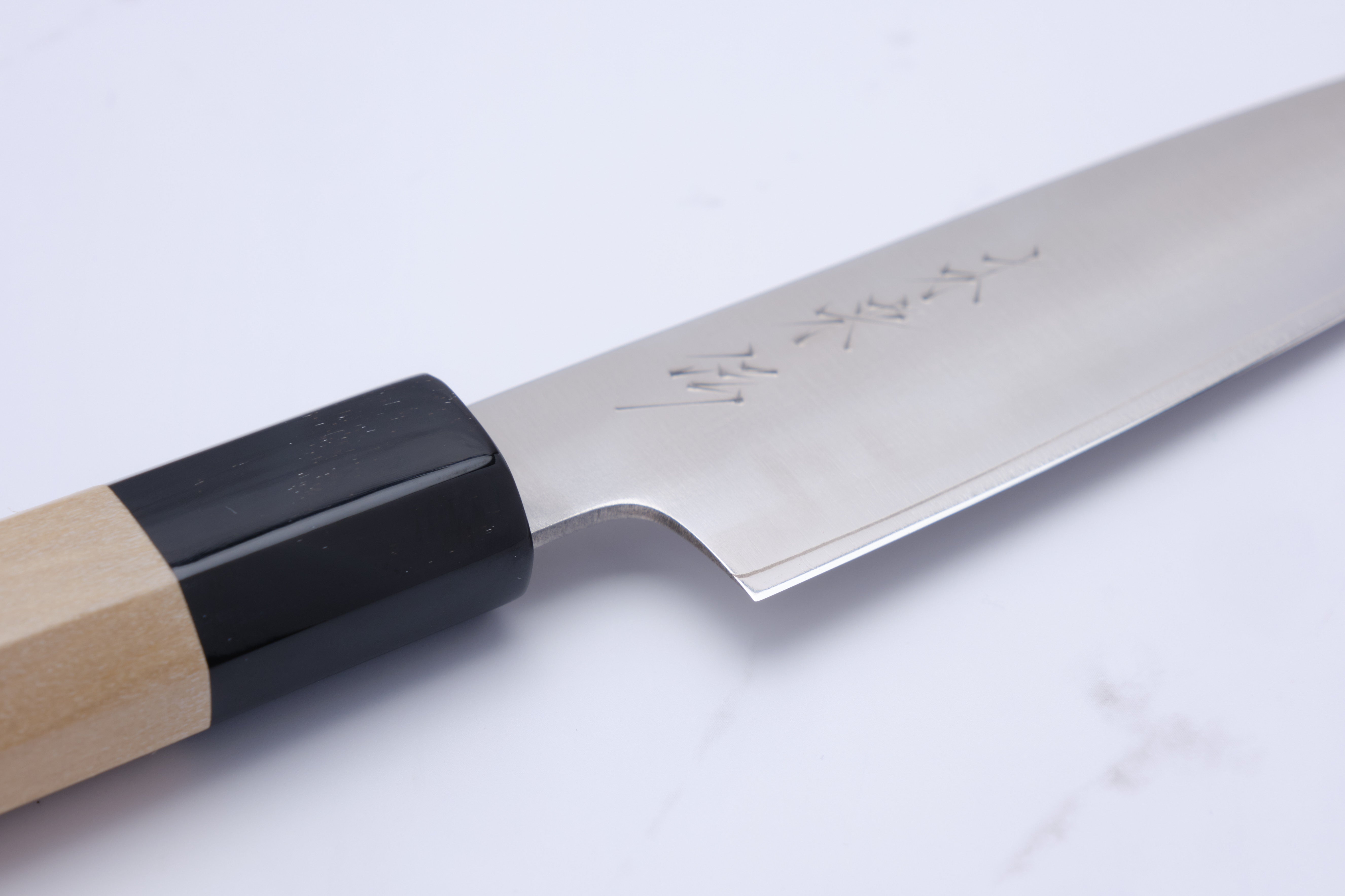Das Miraiden [mee-rai-den] ist eine Messerserie, die bei Sakai in Osaka hergestellt wird. Hinter diesem Namen stehen drei Messermacher, die alle bei Keichii Fuji (Mr. Fujii) in die Lehre gegangen sind, dem Mann hinter den legendären Fujii-Messern.