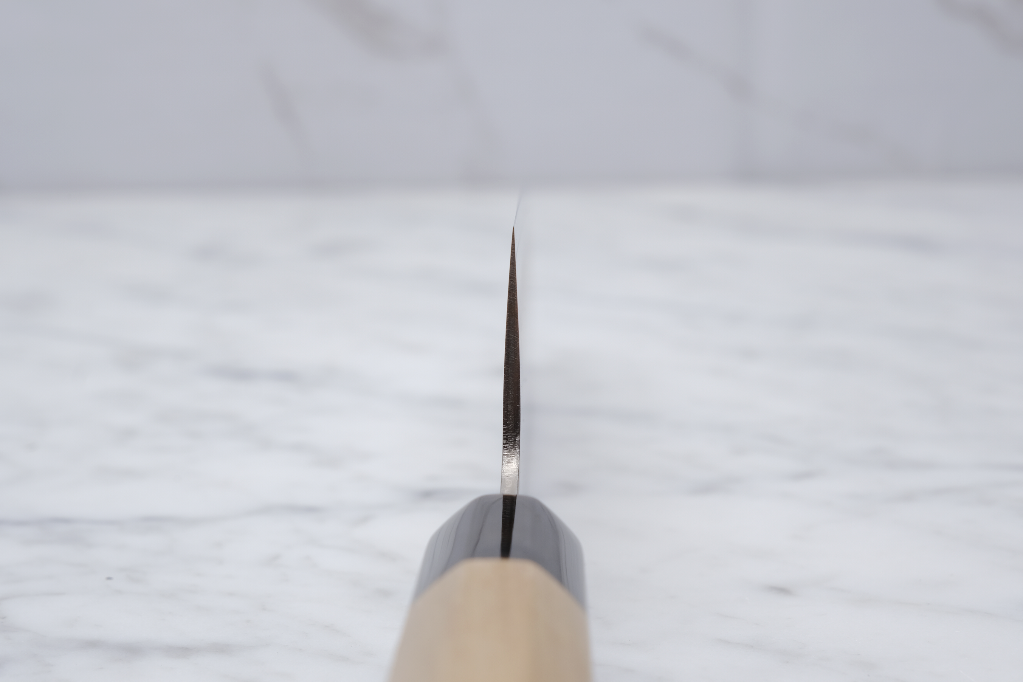 Das Miraiden [mee-rai-den] ist eine Messerserie, die bei Sakai in Osaka hergestellt wird. Hinter diesem Namen stehen drei Messermacher, die alle bei Keichii Fuji (Mr. Fujii) in die Lehre gegangen sind, dem Mann hinter den legendären Fujii-Messern.