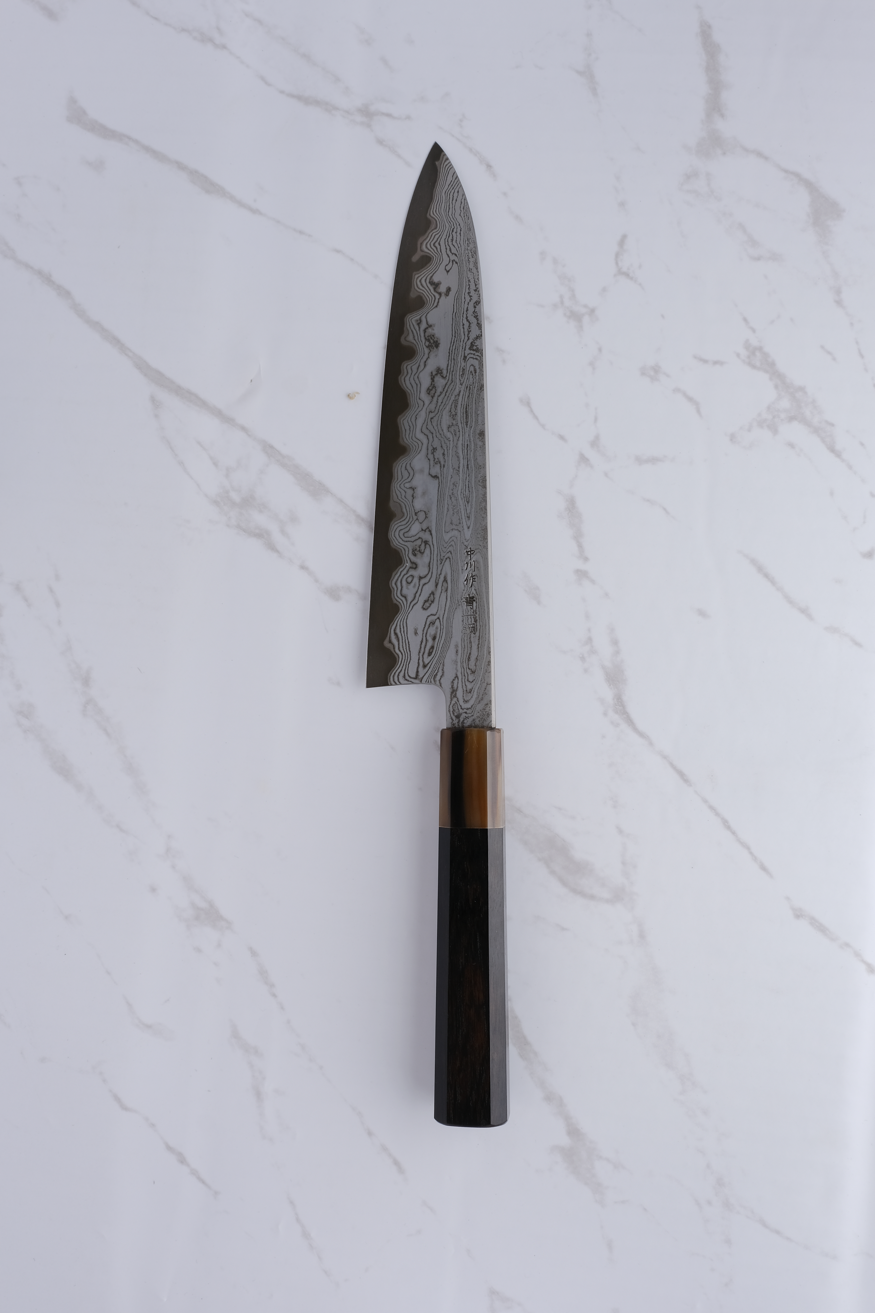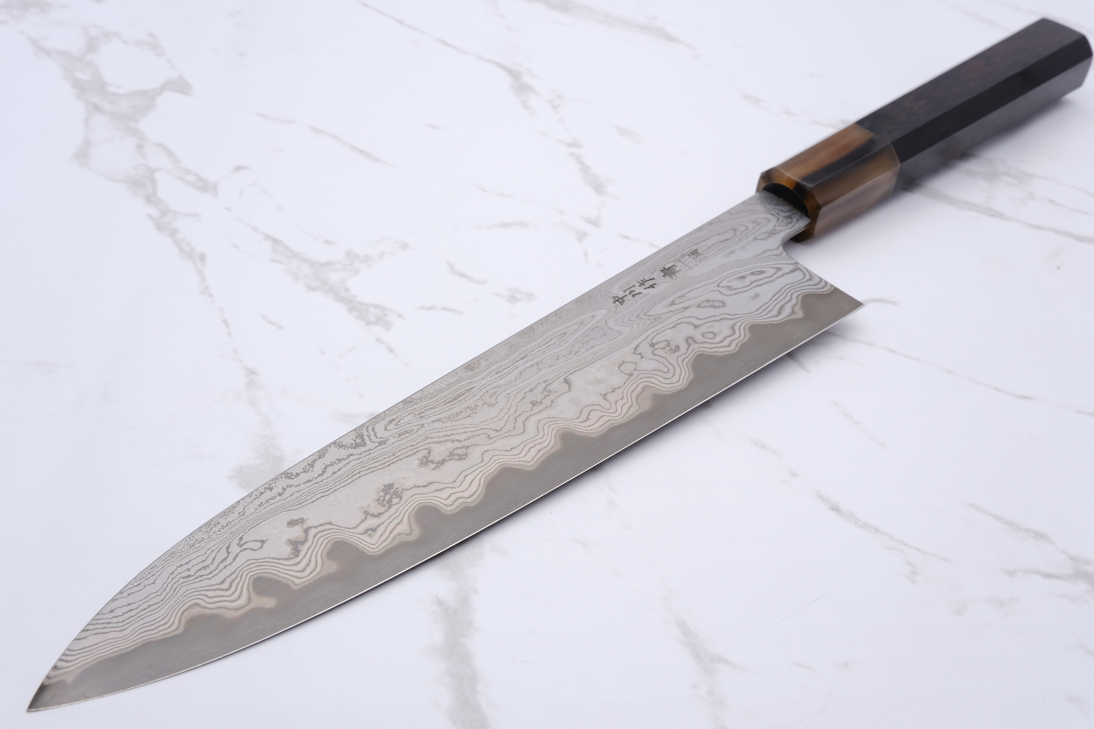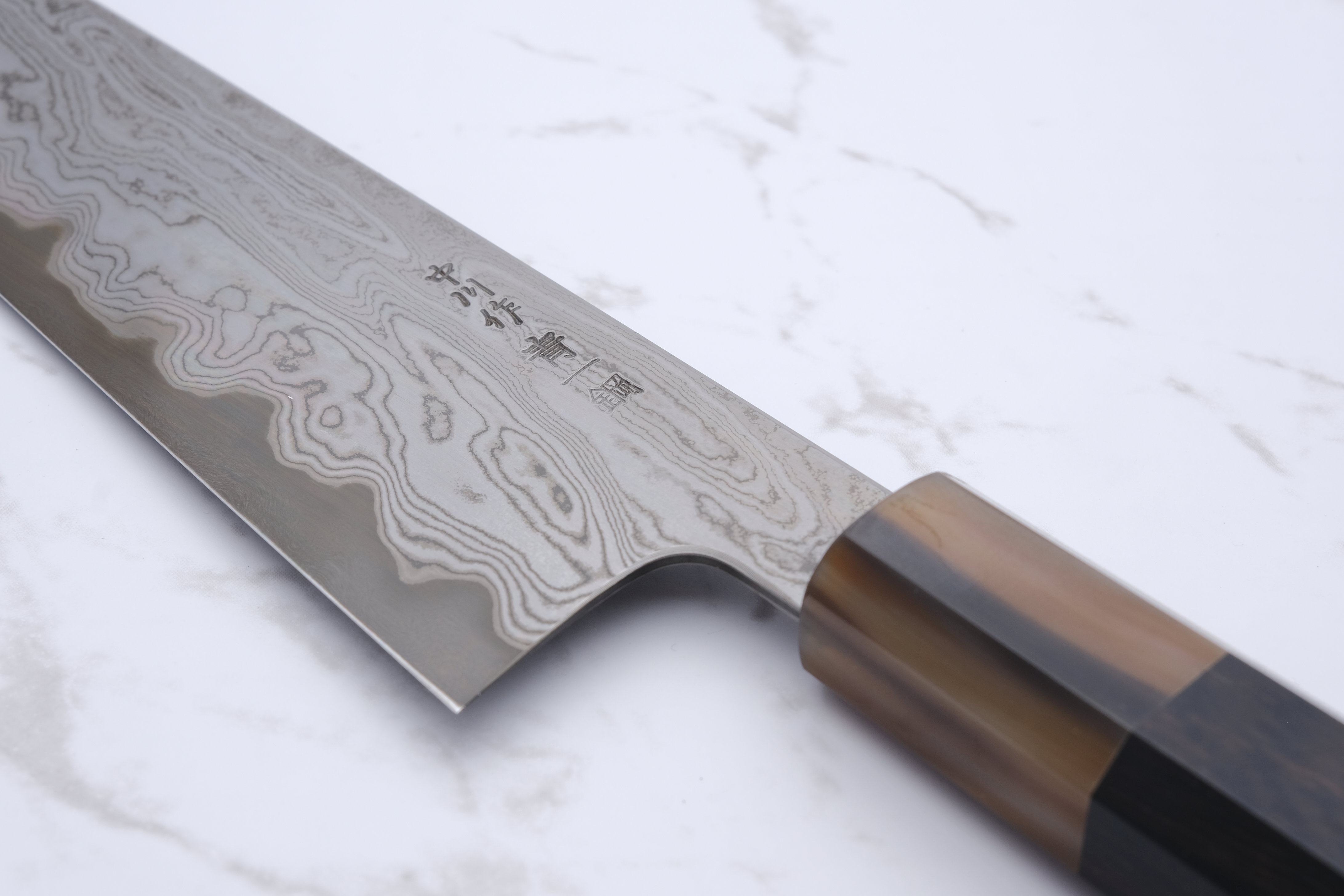 Nakagawa Satoshi X Myojin 210 mm Kochmesser Blau #1 (geätzt) – Ebenholz
