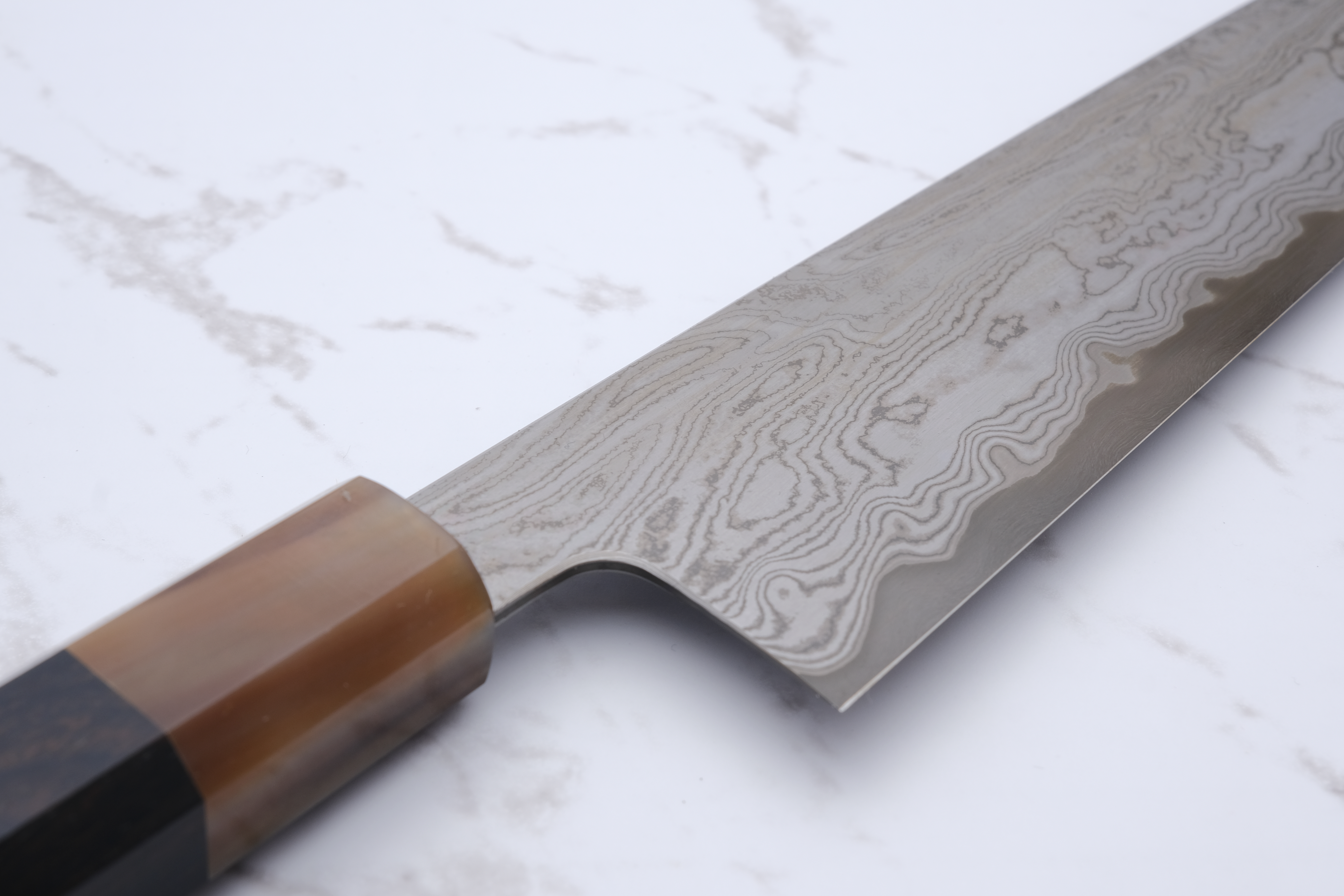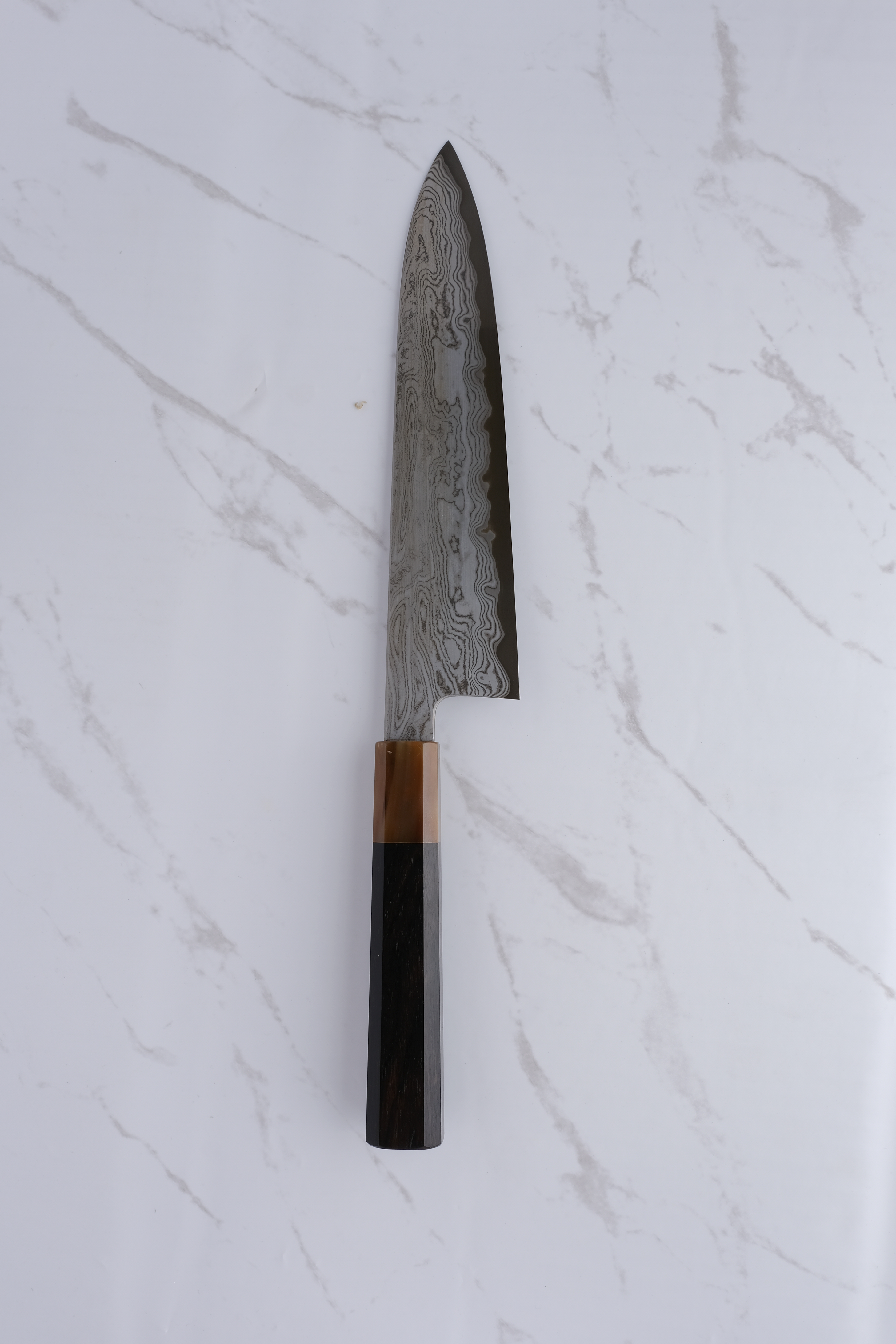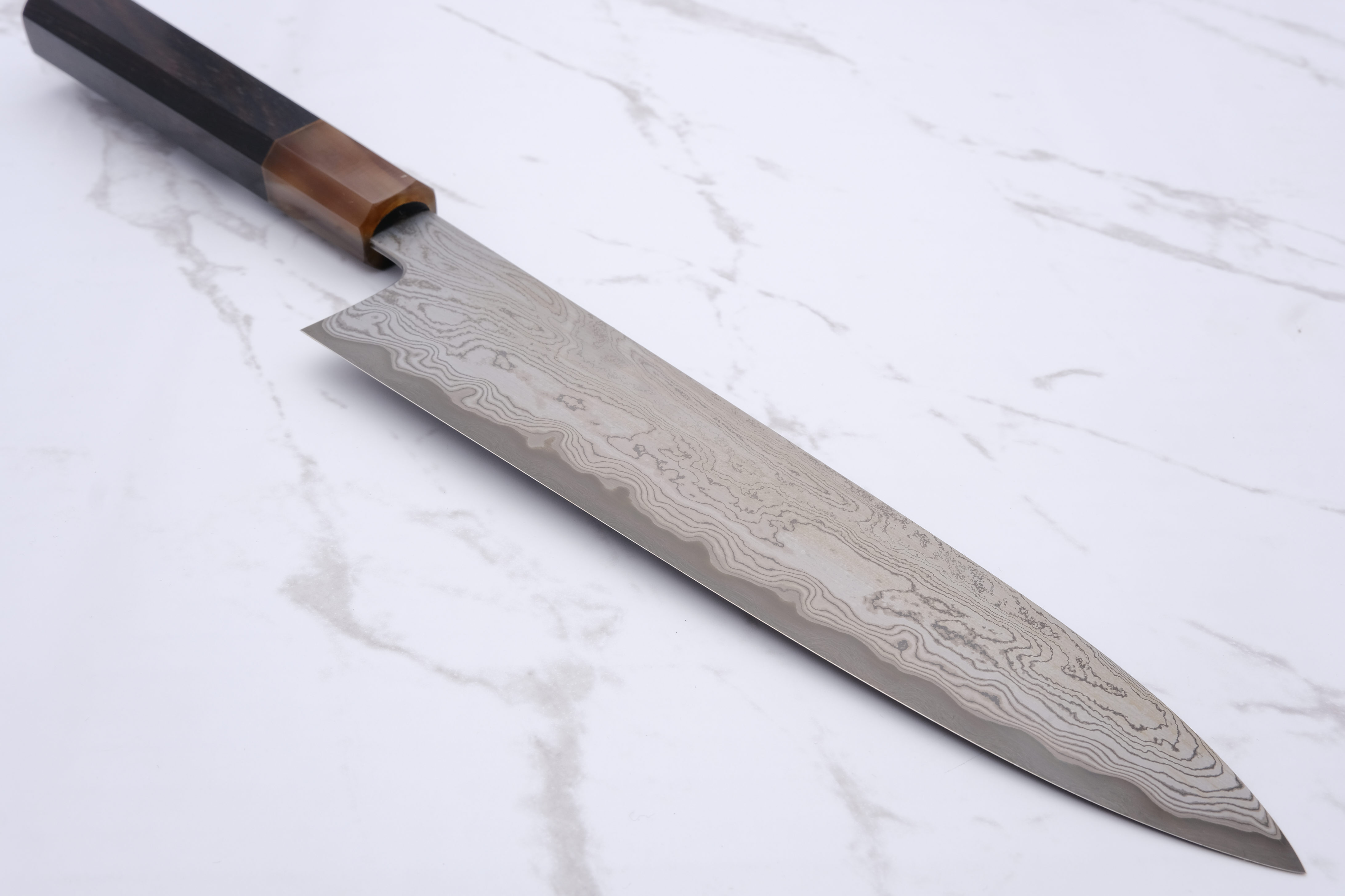 Nakagawa Satoshi X Myojin 210 mm Kochmesser Blau #1 (geätzt) – Ebenholz