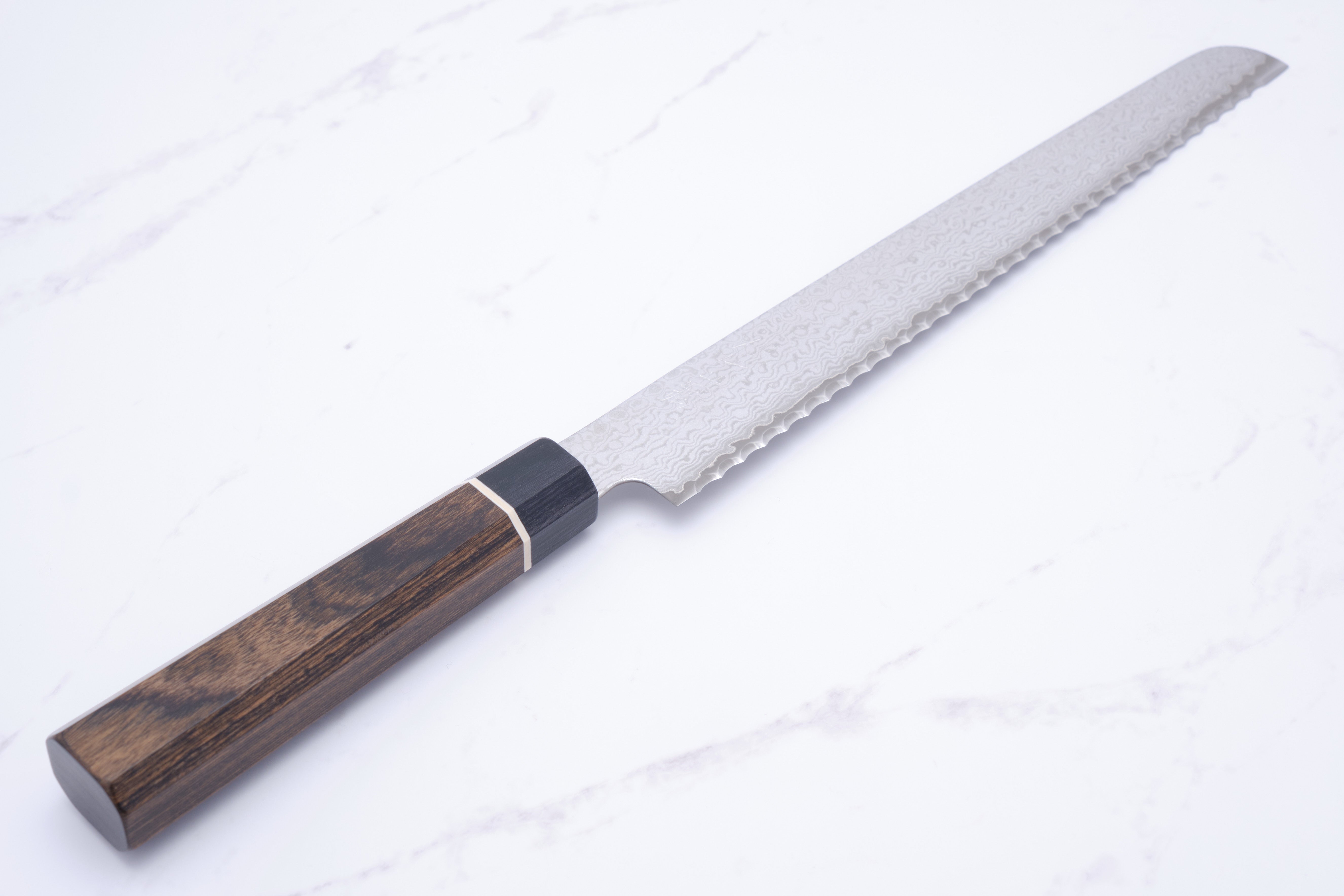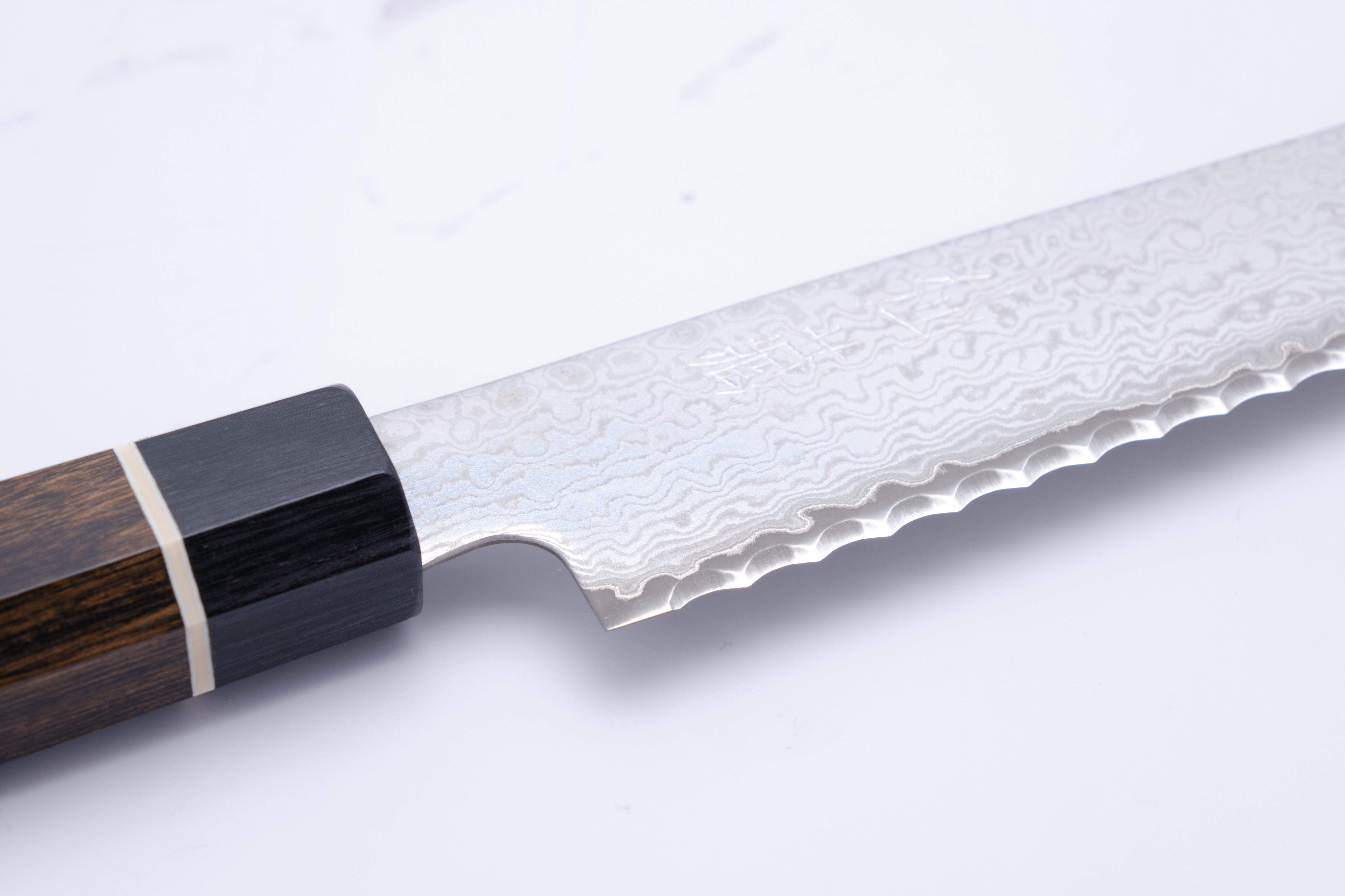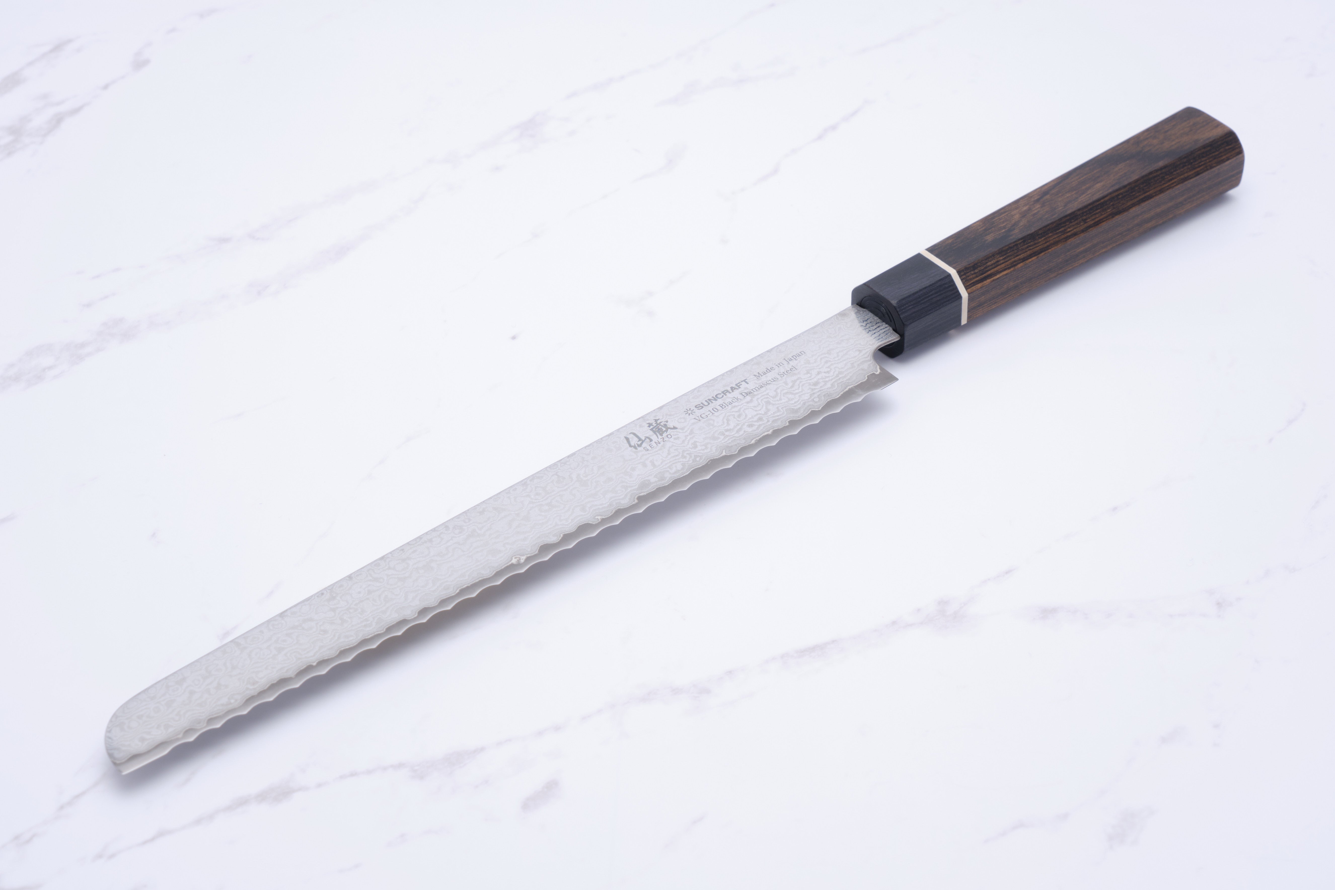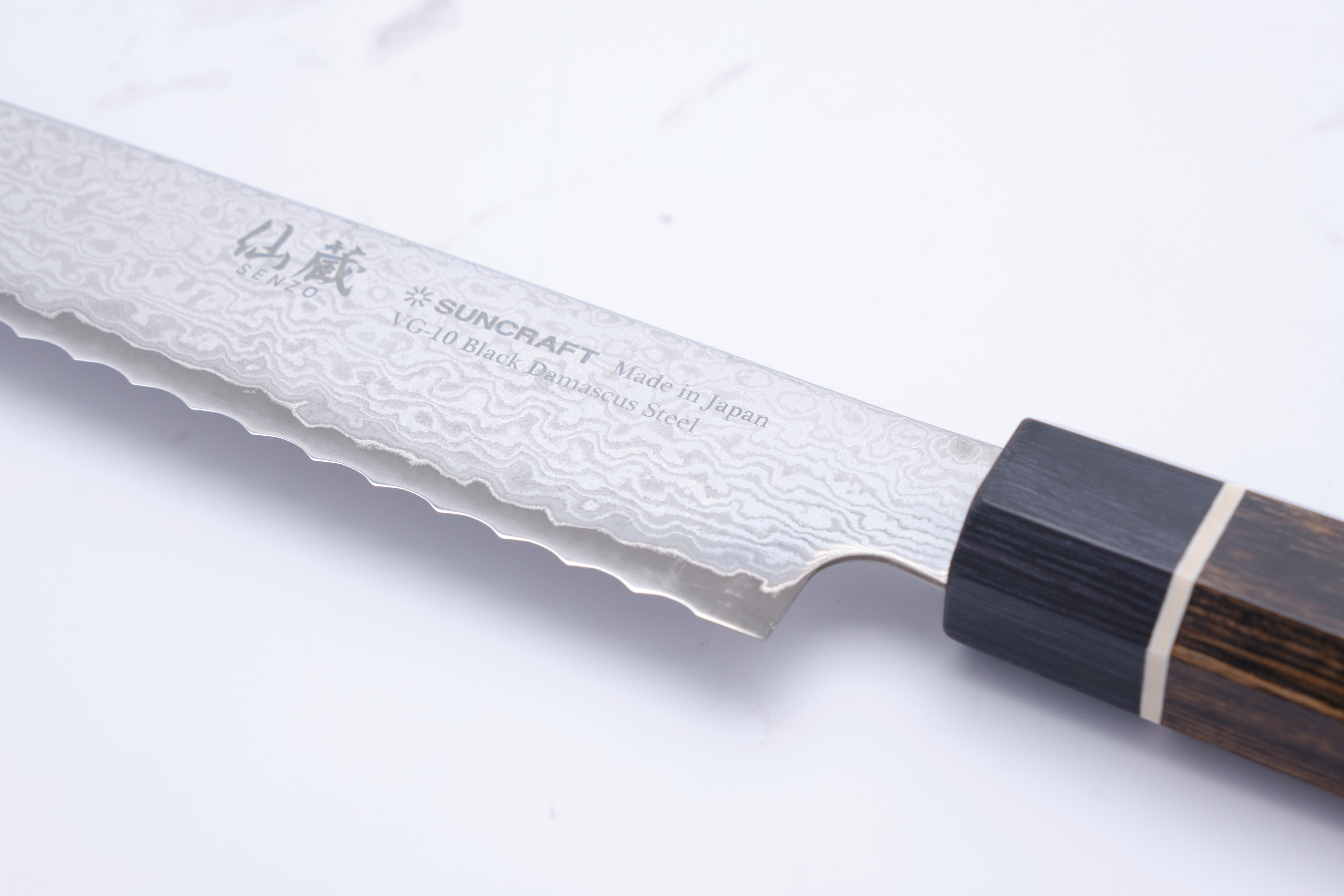Das Suncraft Black 220 mm Brotmesser von Sankurafuto ist ein wahres Schmuckstück aus Seki, Japan, das Luxus und Funktionalität vereint. Dieses Brotmesser ist mit seinem eleganten Design nicht nur eine Augenweide, sondern auch ein Vergnügen in der Handhabung. Mit einer Länge von 220 mm eignet es sich perfekt zum Schneiden von knusprigem Baguette bis hin zu weichem Brot. Das Messer besteht aus 33 Lagen Damaszenerstahl, der für beeindruckende Haltbarkeit und Schärfe sorgt, während der VG-10-Kernstahl ein optimales Gleichgewicht zwischen Härte und Benutzerfreundlichkeit gewährleistet. Egal, ob Sie Profikoch oder Hobbykoch sind, dieses Messer wird Ihr Kocherlebnis deutlich verbessern.