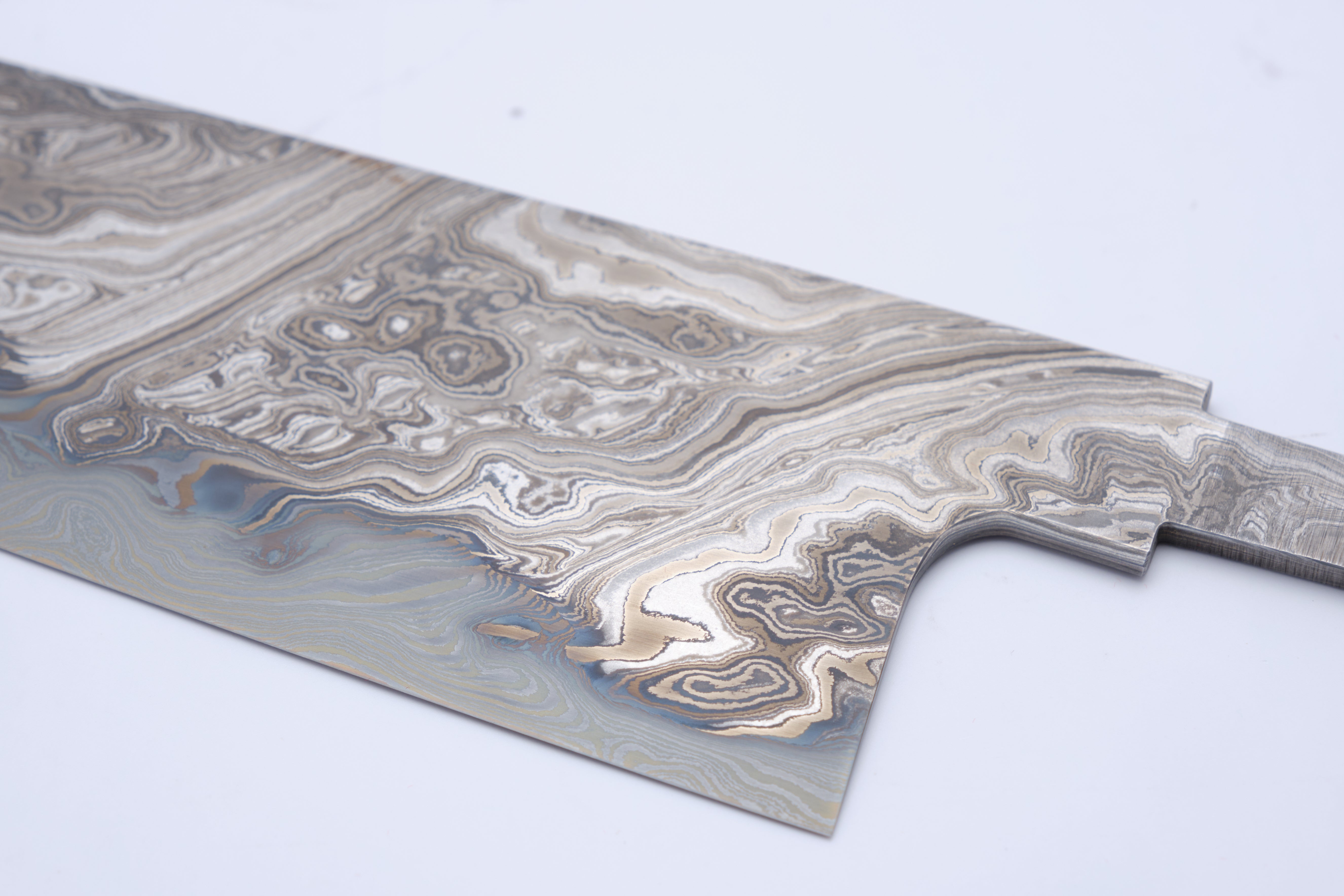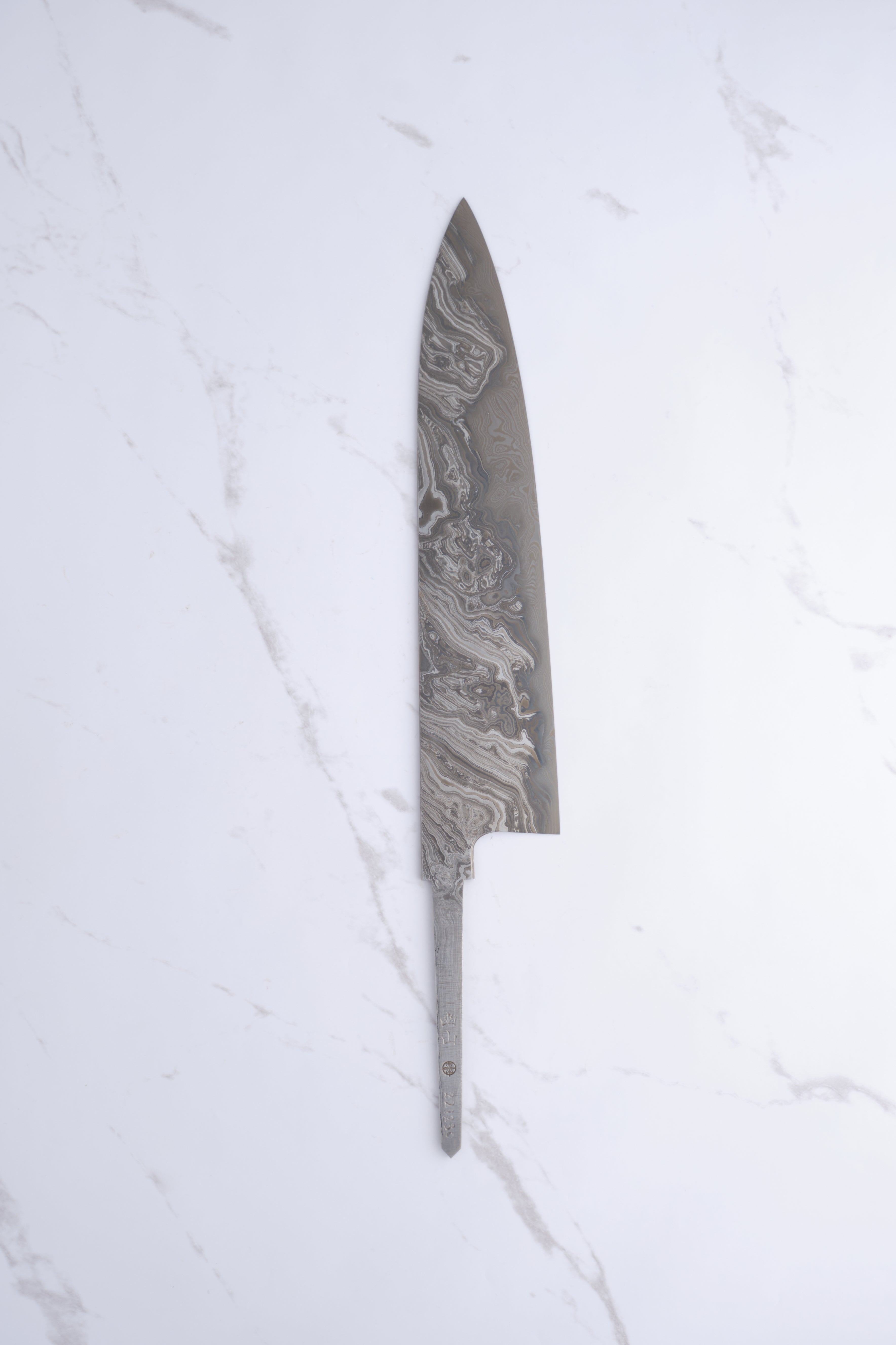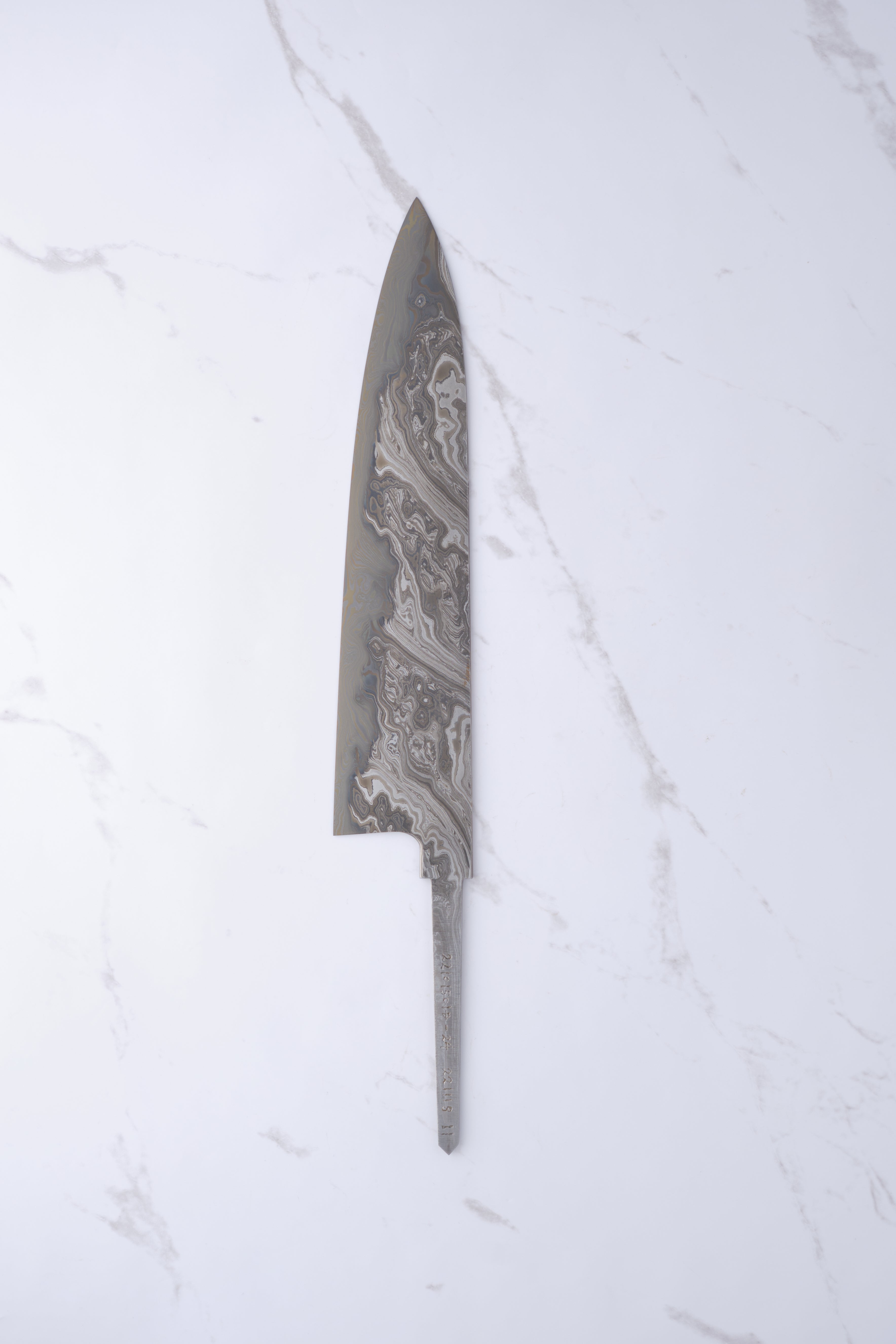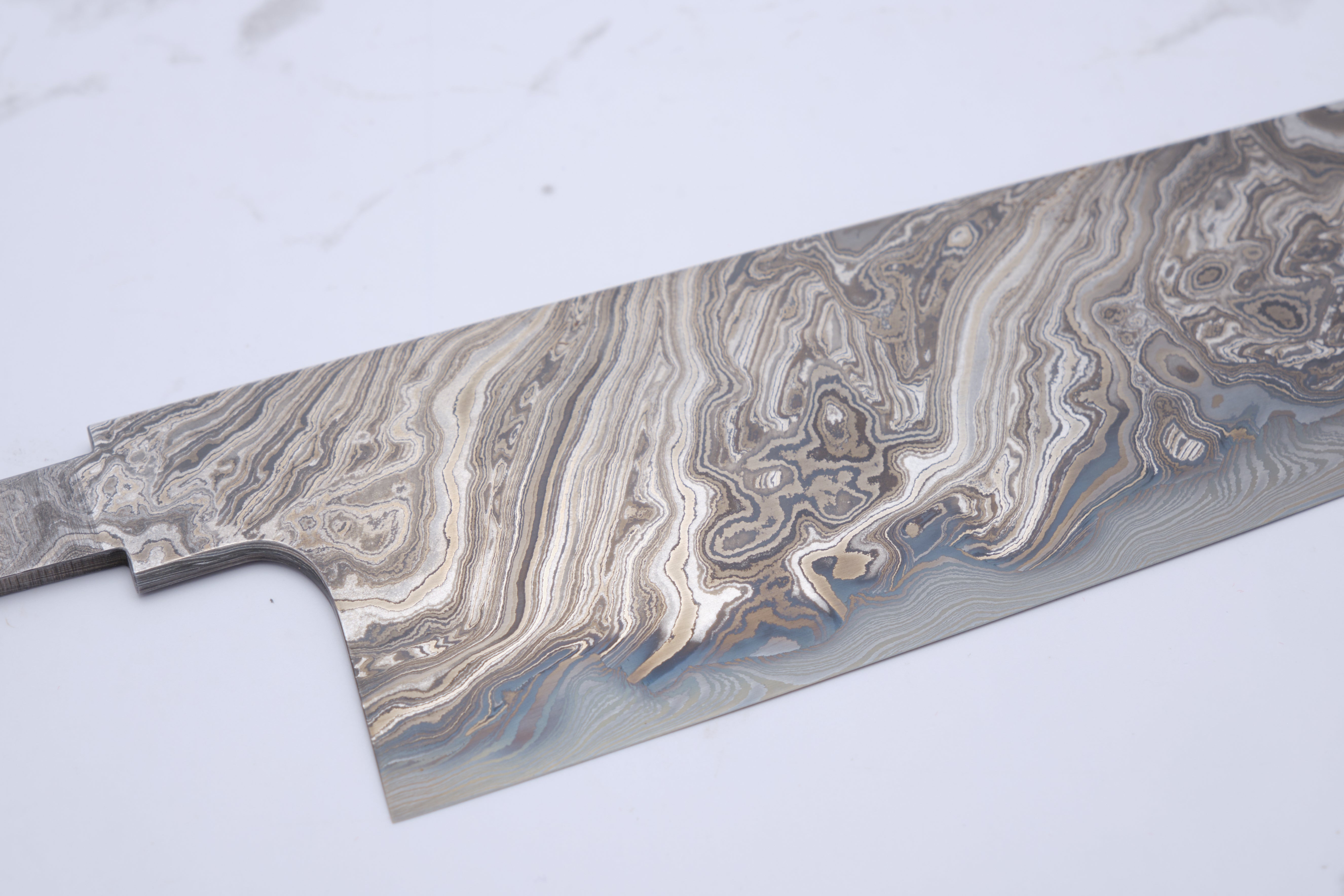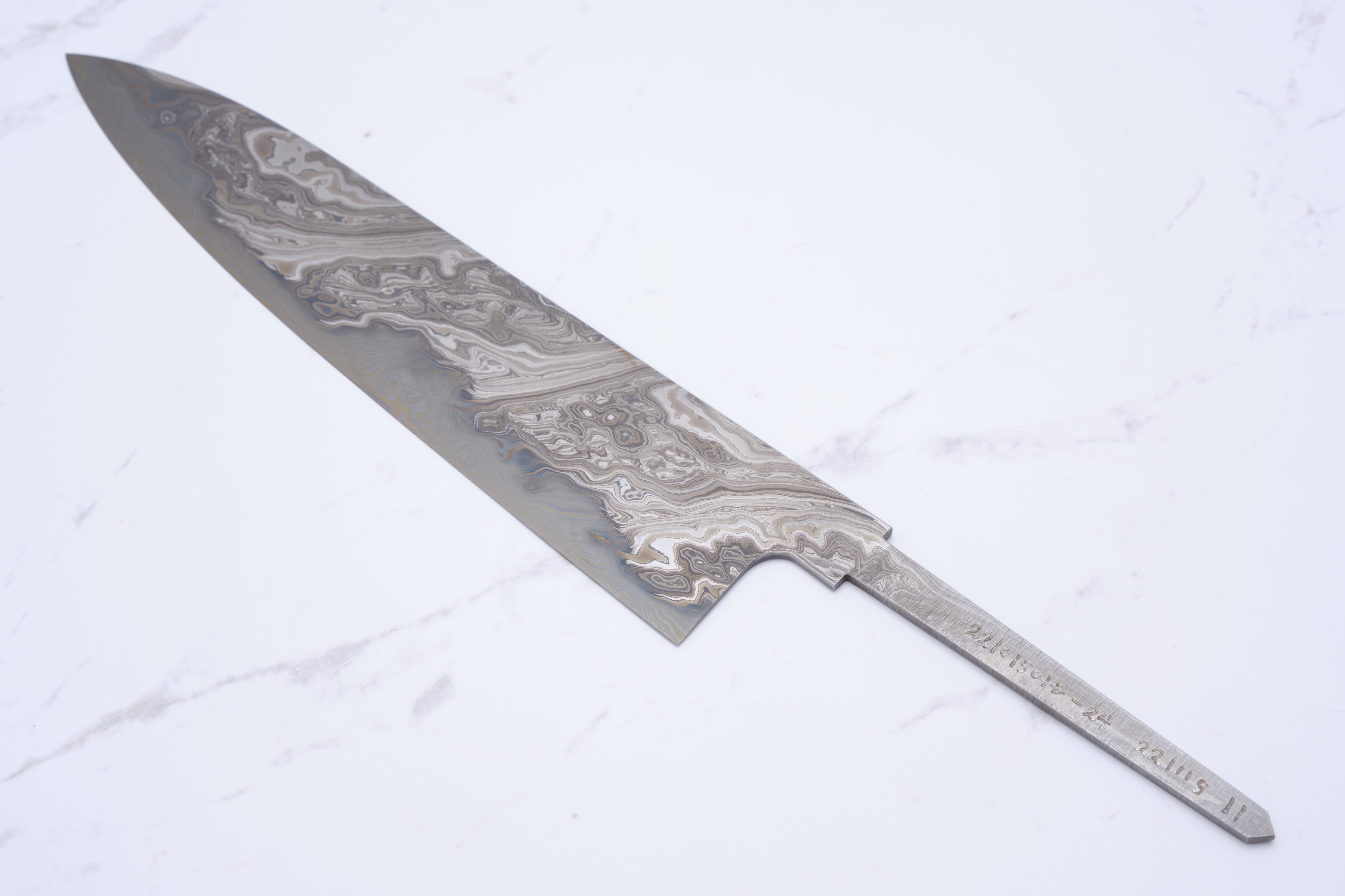Shoichi Hashimoto x Myojin 'Yuuzan' Twist Damaskus Blau #2 + Weiß #2 240mm Gyuto