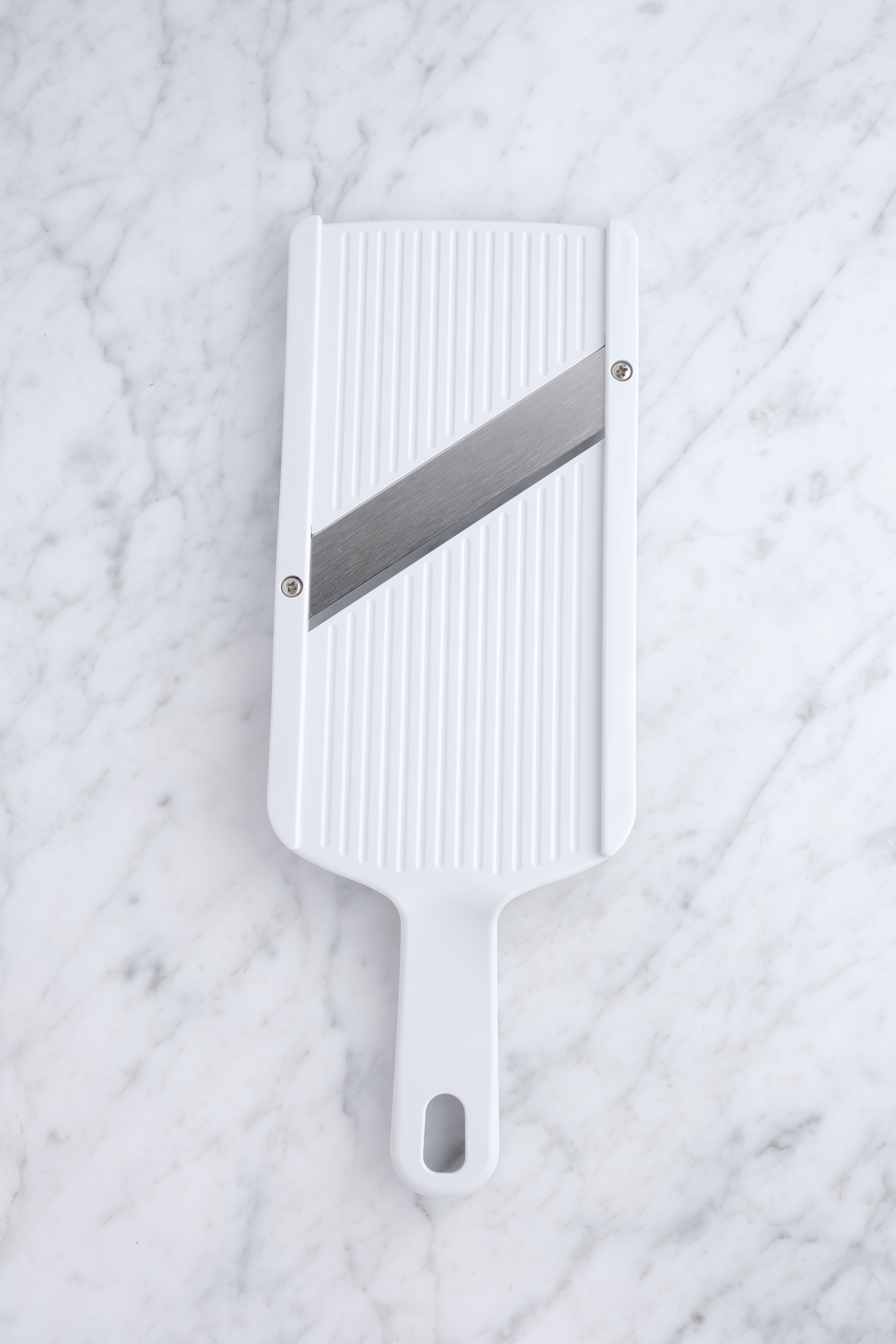 Nicht verstellbar, schneidet aber sehr dünn. Perfekt für selbstgemachten Gurkensalat!