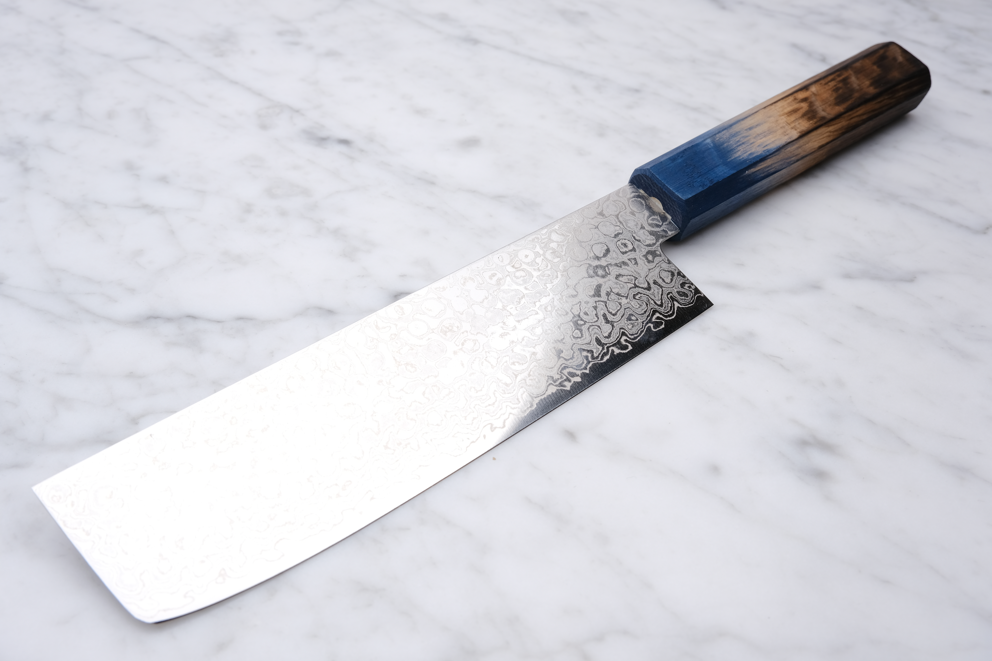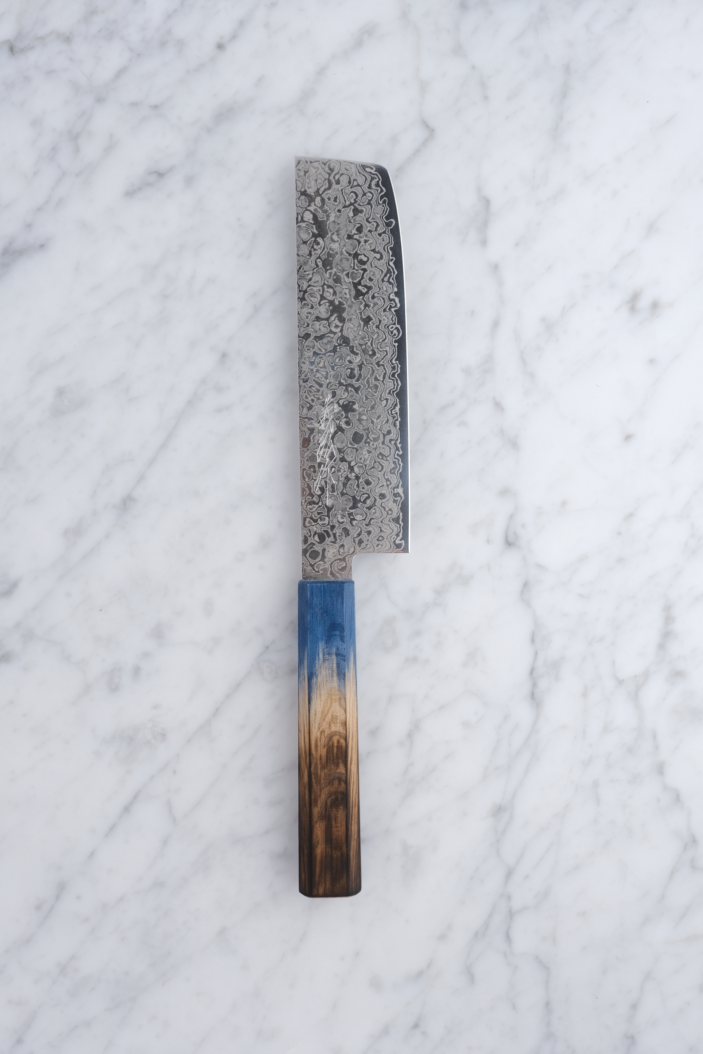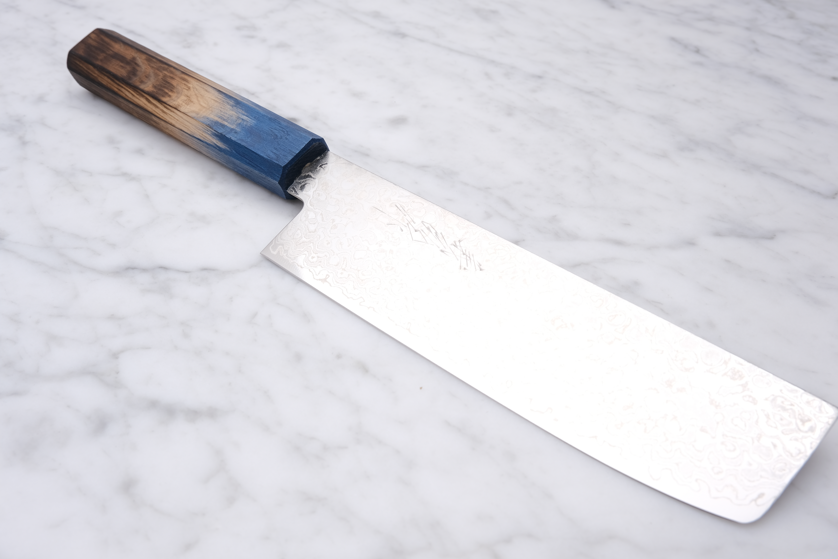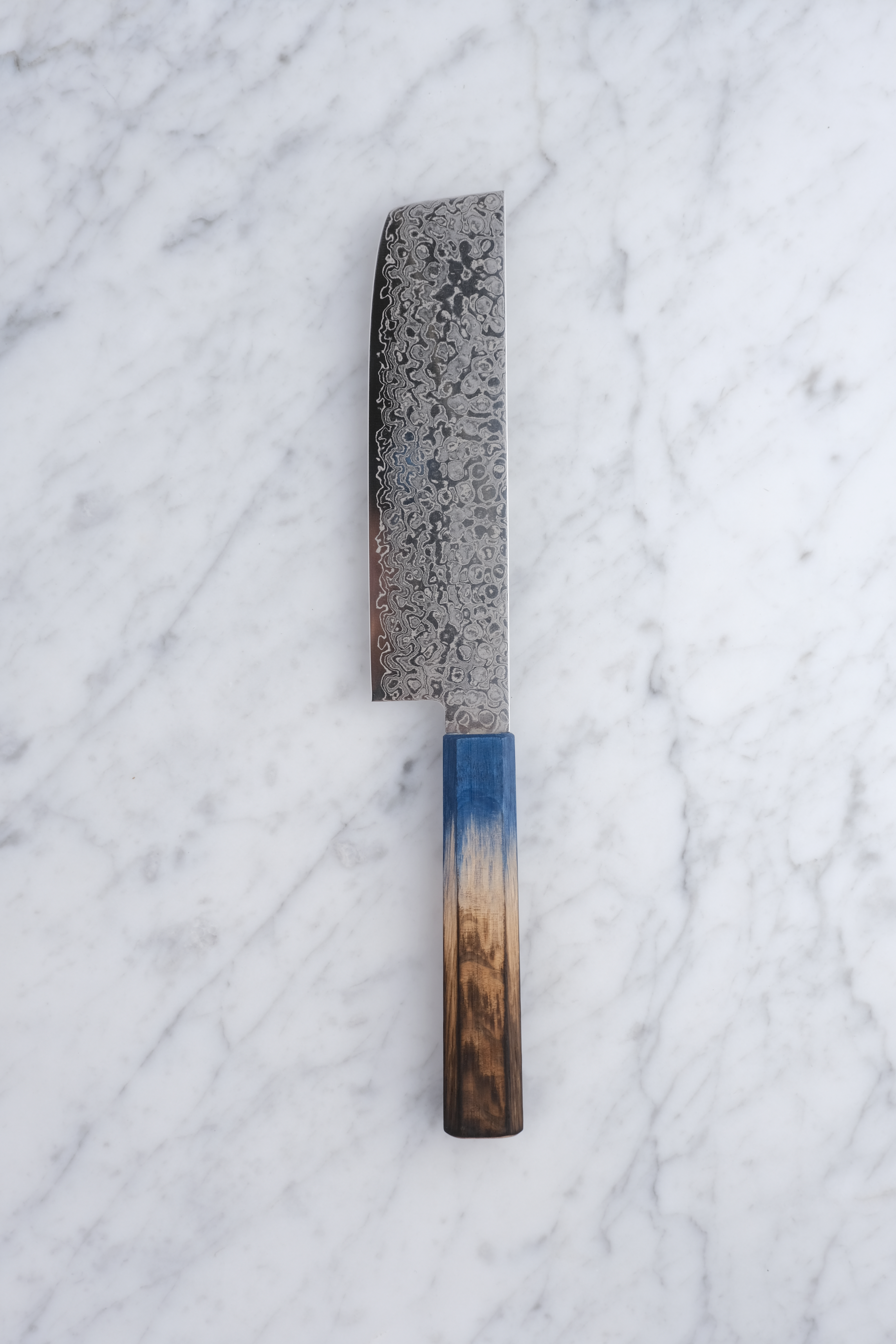 - Griff aus gebrannter Eiche in Blau für einen stilvollen Griff.