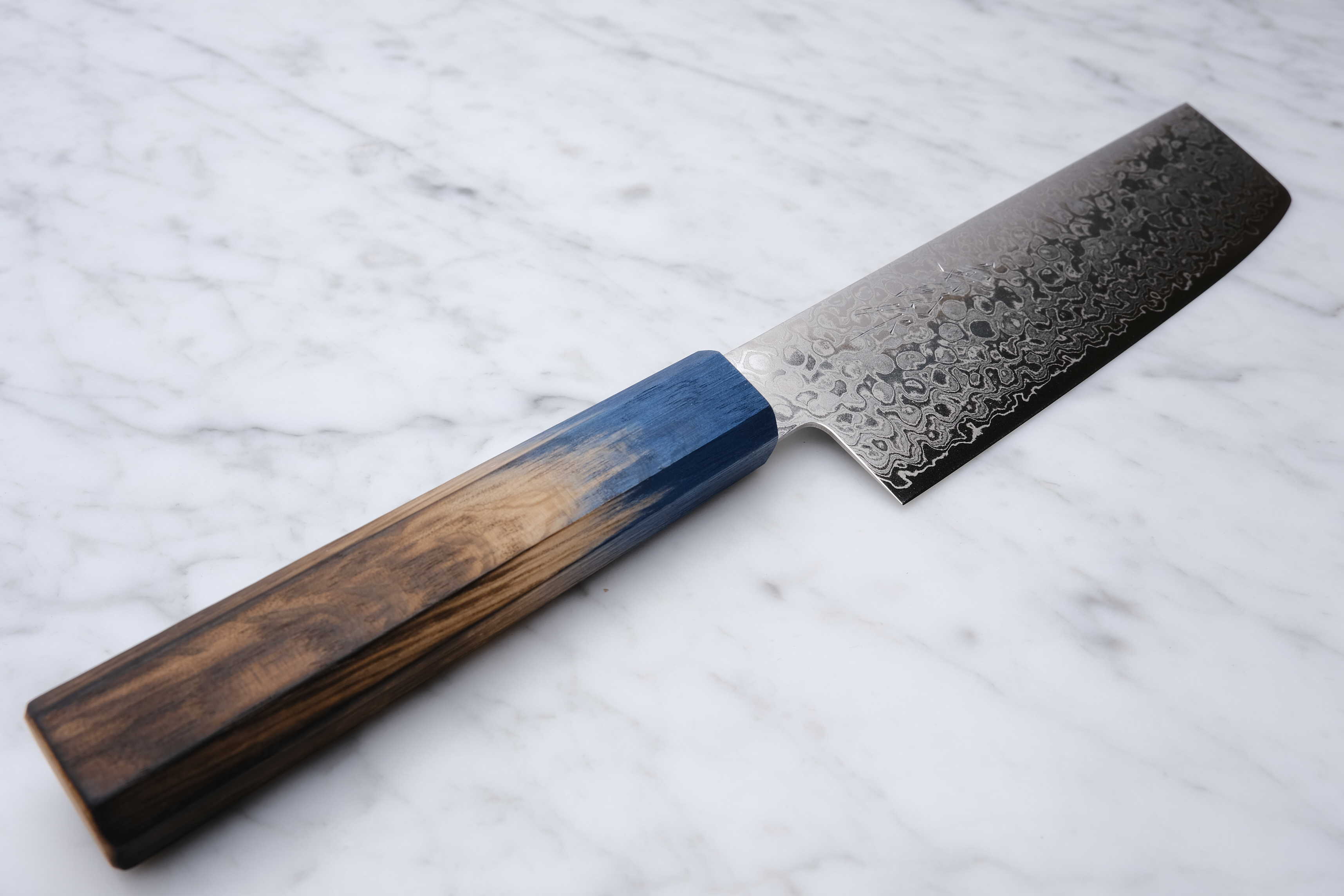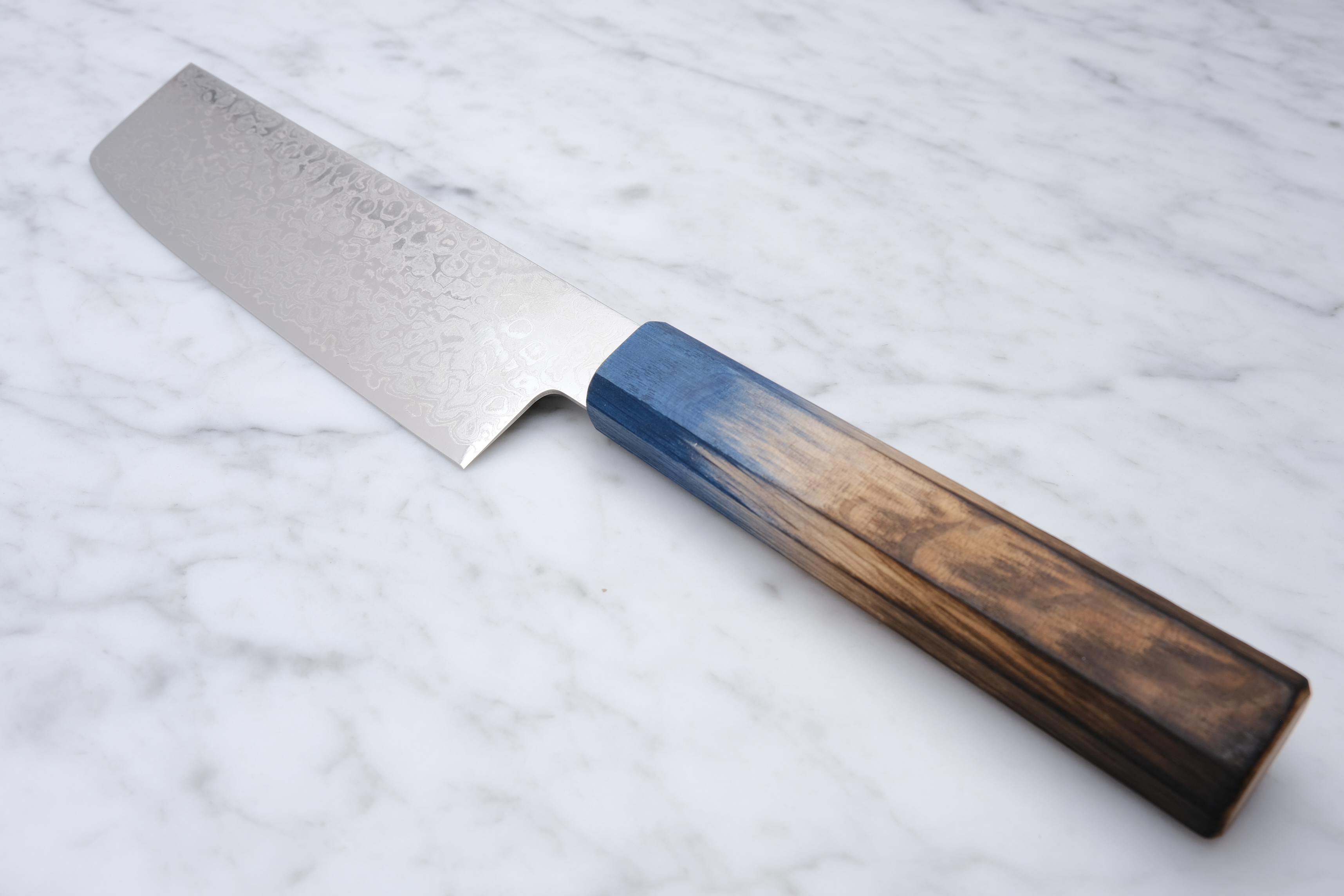Grifftyp | Achteckige gebrannte Eiche mit blauer Farbe |