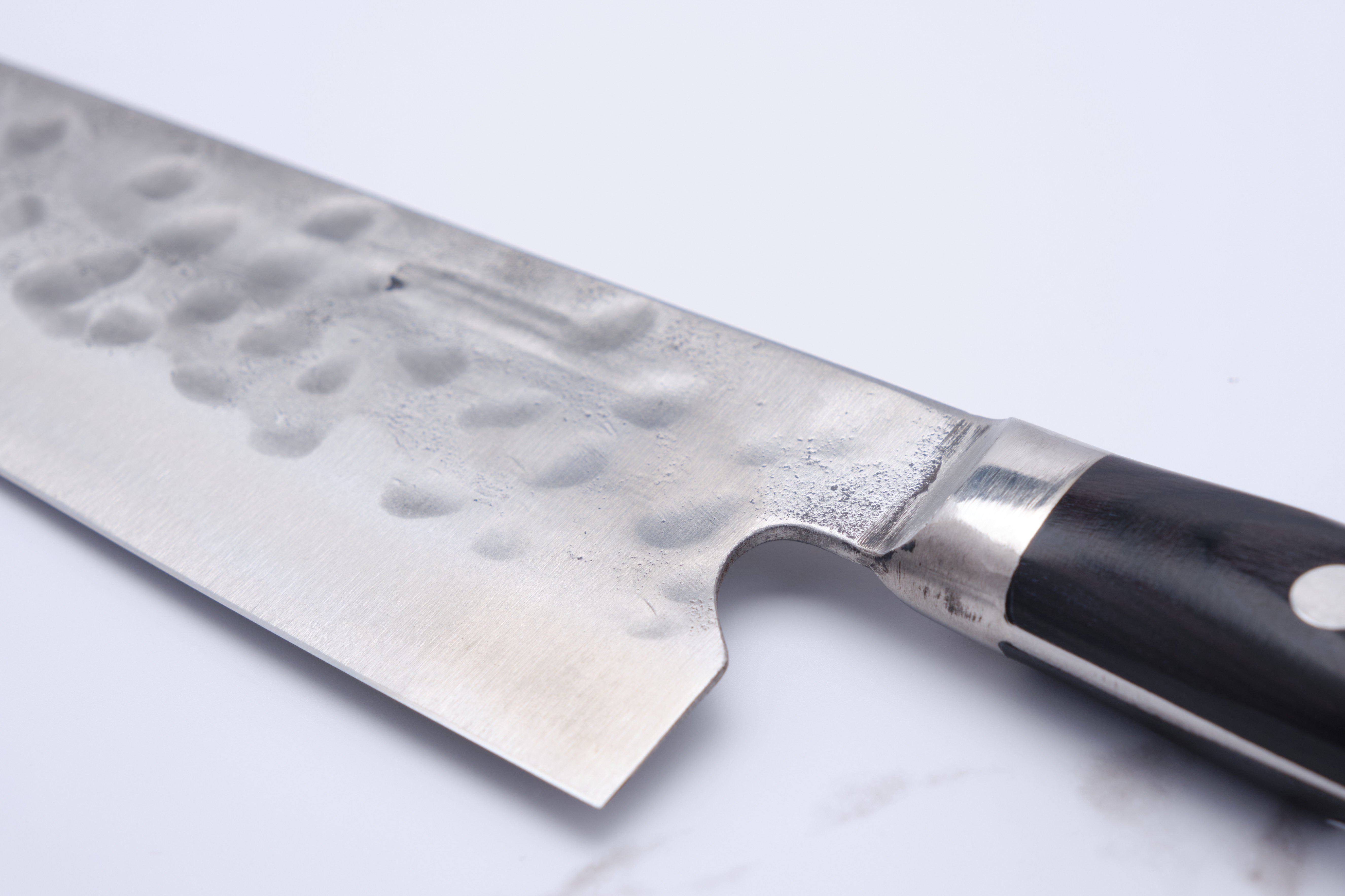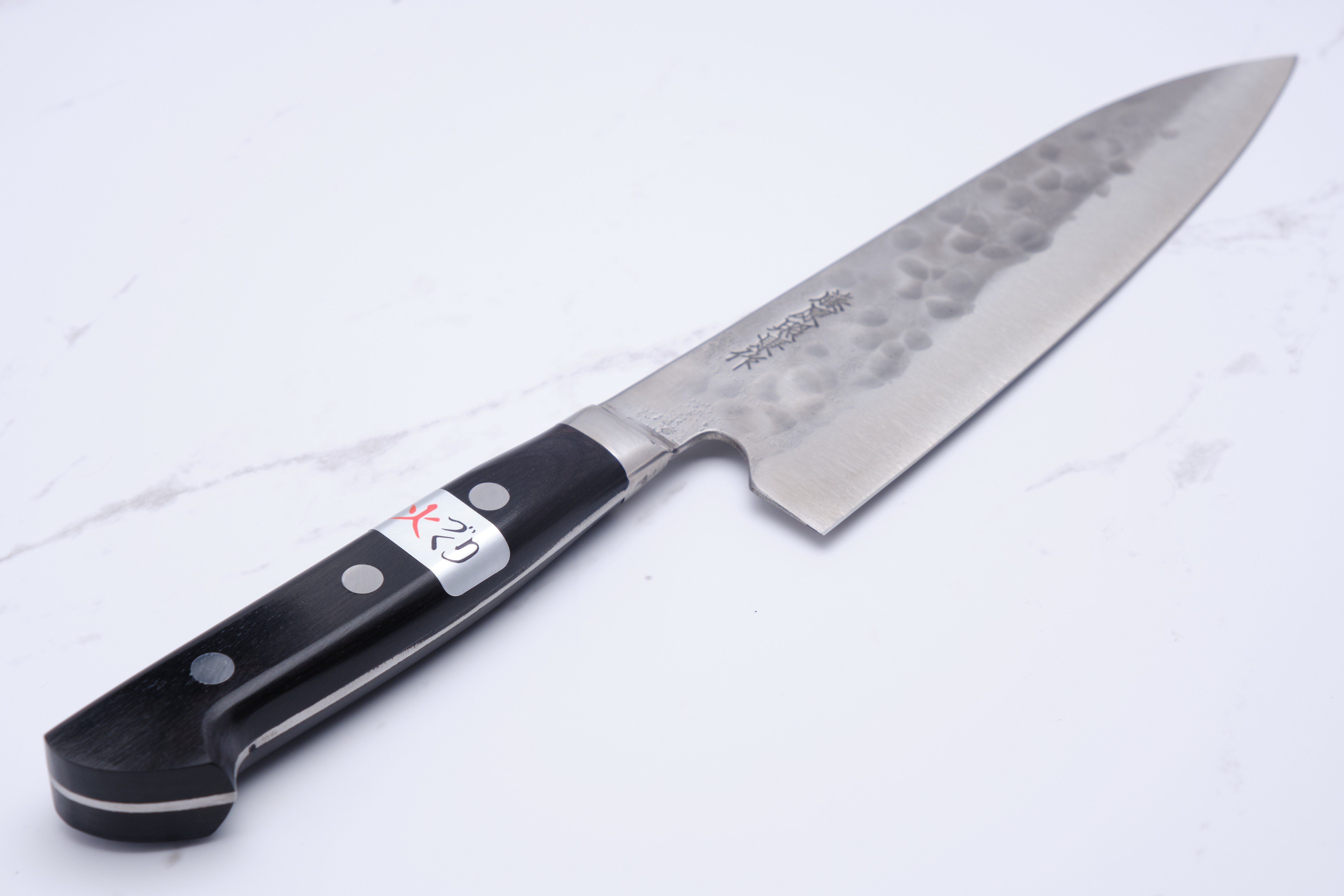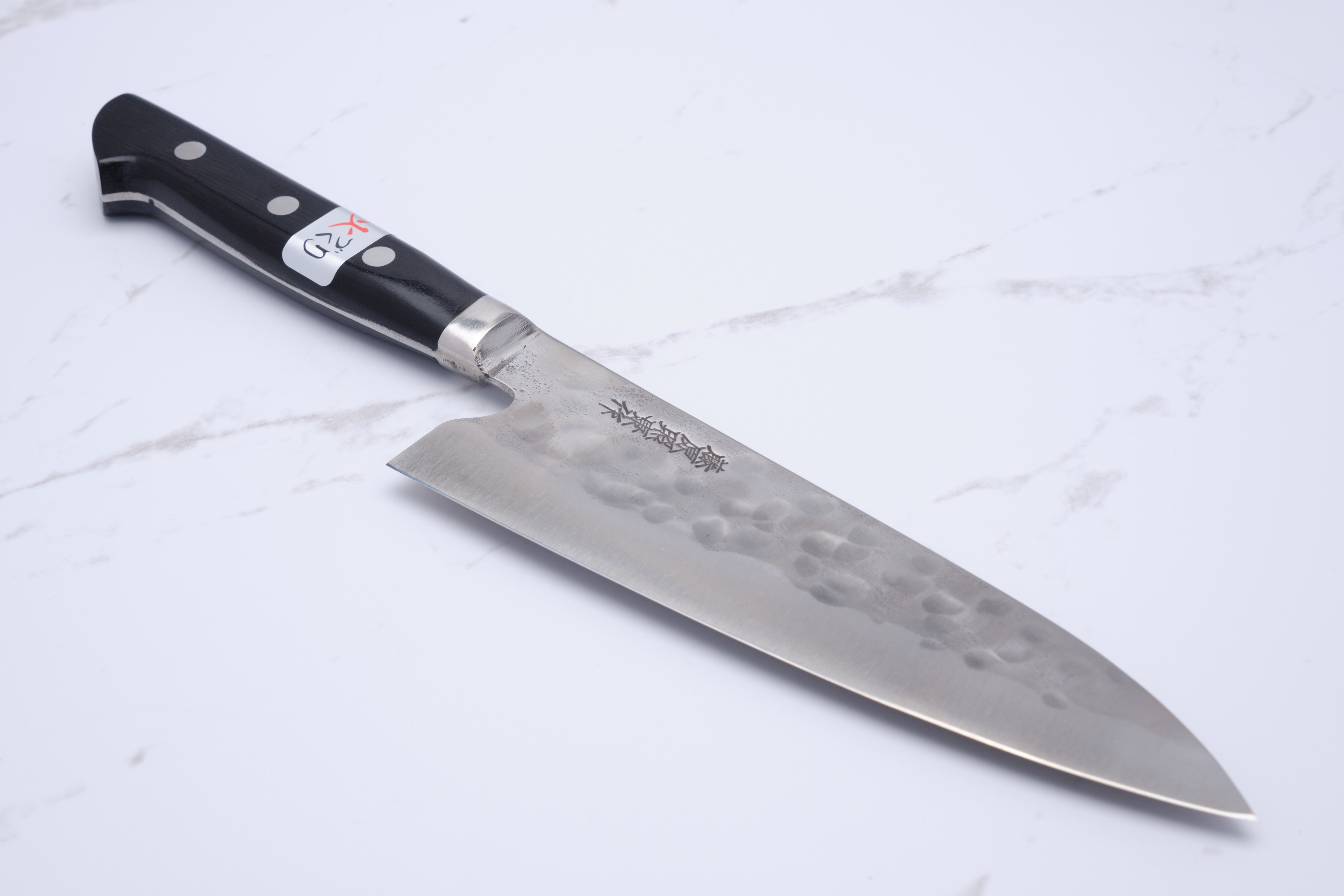 Teruyasu Fujiwara is a trained swordsmith, and makes some of the coolest knives in Japan. He is known for hardening his knives exceptionally hard, and they also cut like a dream. In addition, he was the first to start making a "finger notch" in his knives, so that when you pinch up on the knife, your middle finger rests safely and comfortably inside the finger notch.