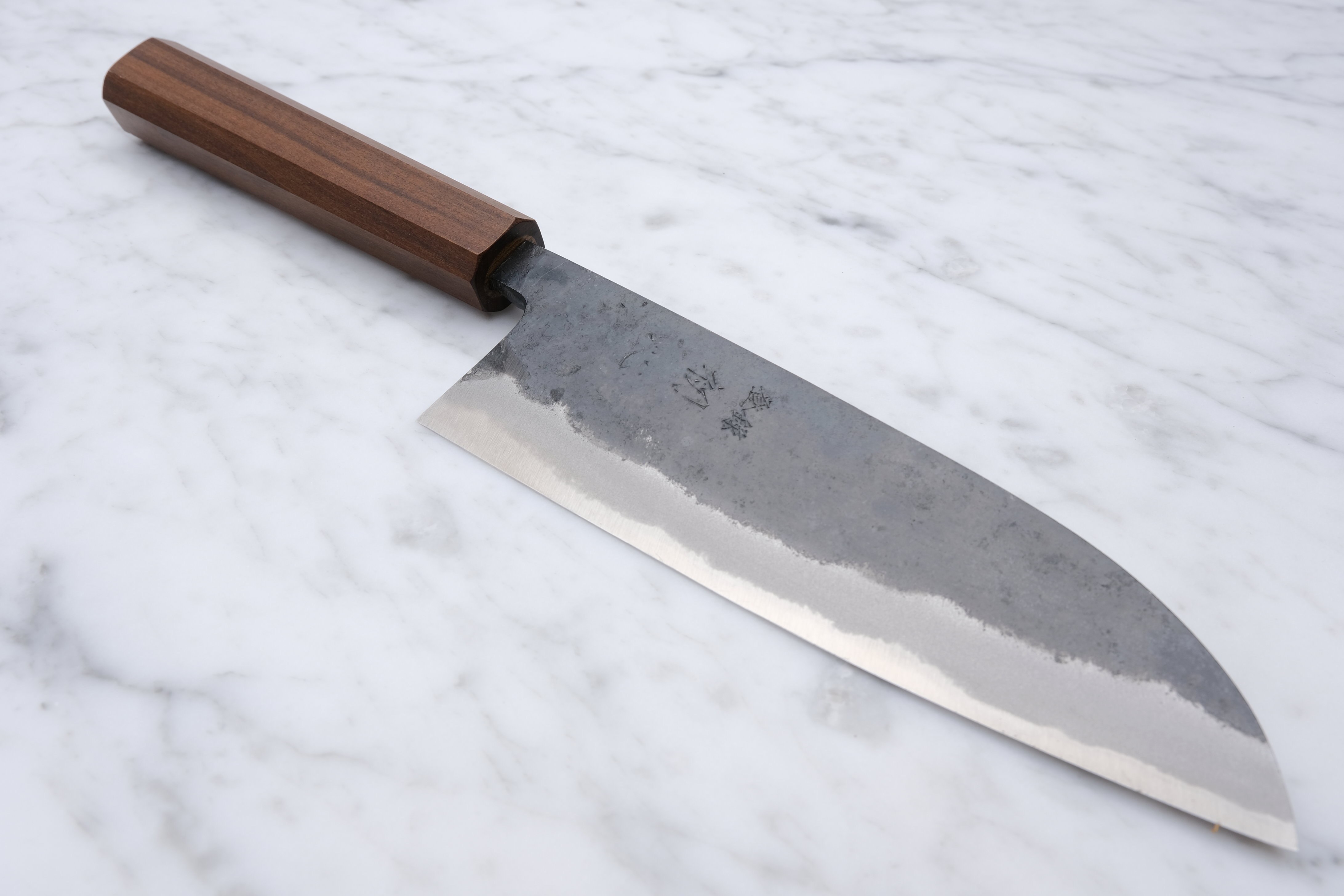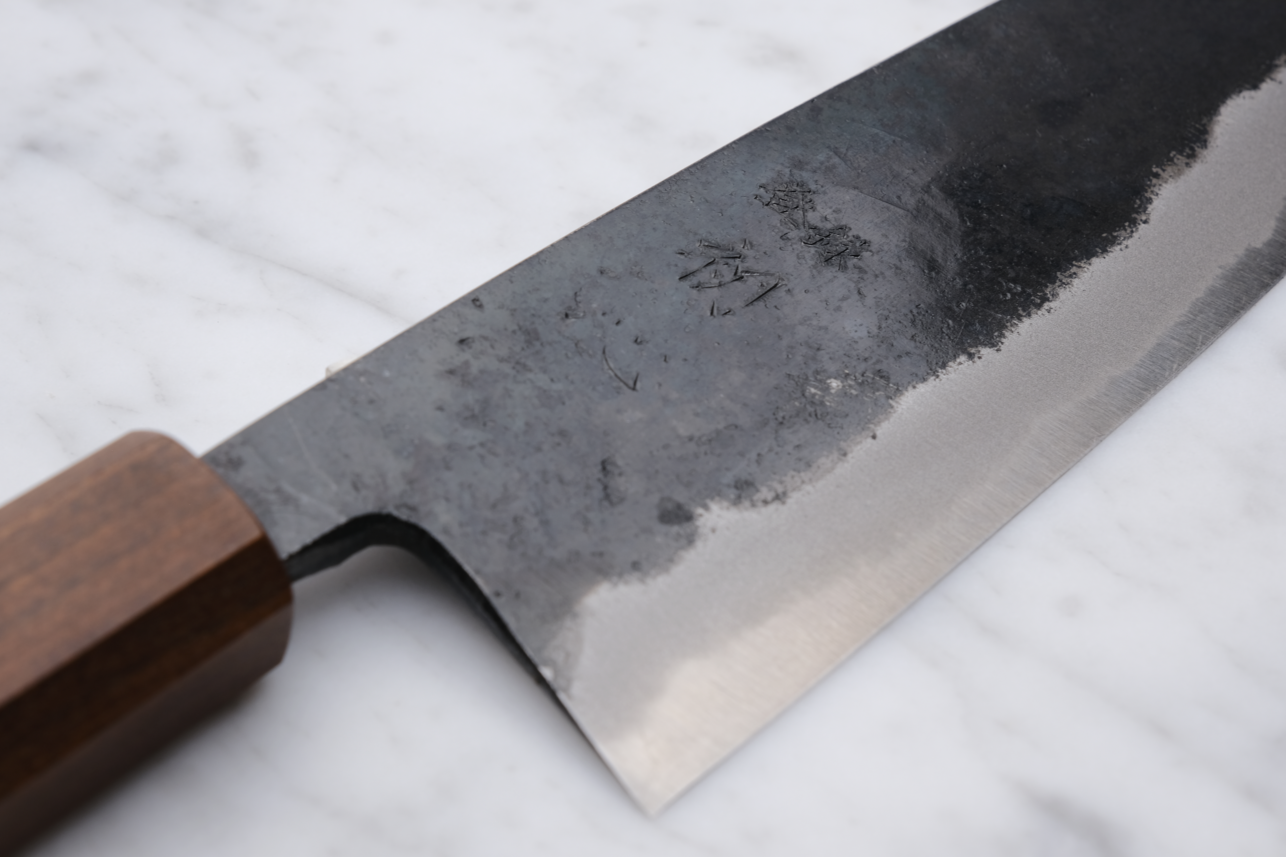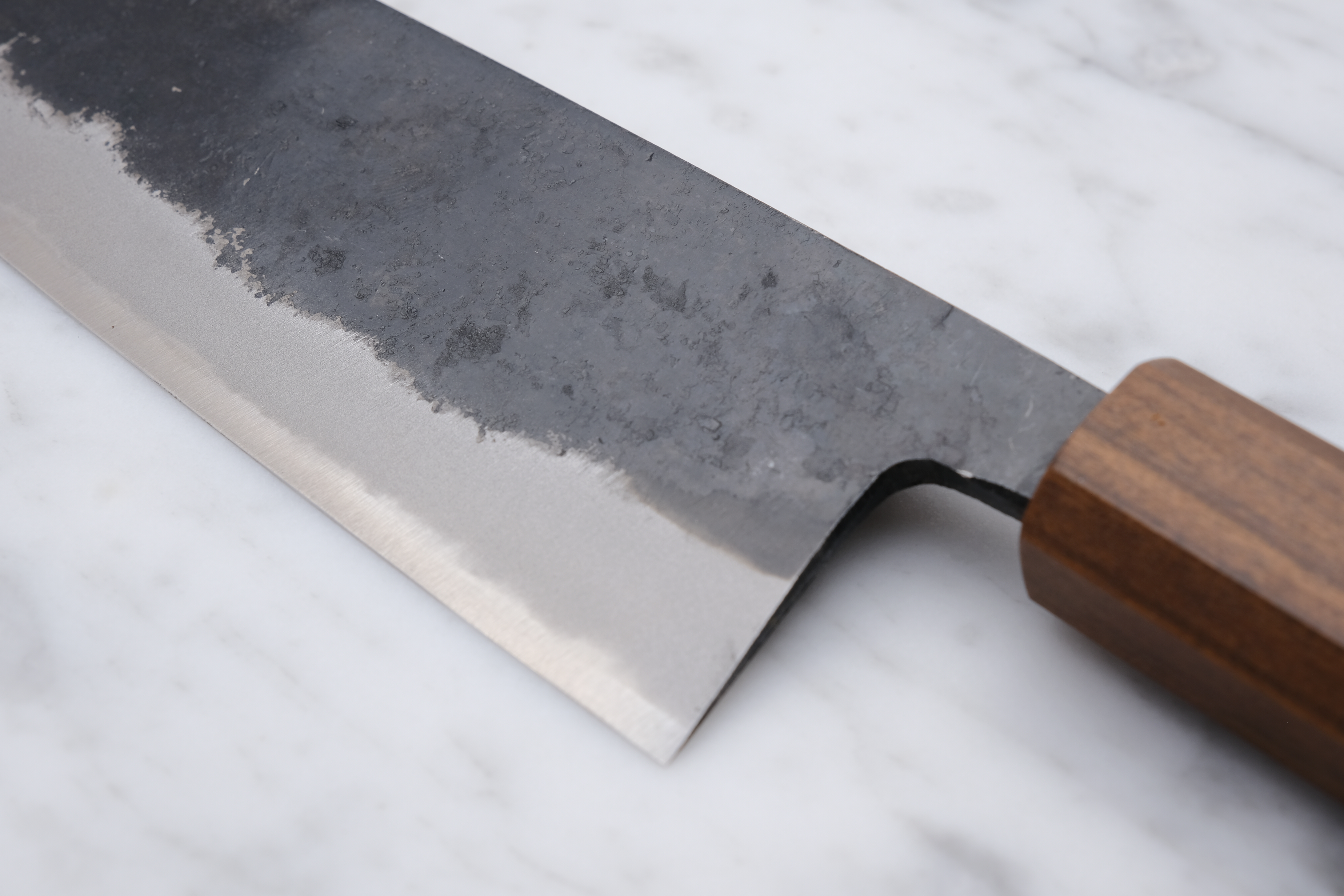 Hand forged in Tosa, Japan, the Sumi series are forged with blue 2 in the core and soft iron on the outside, meaning they will build up a patina over time, and can potentially rust if not taken care of.