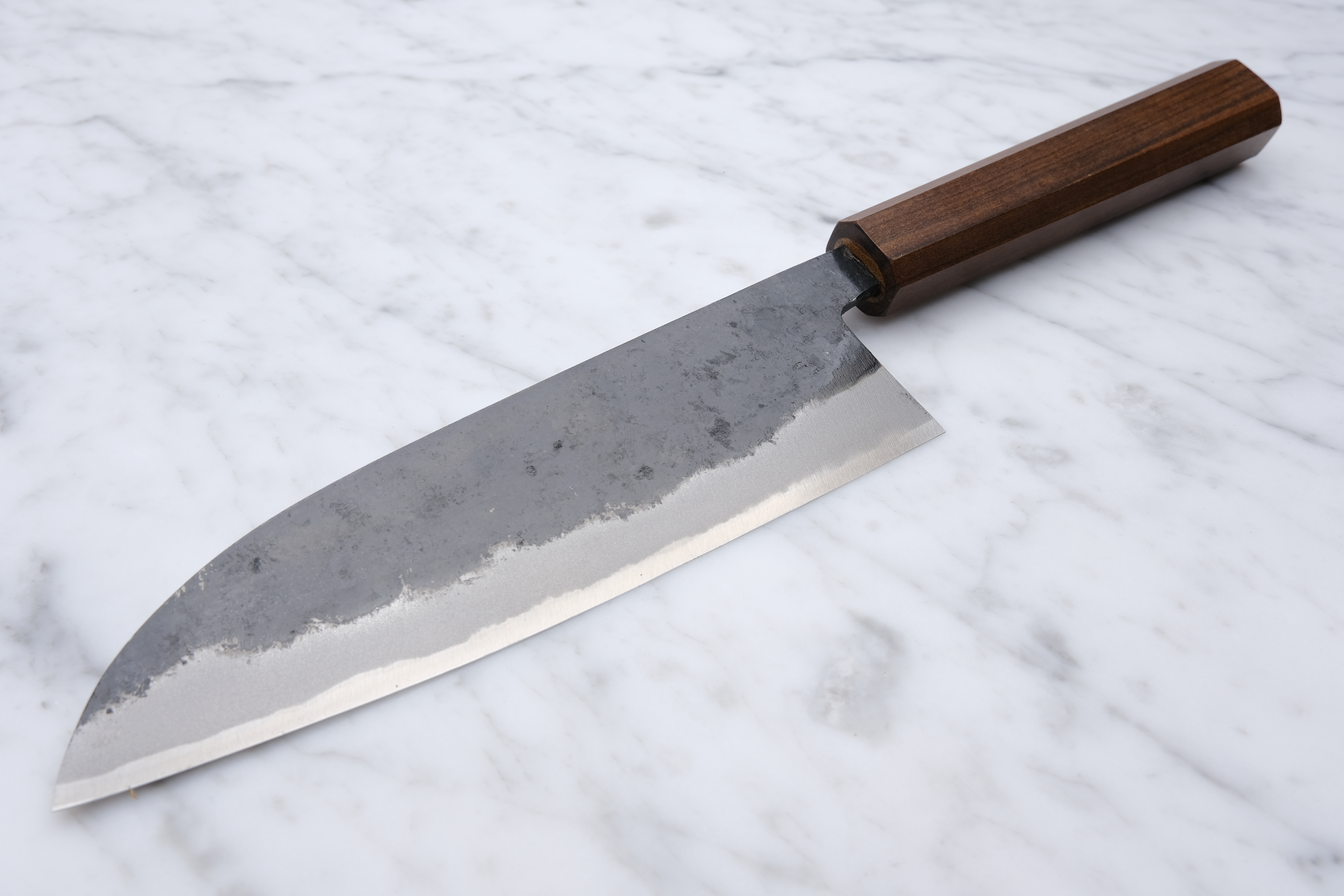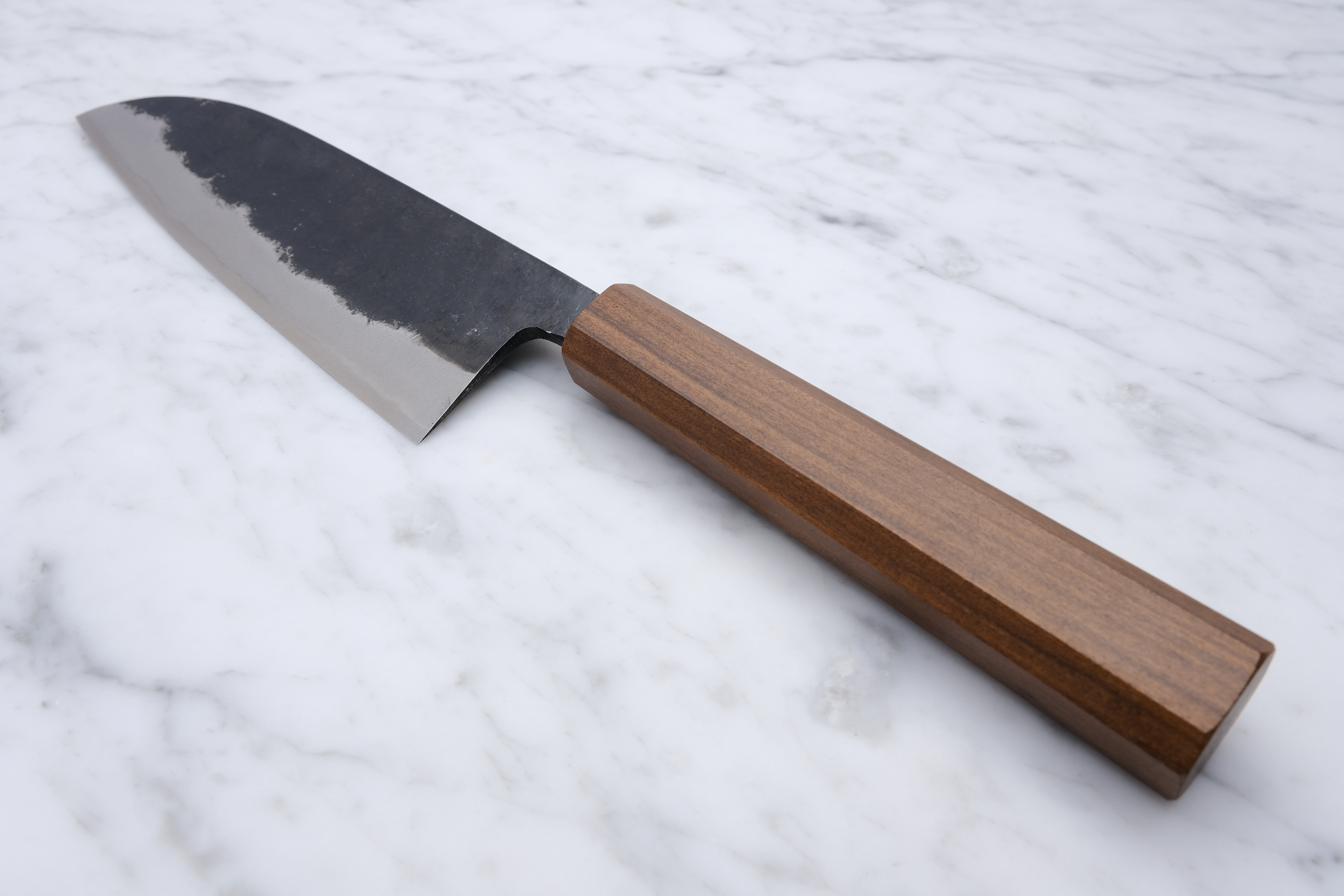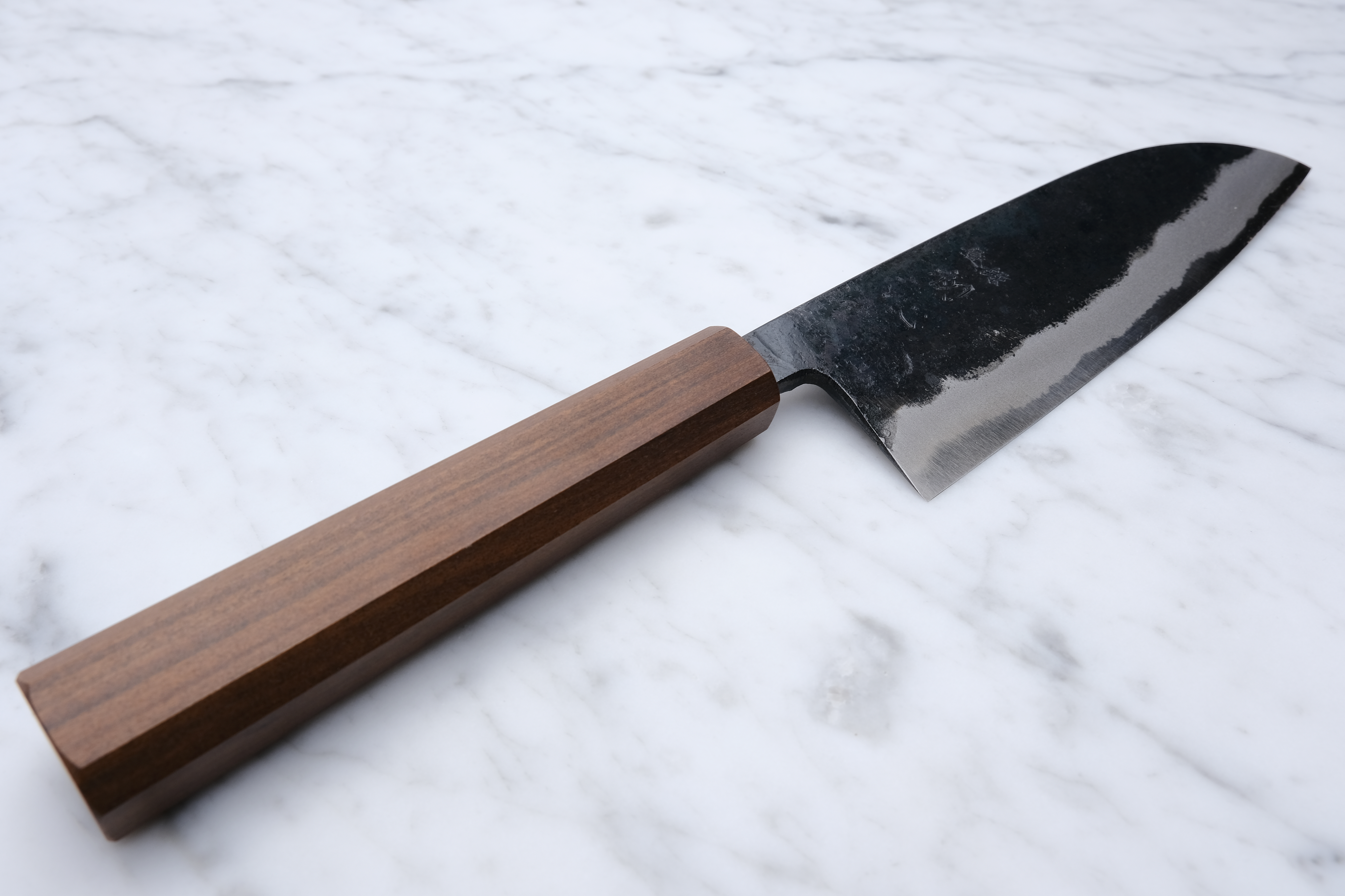 Hand forged in Tosa, Japan, the Sumi series are forged with blue 2 in the core and soft iron on the outside, meaning they will build up a patina over time, and can potentially rust if not taken care of.