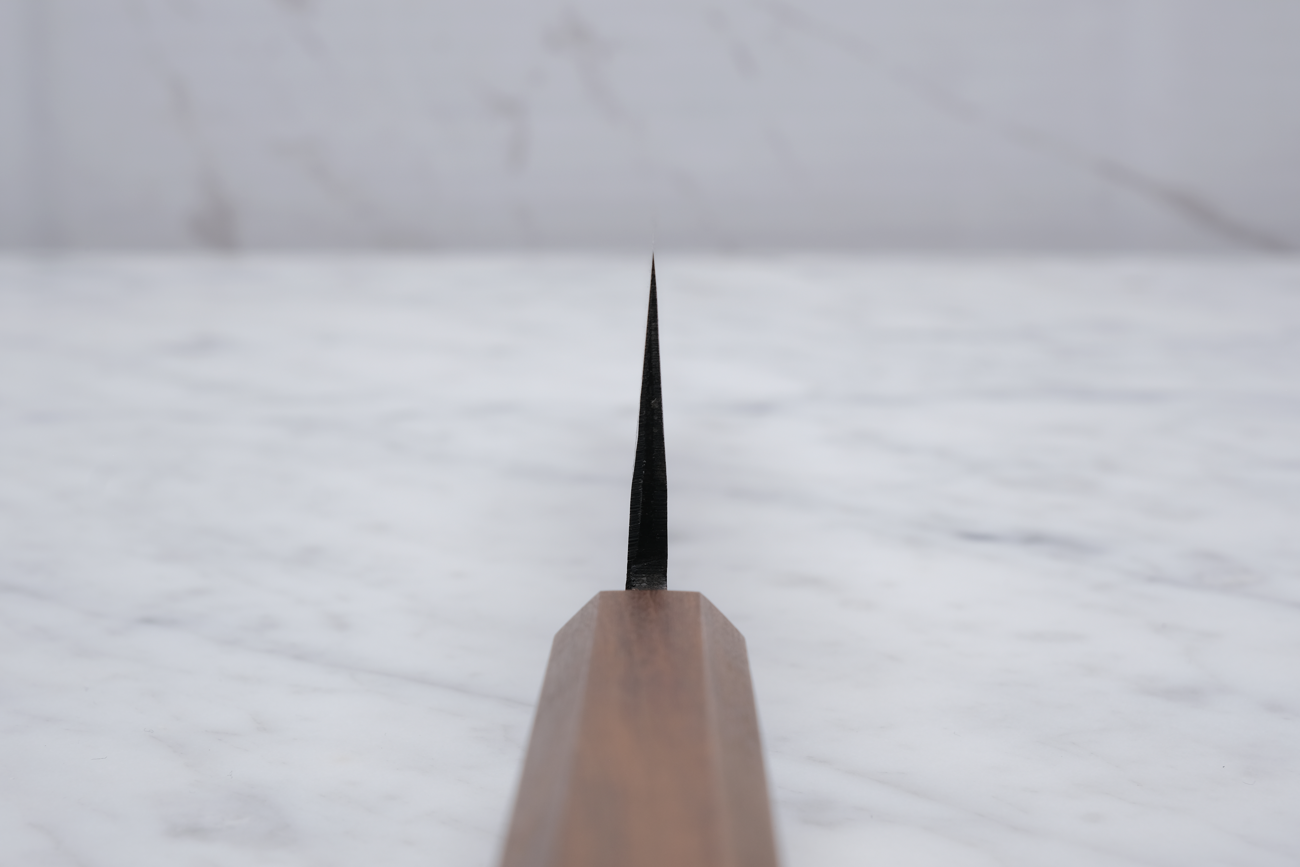 They are made with a classic kurouchi finish towards the top of the blade, and a kasumi finish further down towards the edge. The grind is fantastic, they become quite thin behind the edge, and therefore have a good cutting ability, and a bit of fit&finish has been done.