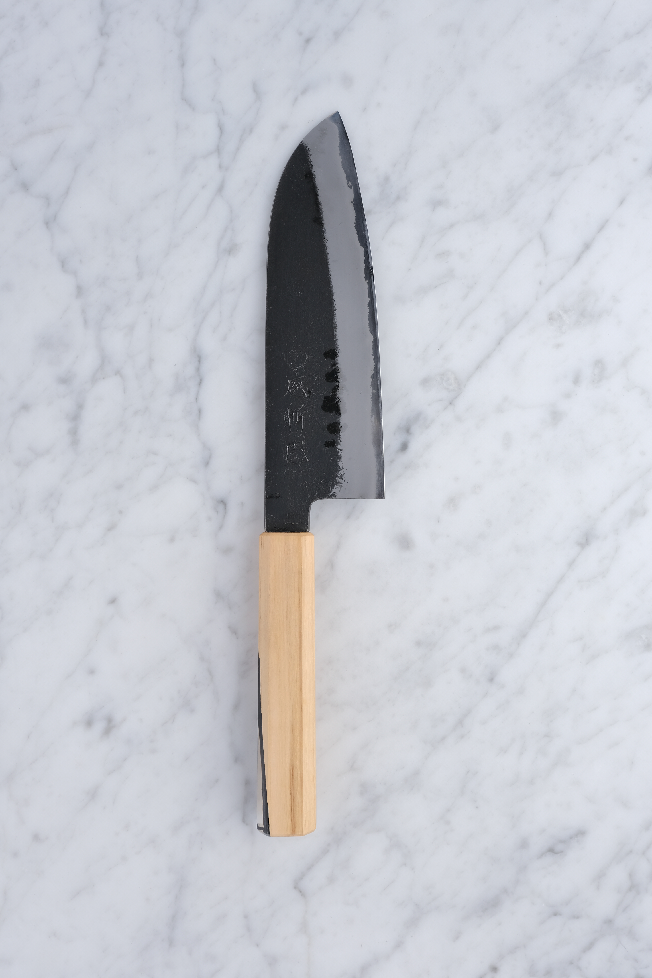 This knife is a santoku at 165 mm. It can be used for meat, fish, and vegetables.