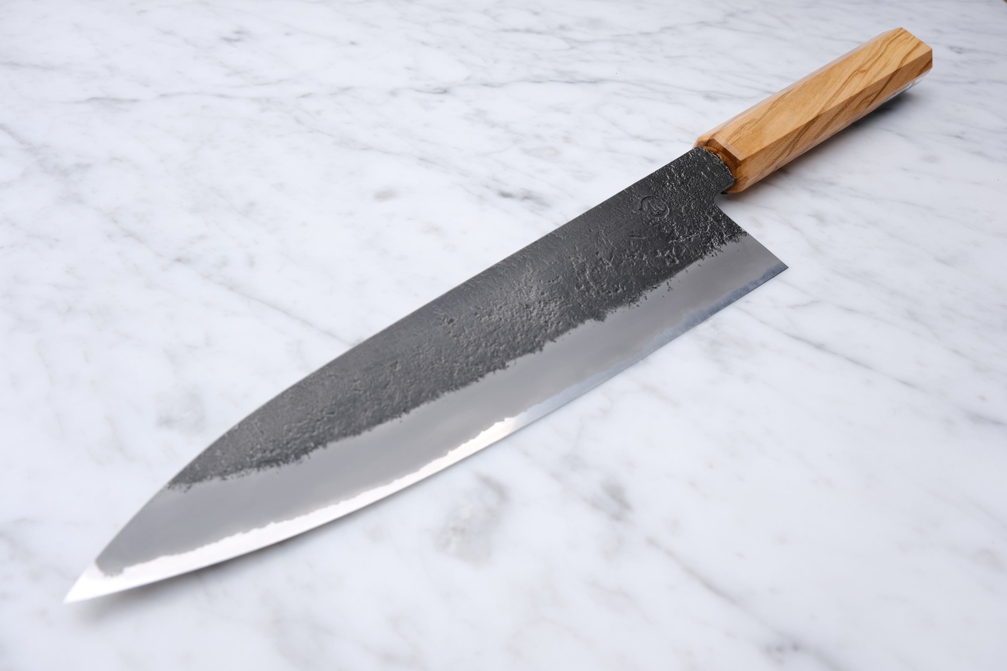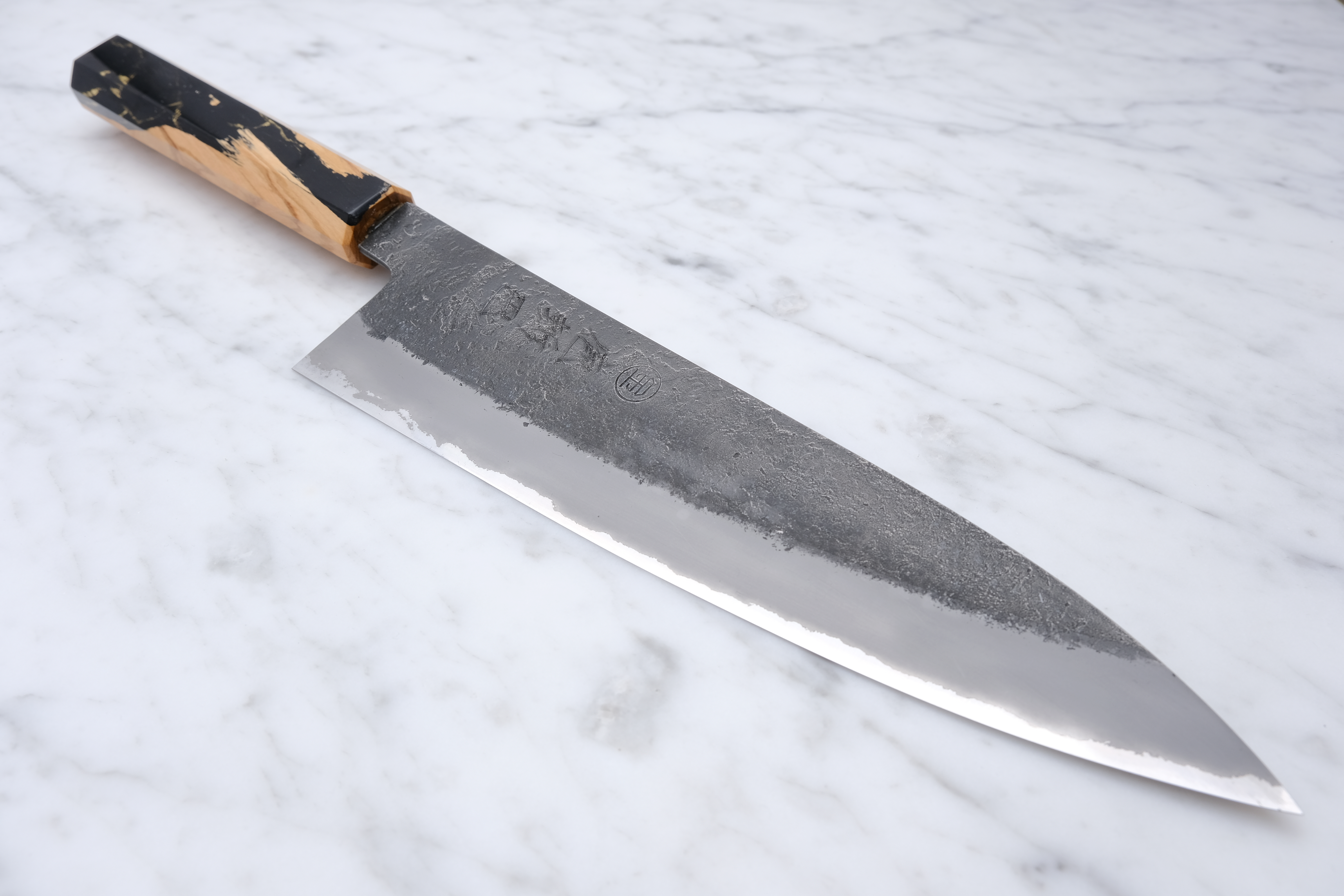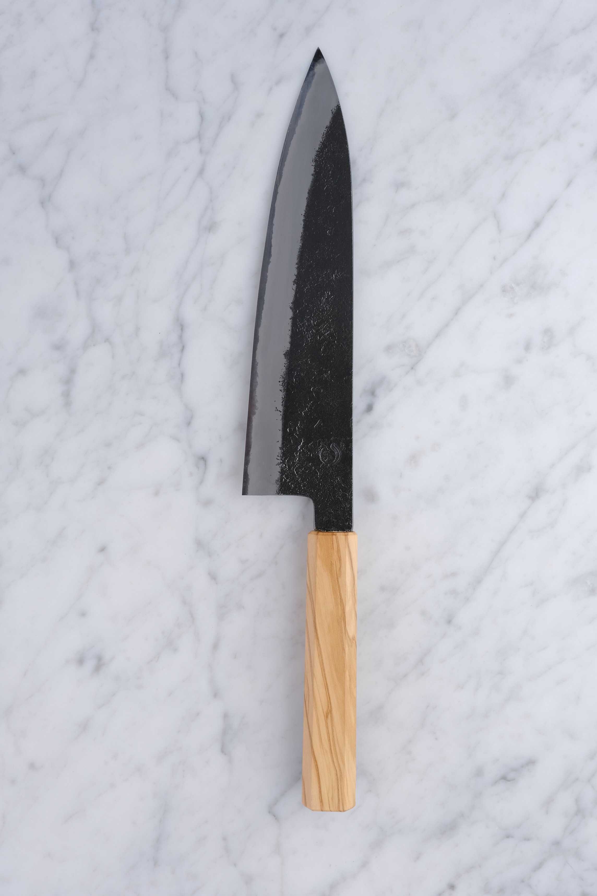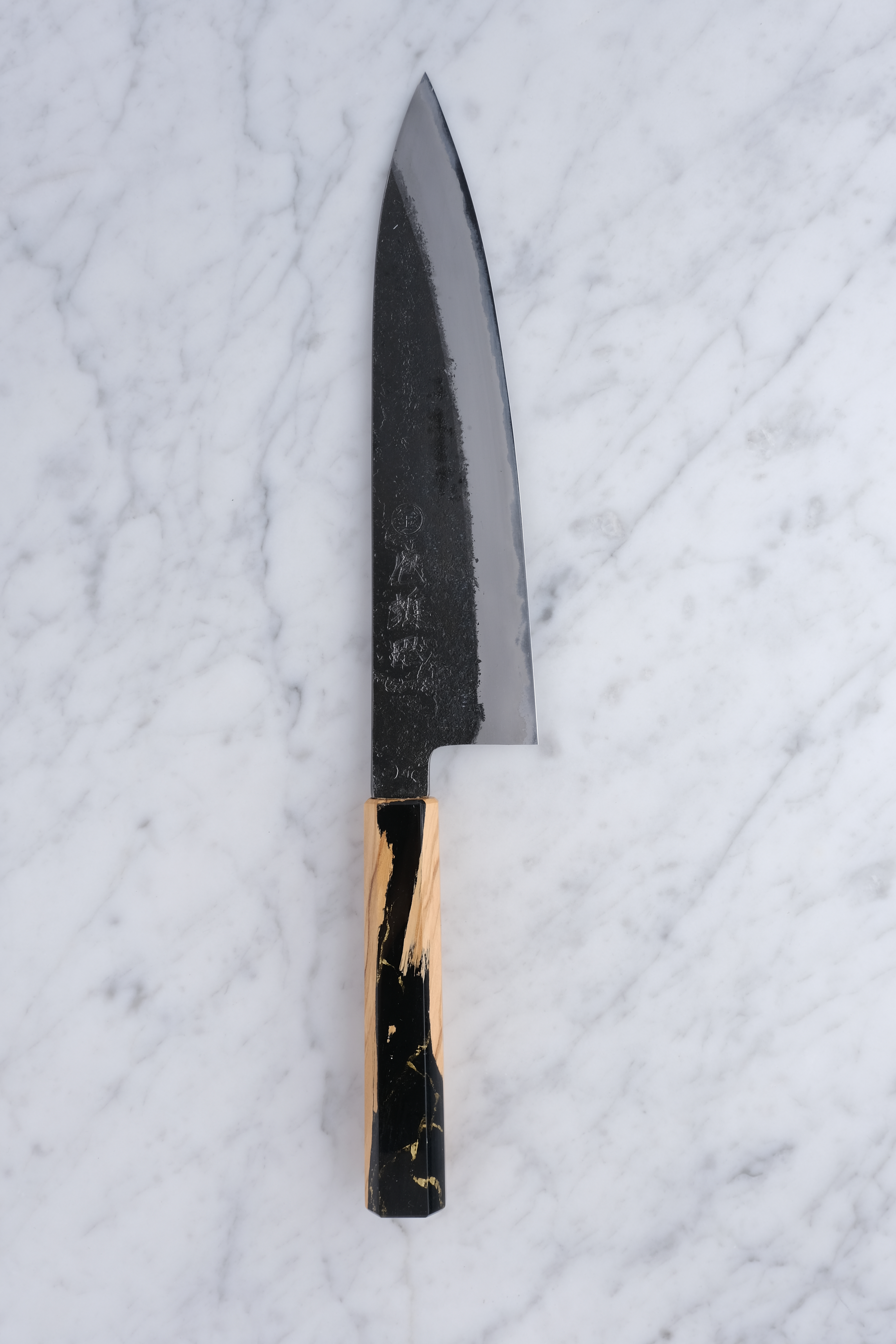This knife is a 210mm gyuto and is one of the most versatile knives in the kitchen. Used for meat, fish, and vegetables.