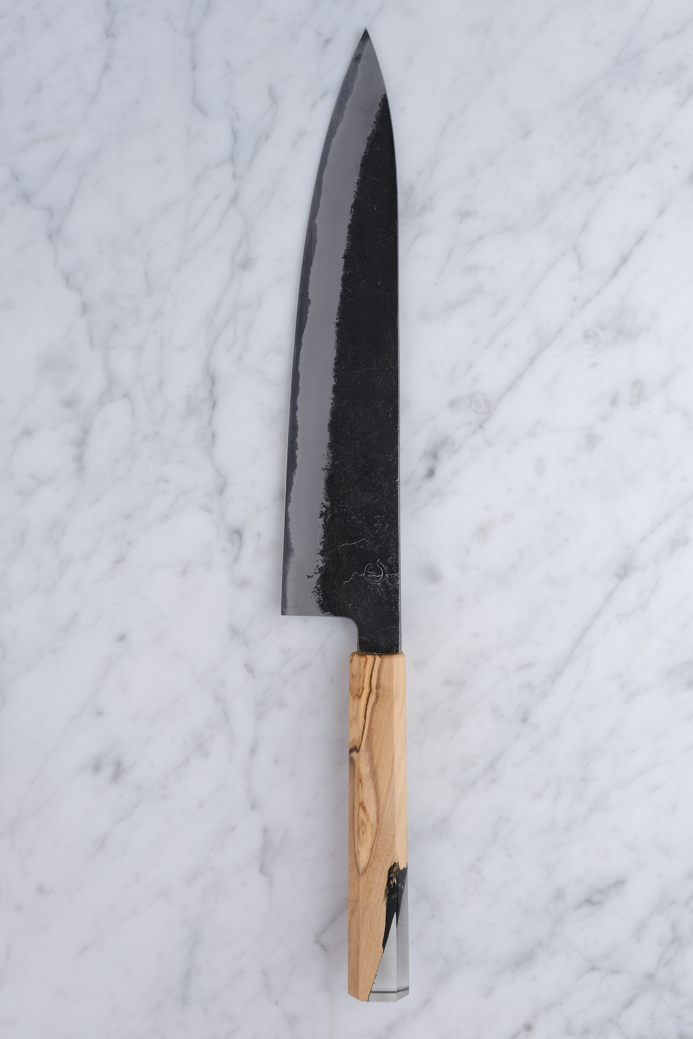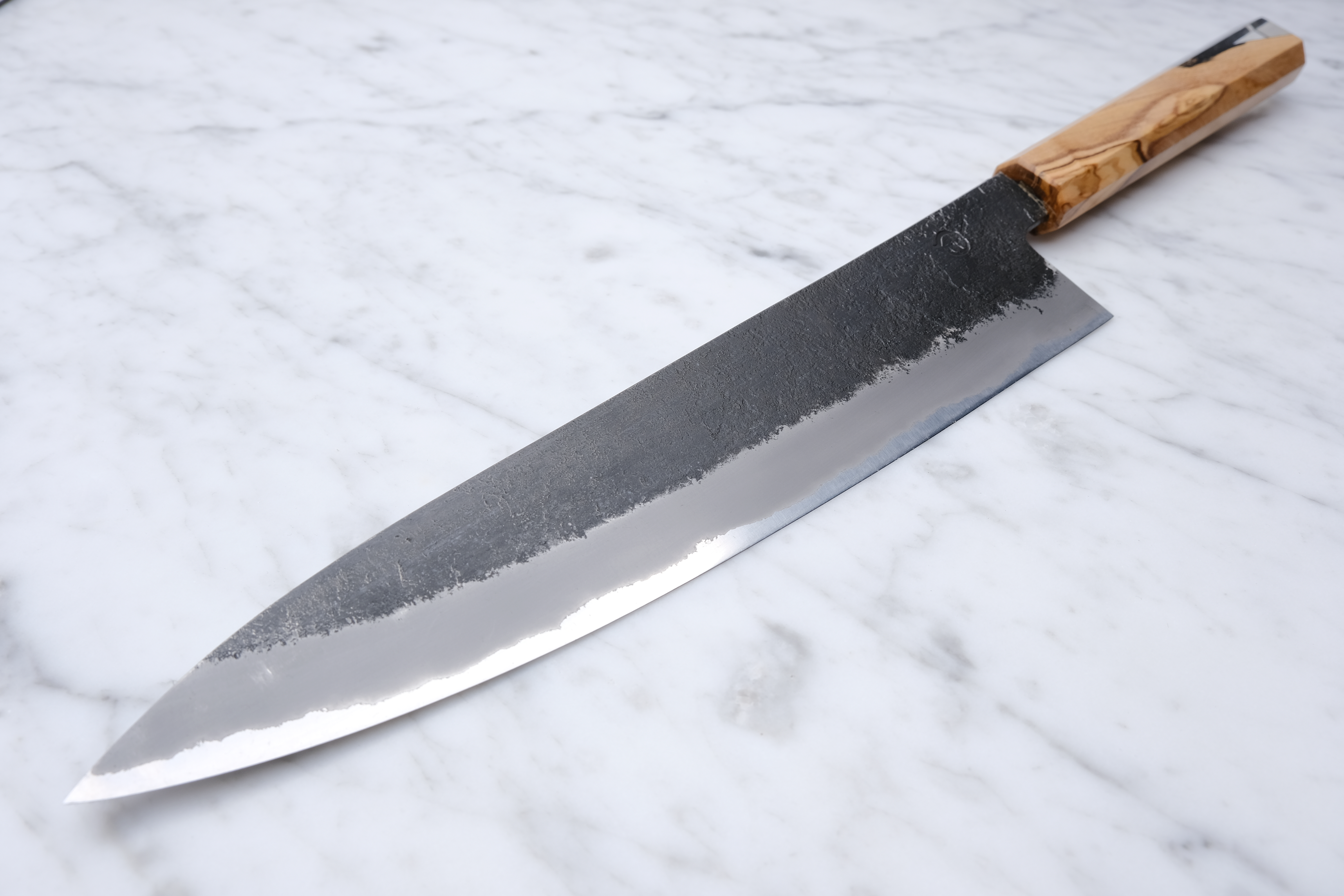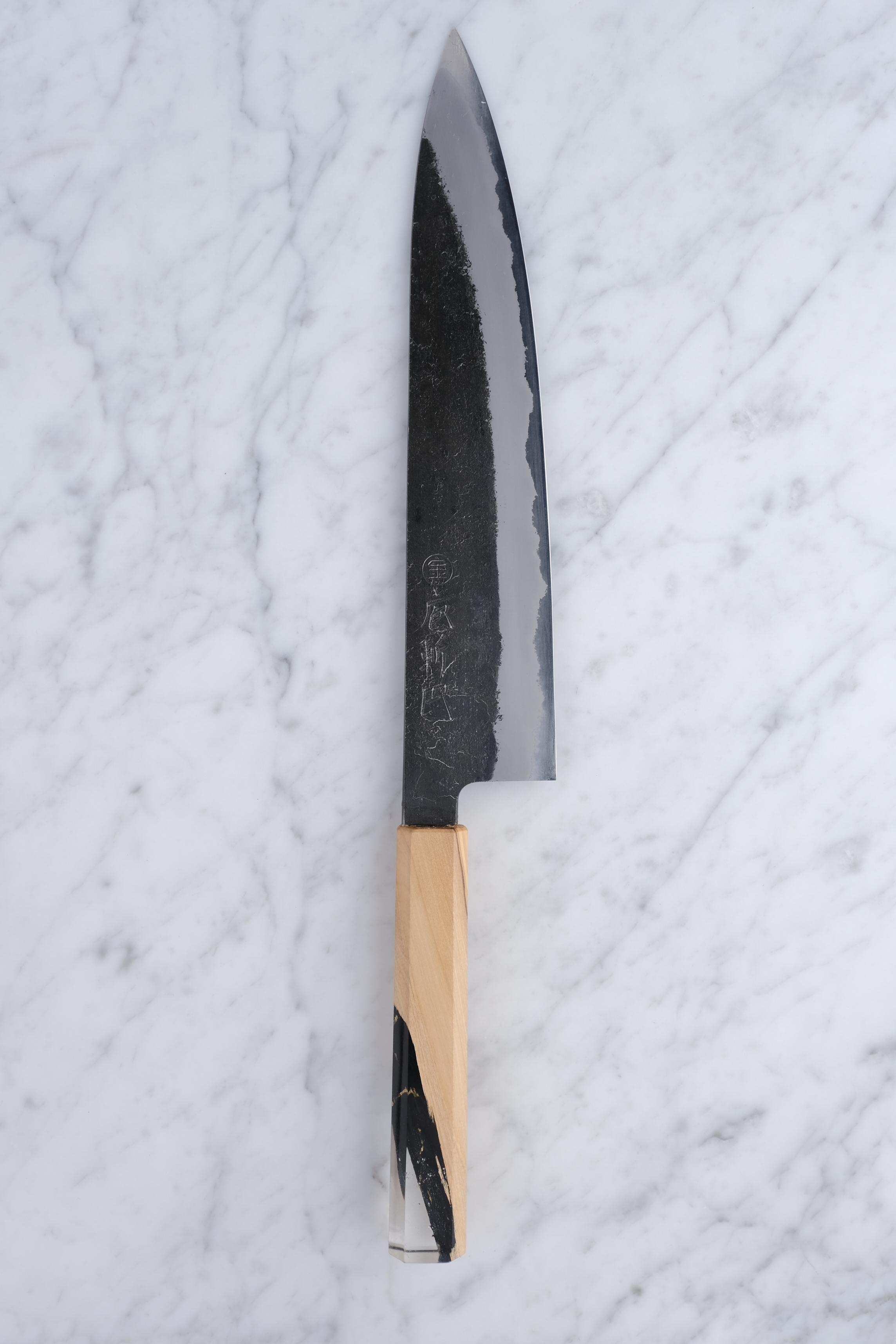 This knife is a 240mm gyuto and is one of the most versatile knives in the kitchen. Used for meat, fish, and vegetables.