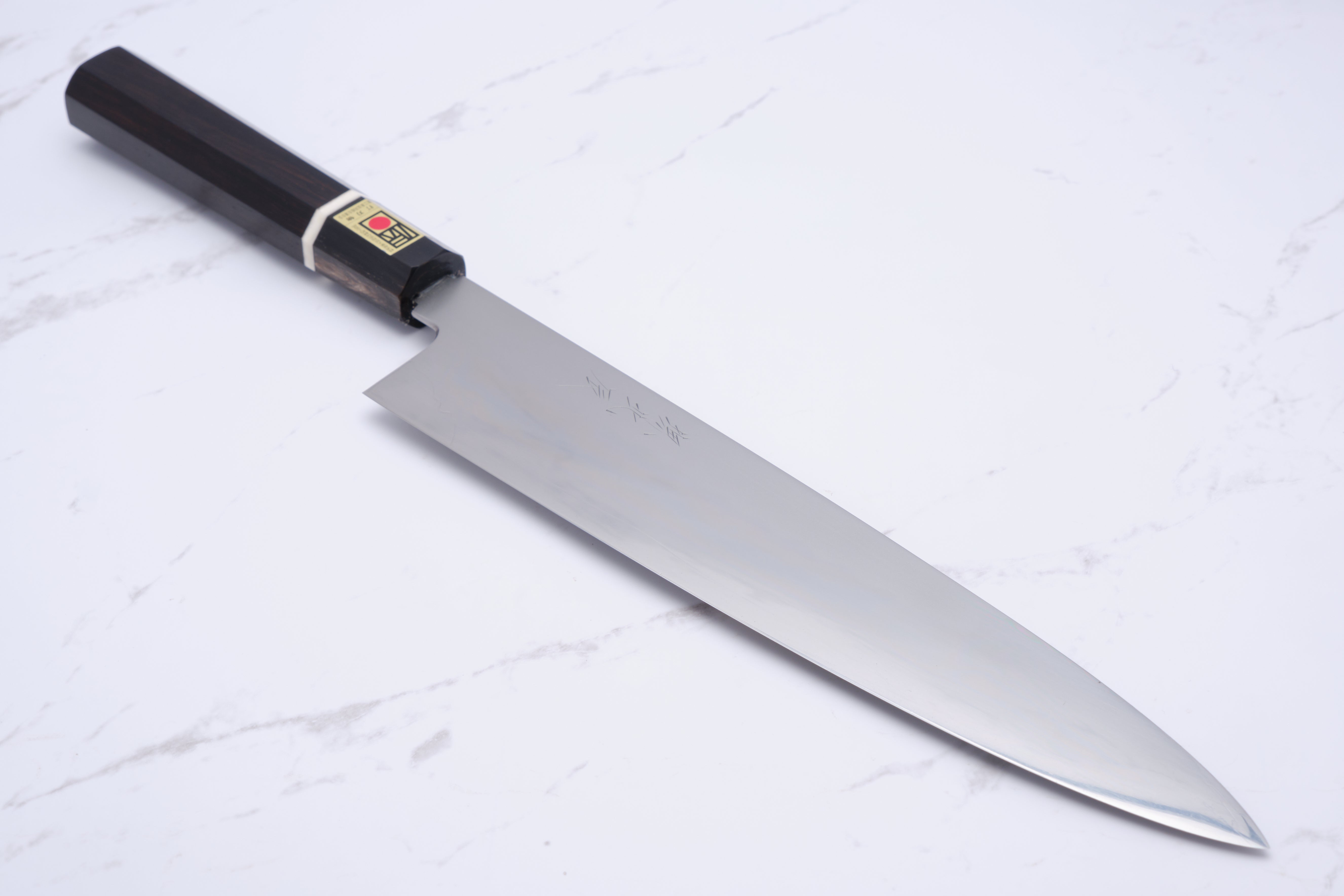 This knife is a gyuto, which is also popularly just called a chef's knife. This is 27 cm, and it is used for most tasks in the kitchen and is particularly good for slicing and chopping tasks in both meat and vegetables.