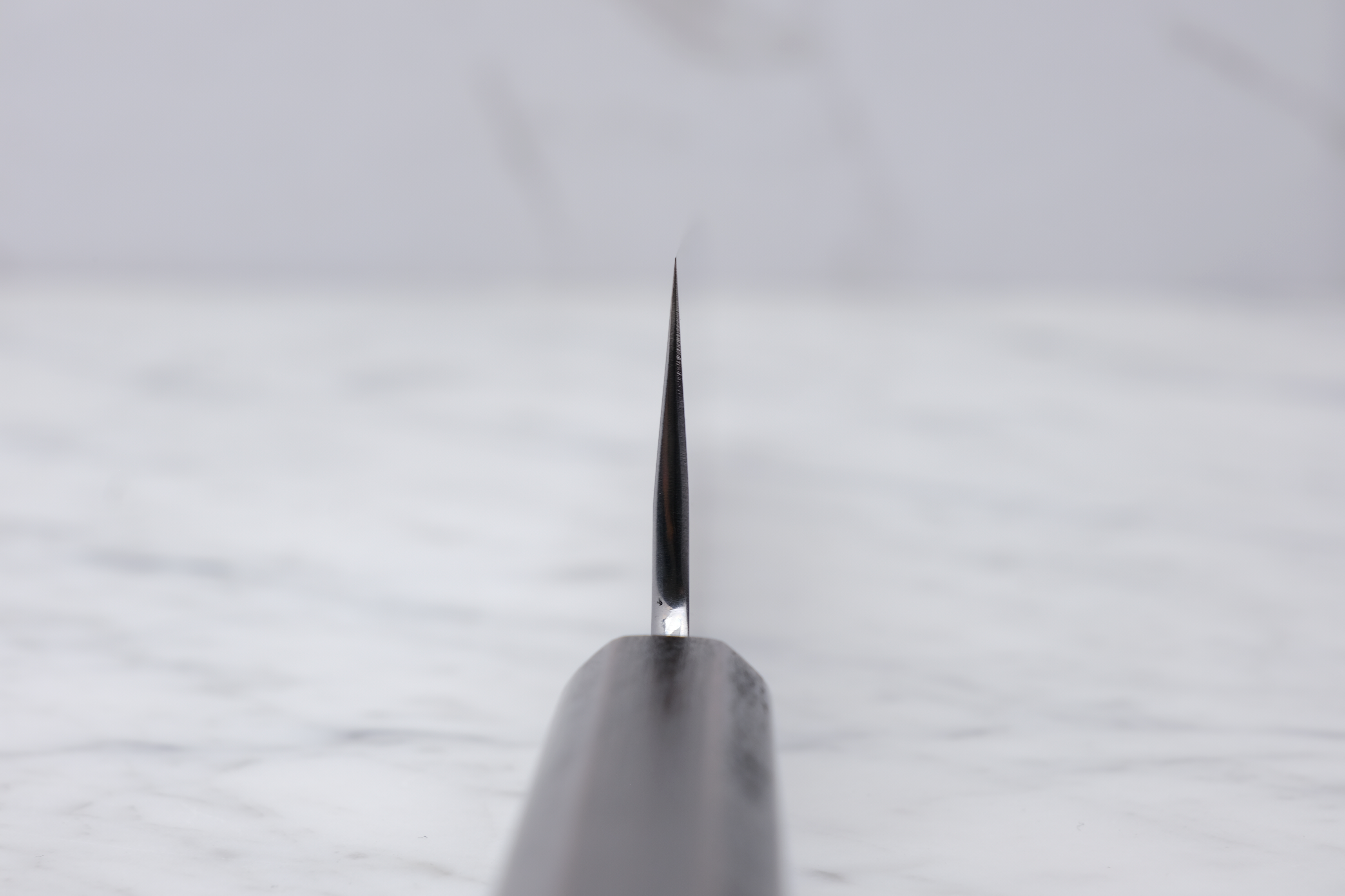 The sharpener of this knife is none other than Sho Nishida, who is Baba Hamono's in-house sharpener. Nishida-San started as a chef in his father's sushi restaurant at the age of 20, but began to apprentice under the legendary sharpeners Morihiro and Hirofuji at the age of 30. He has over time become really good and known for his shinogi/wide bevel sharpening as well as mirror polish and honyaki sharpening, which requires a high level of skill.