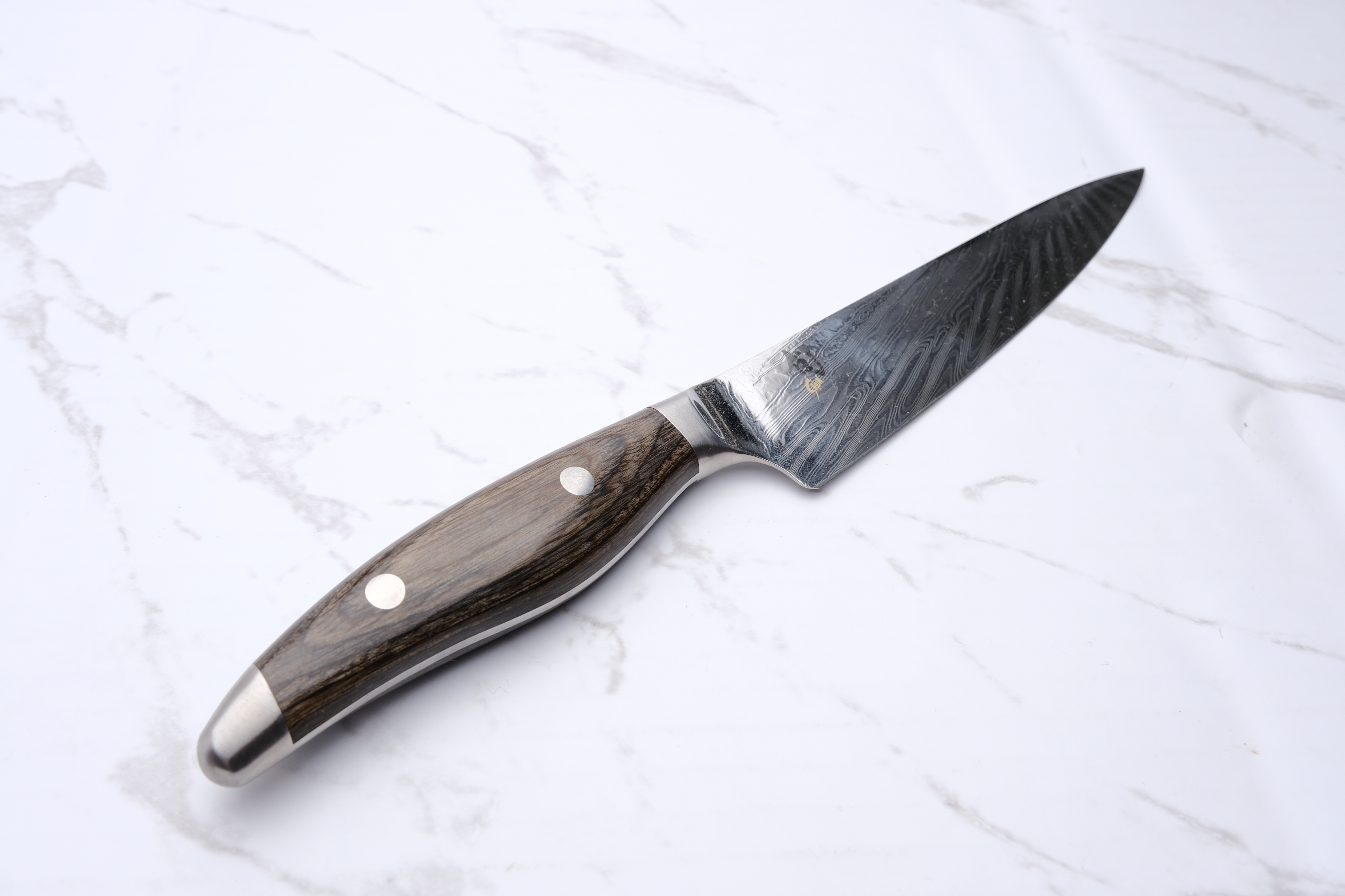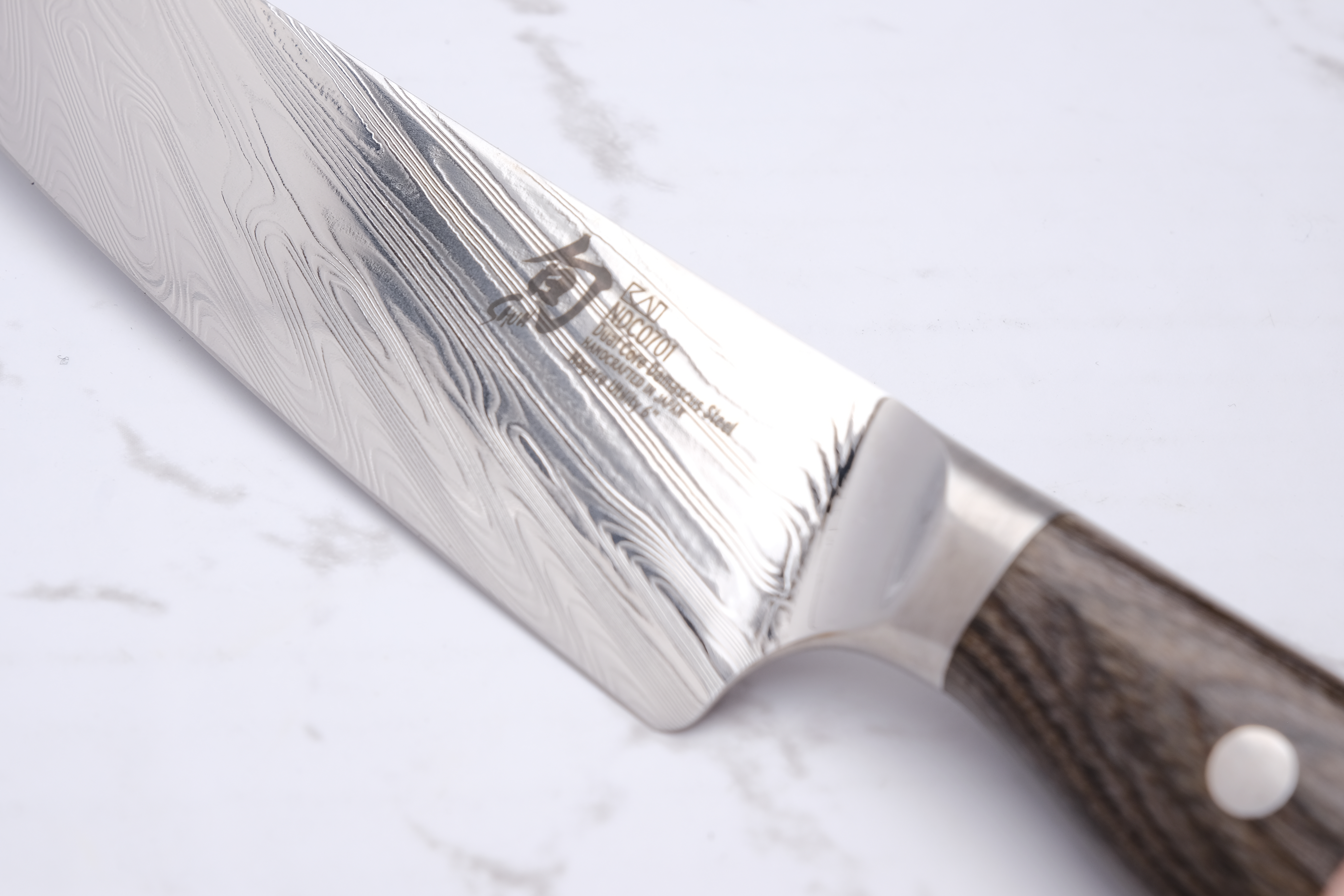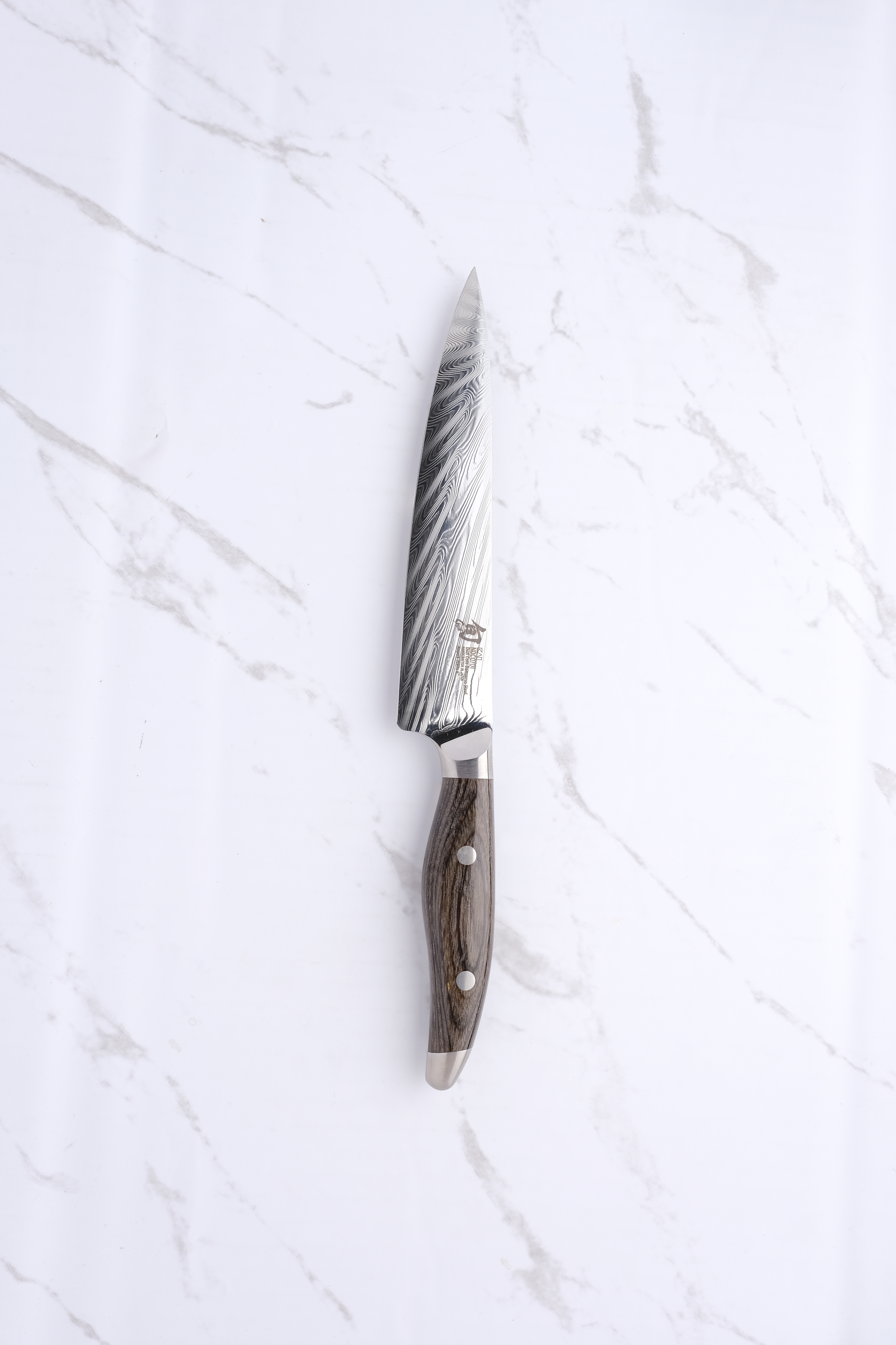 This series is a bit atypical in that it is made of 72 layers of damascus which consists of VG2 and VG10 steel. Normally a knife would have a core steel and two layers of mild stainless on the outside. But in this case it is a layer of steel which is made in several layers. This gives the knives from this series a completely unique look that you don't see often! The cutting ability is, as always, top notch, and with its unique ergonomic handle, they also lie well in the hand.