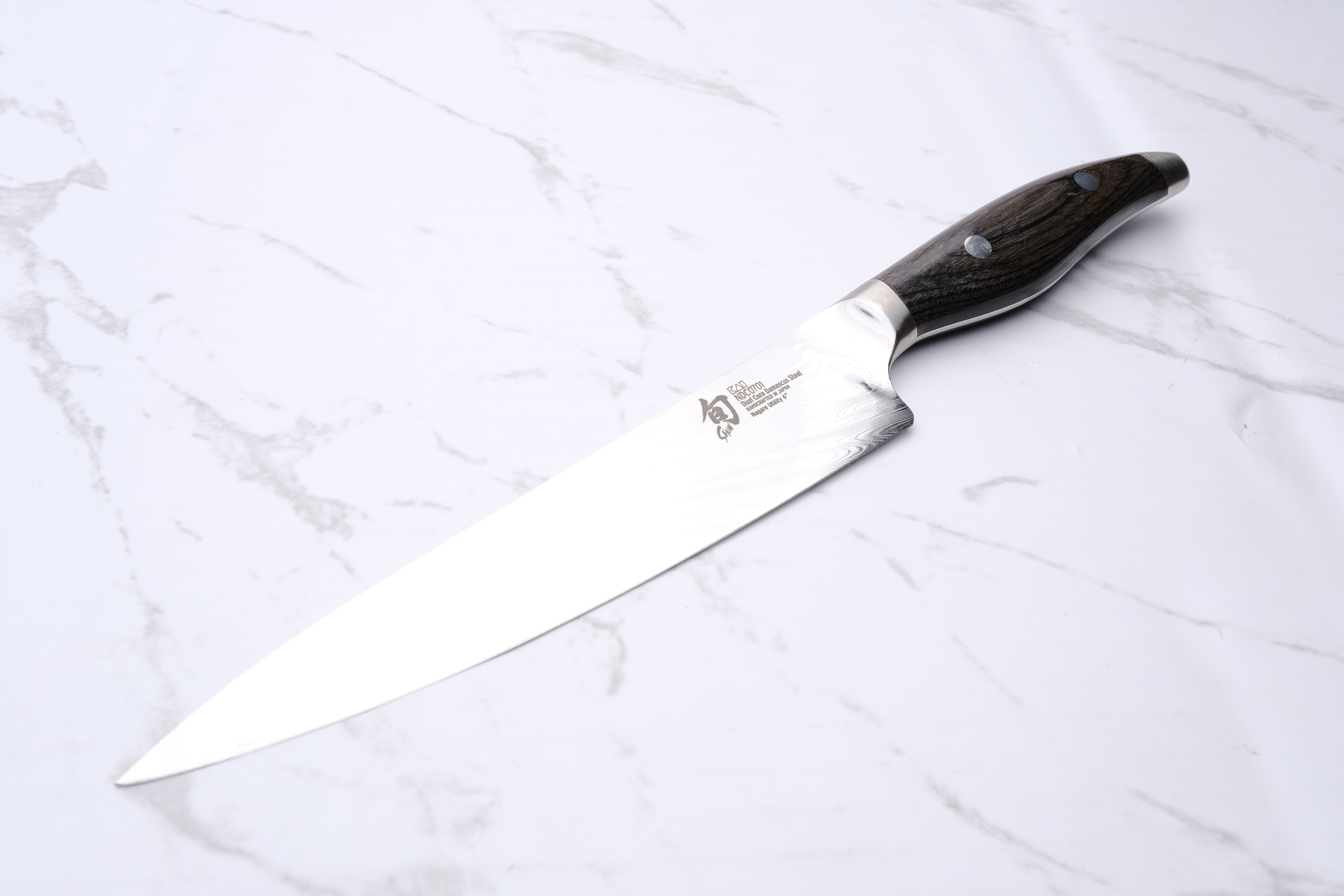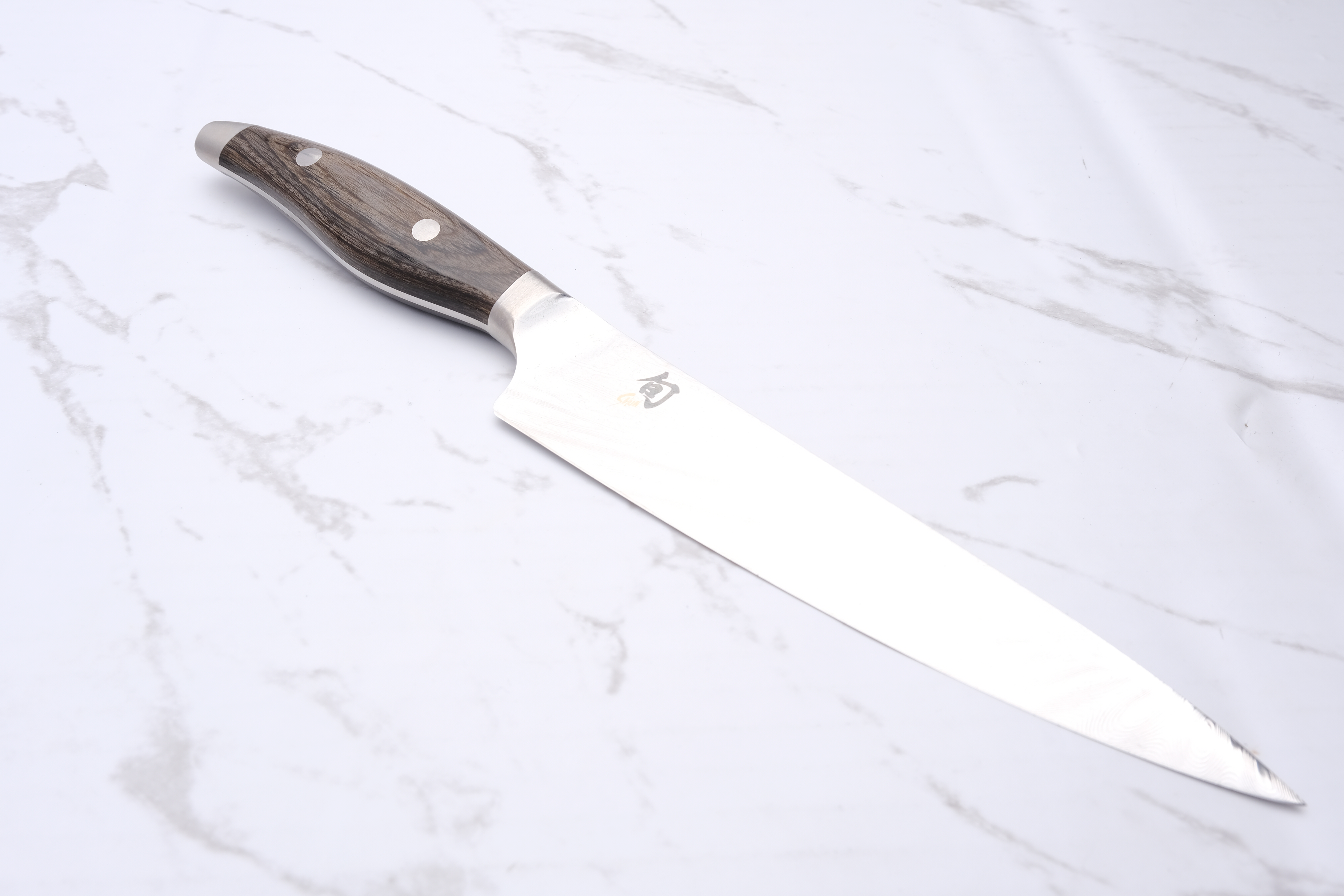 The knife must never be washed in a dishwasher, must not cut into hard objects such as bones, cartilage, bones and frozen objects as well as hard cheeses. Remember that it is a property of thin, hard metal that it can break.
