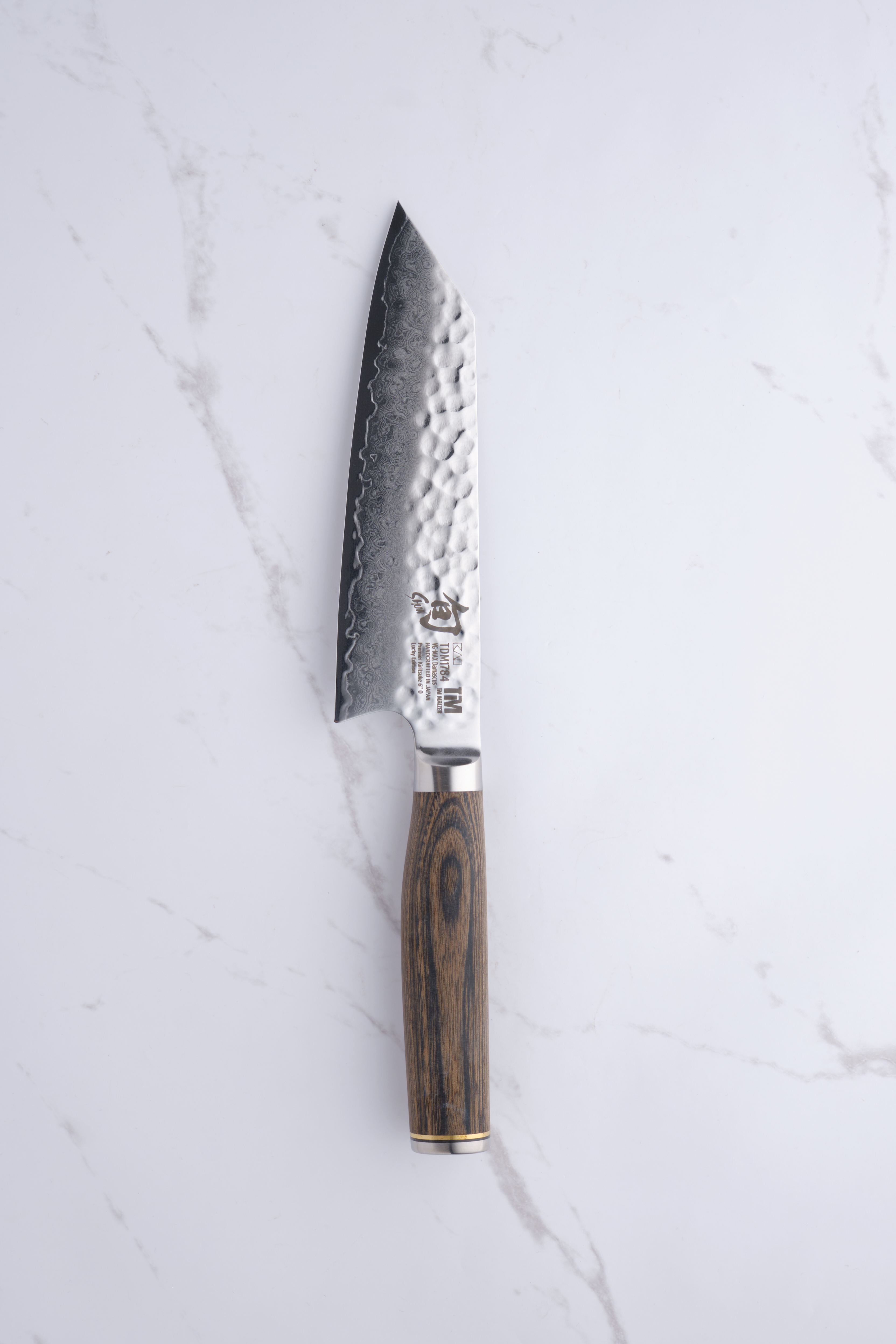 The Shun Premier Tim Mälzer knives from KAI are a premium series of knives for both enthusiasts and professionals. The hallmarks are high quality and finish, good cutting properties and a particularly comfortable handle.