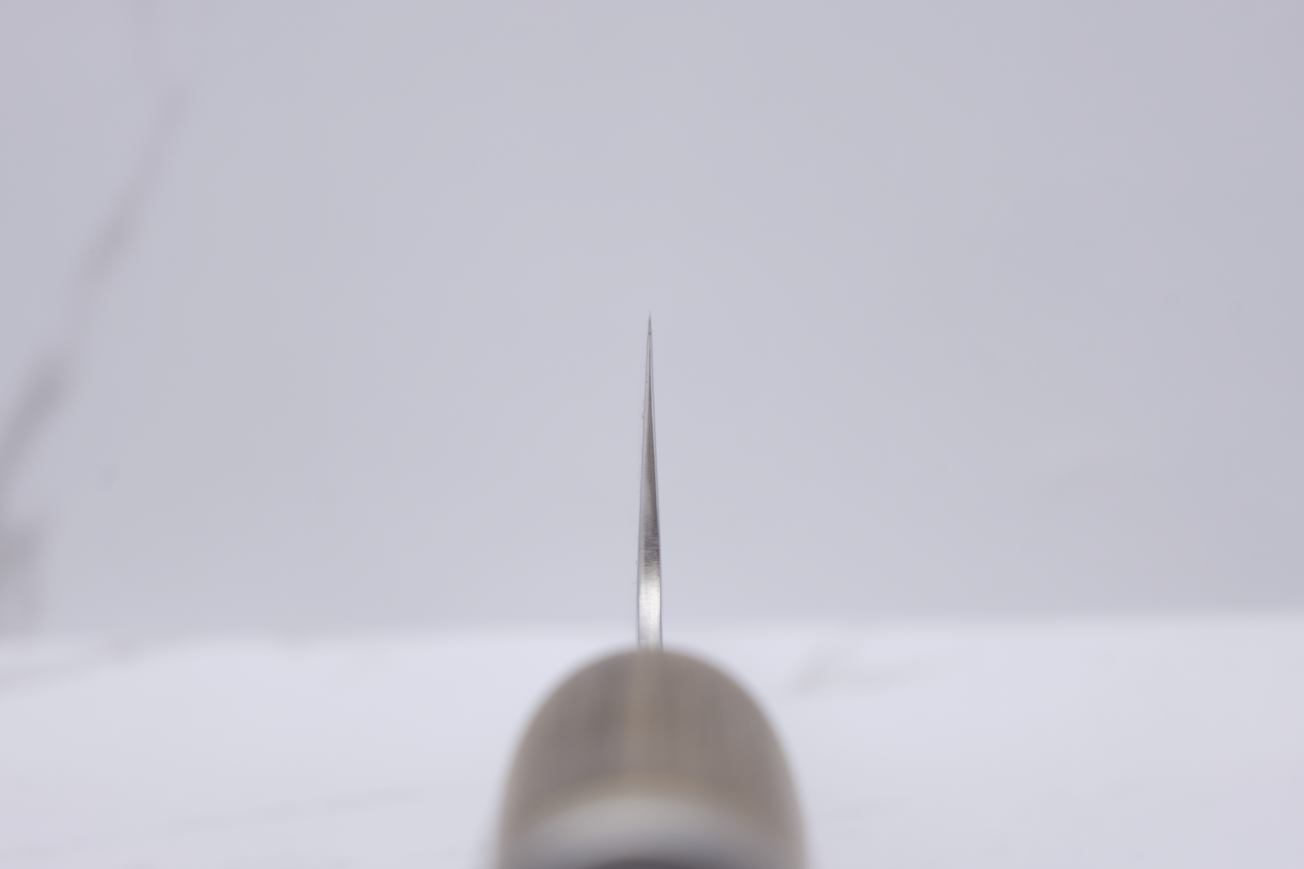 The key is of course the functional ones, but it has nevertheless resulted in a visually impressive knife with many details such as the beaten tsuchime surface on the upper half of the blade, the clear transitions between the 65 layers of steel the knife is forged from. The stock, which is made of American walnut wood, is also pampered.