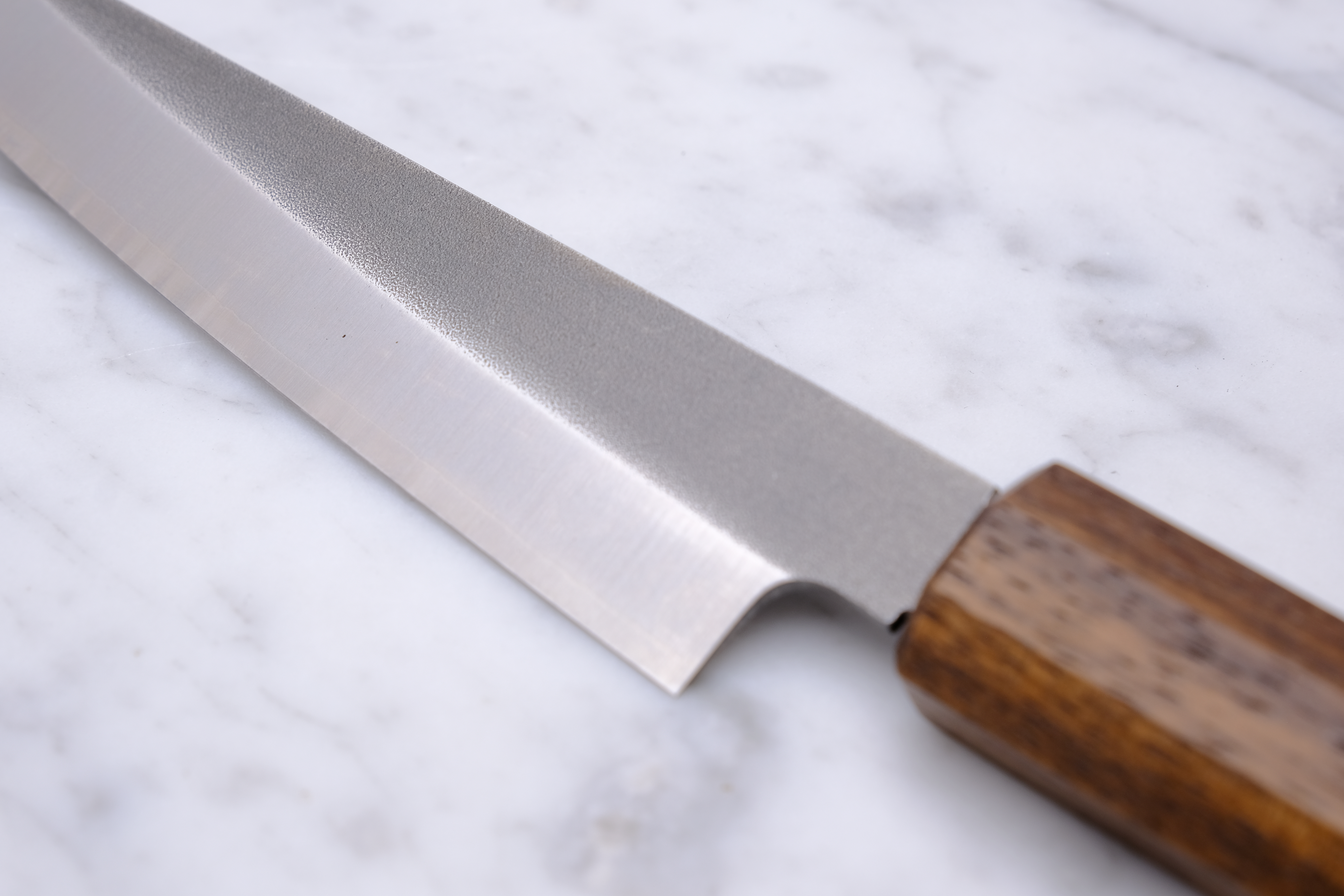 The GS+ series from Konosuke in Sakai is a complete, elegant series of Japanese knives of extremely high quality. The characteristics of these knives are first and foremost the lightness achieved by a blade that is ground quite thin, and add to that a top-class finish.