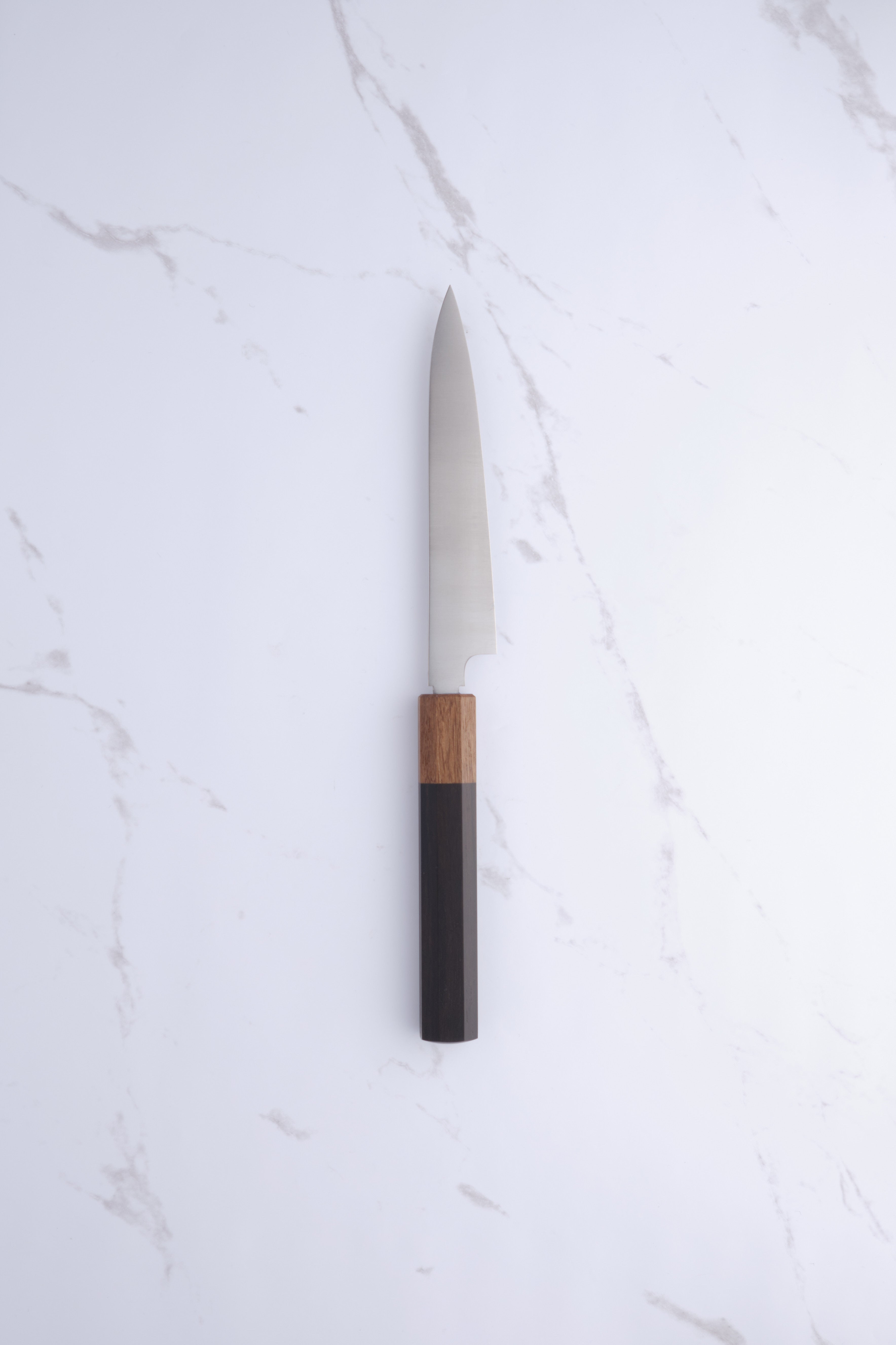 The steel from which the knife is forged is described by Konosuke as semi-stainless, and since it is a "secret" alloy, it is also not elaborated on what the steel is specifically composed of. All we know is that it performs incredibly well in terms of consistent sharpness and clean cut. We recommend normal caution and care in relation to rust prevention on carbon steel knives.