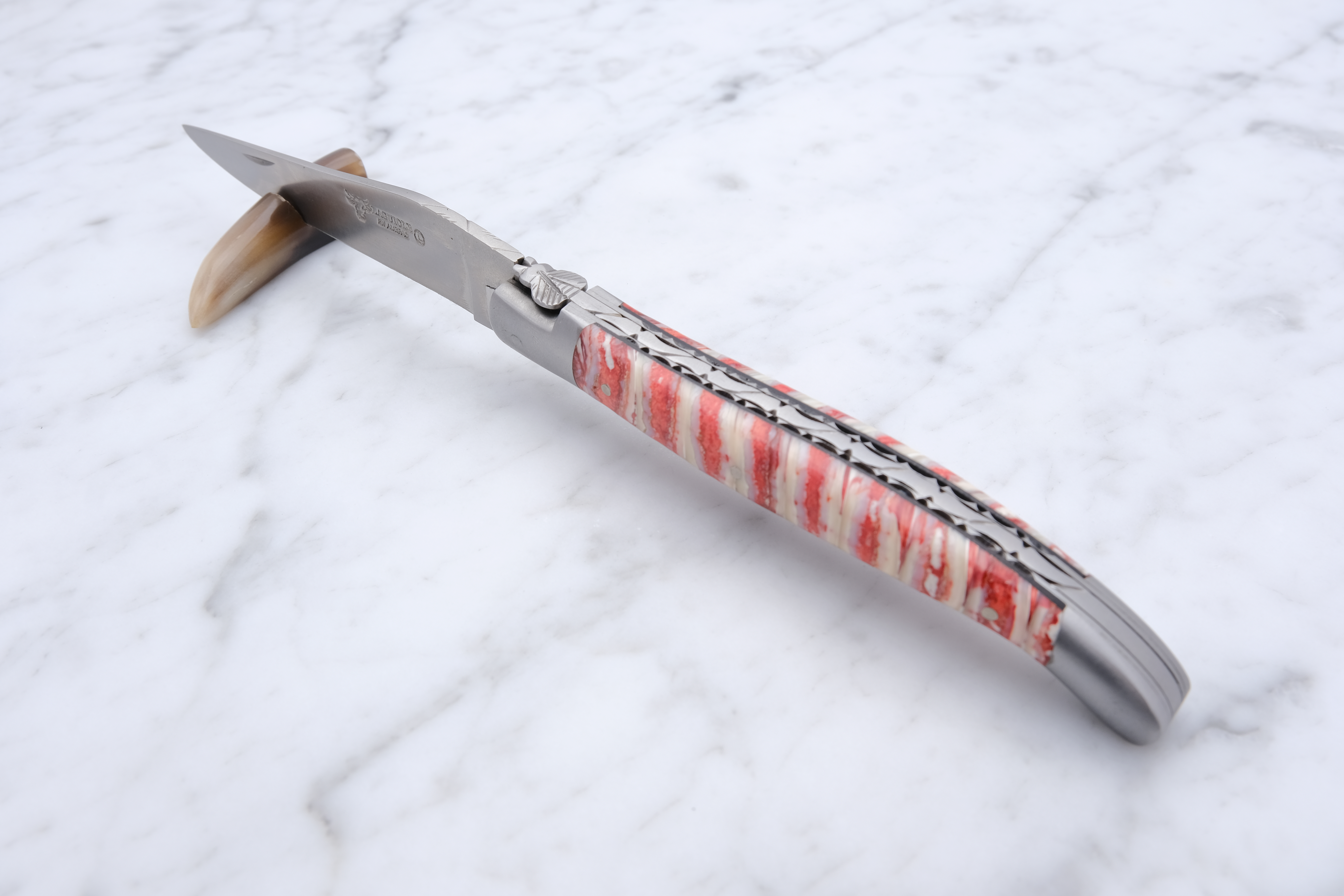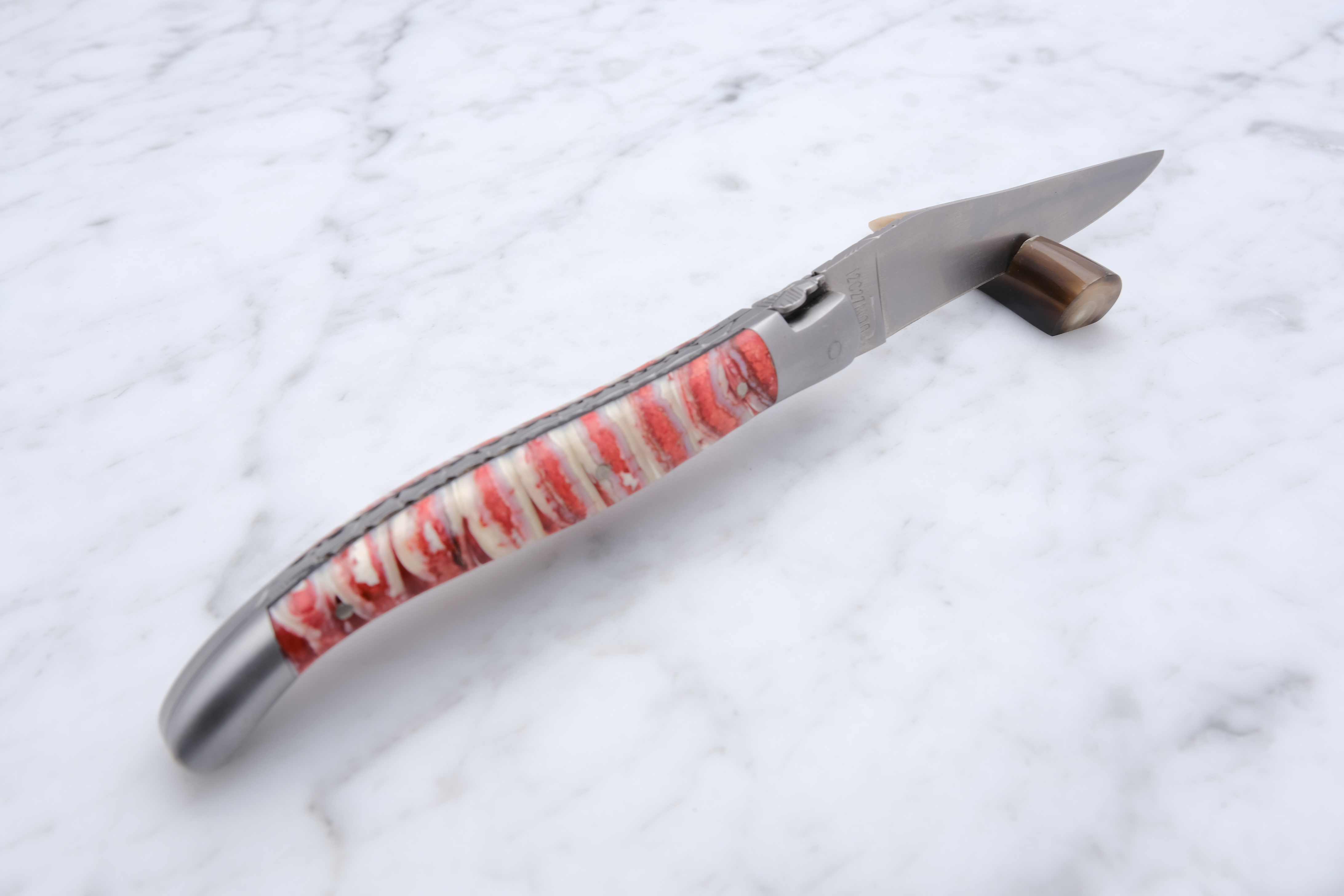 Laguiole Folding knife 12cm. - Stabilized Mammoth molar Red