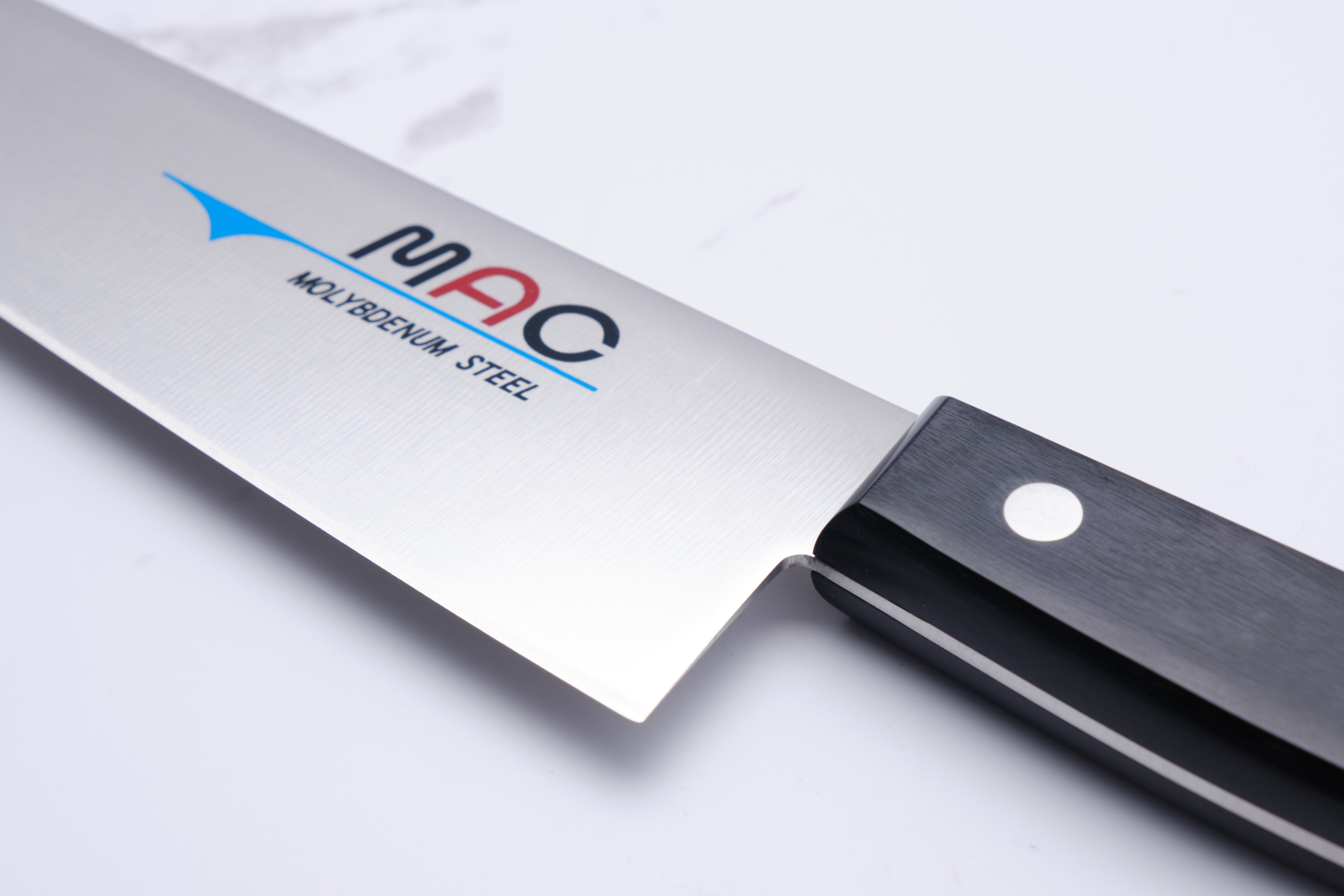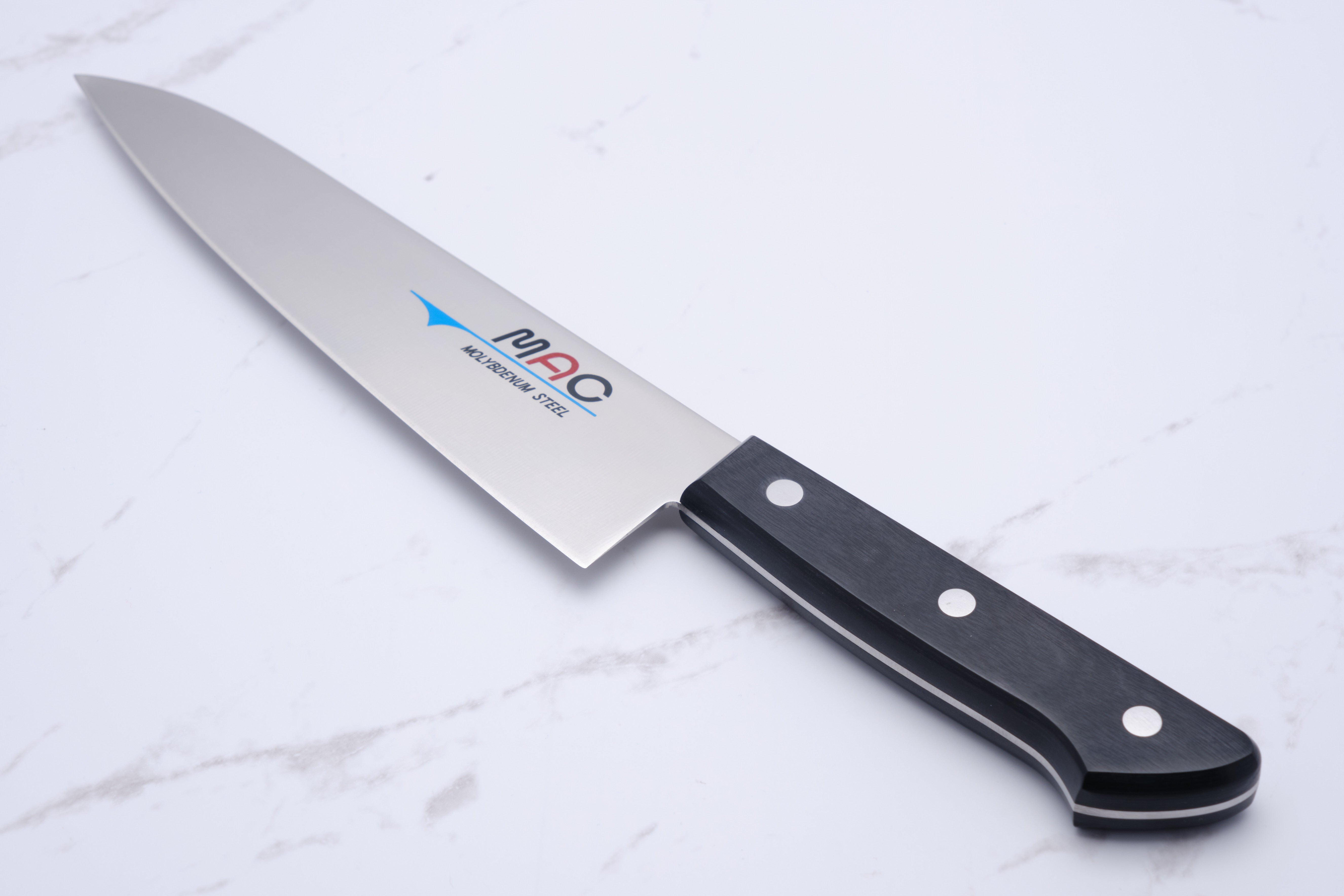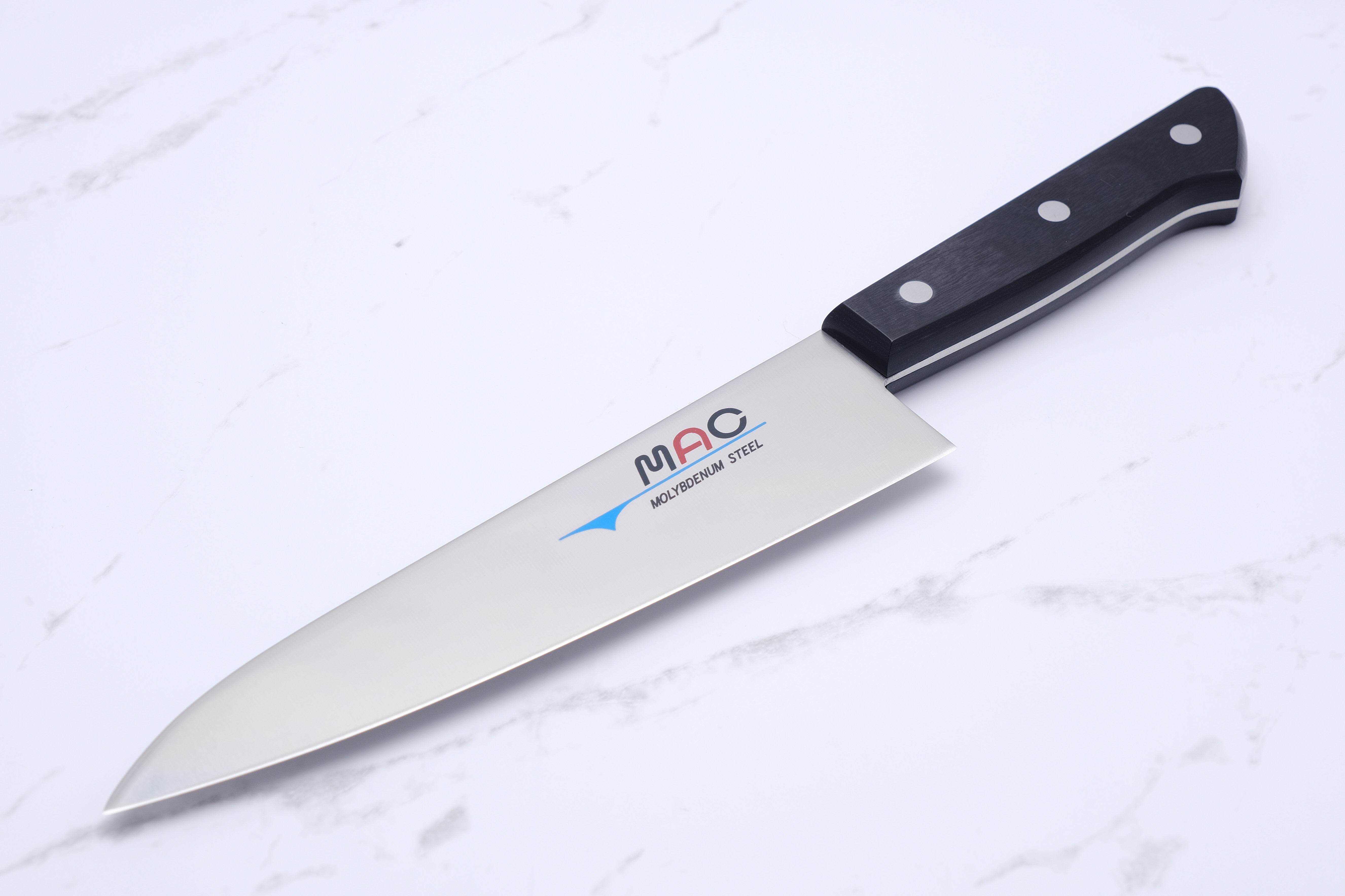 The MAC Chef chef's knife here is quite thin, which means that it easily cuts through most items. It also has a completely respectable hardness of 59 HRC, which is certainly at or above the level of most competitors in this class. If you simultaneously maintain the knife with a ceramic ironing steel , you will have a good knife for many years.