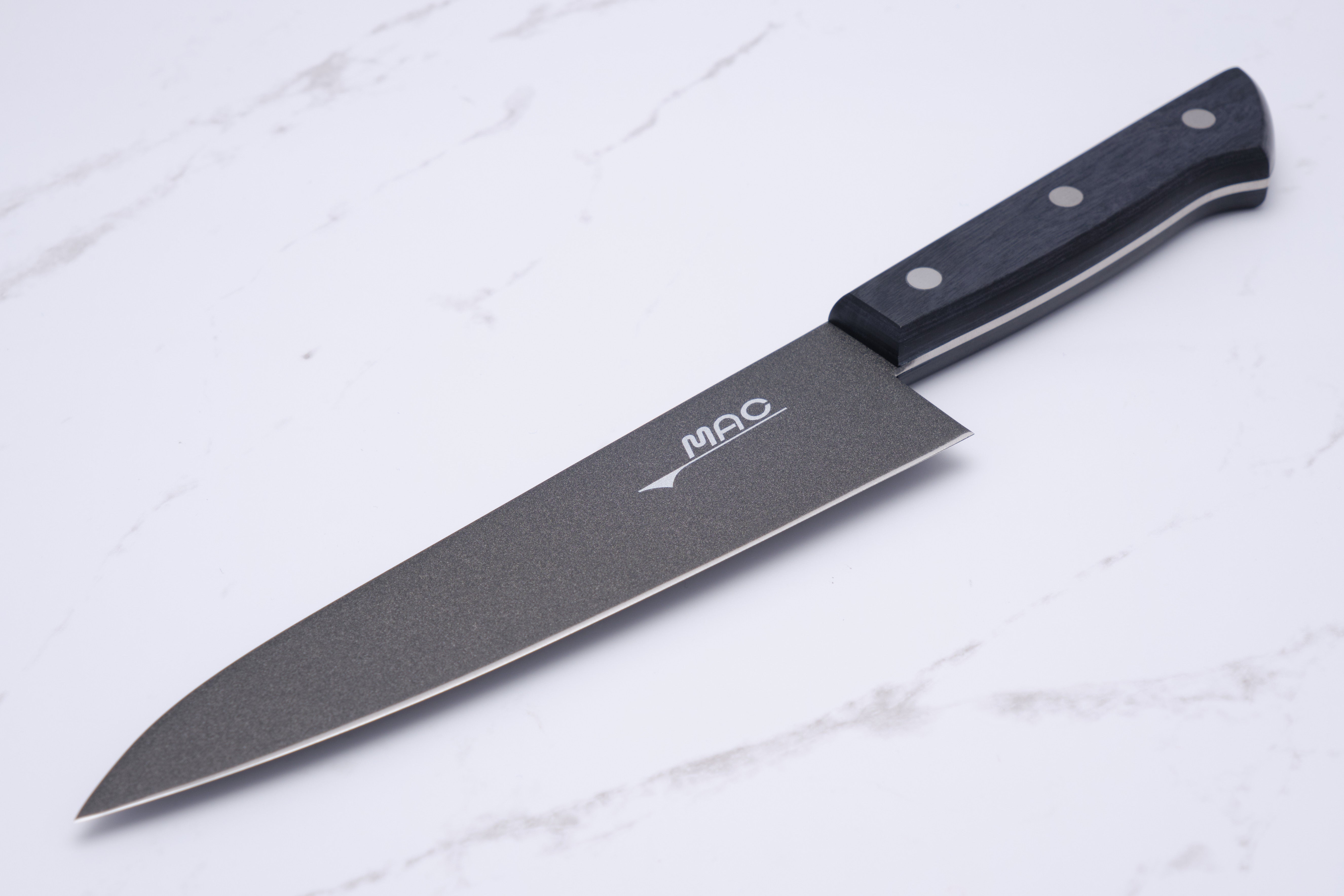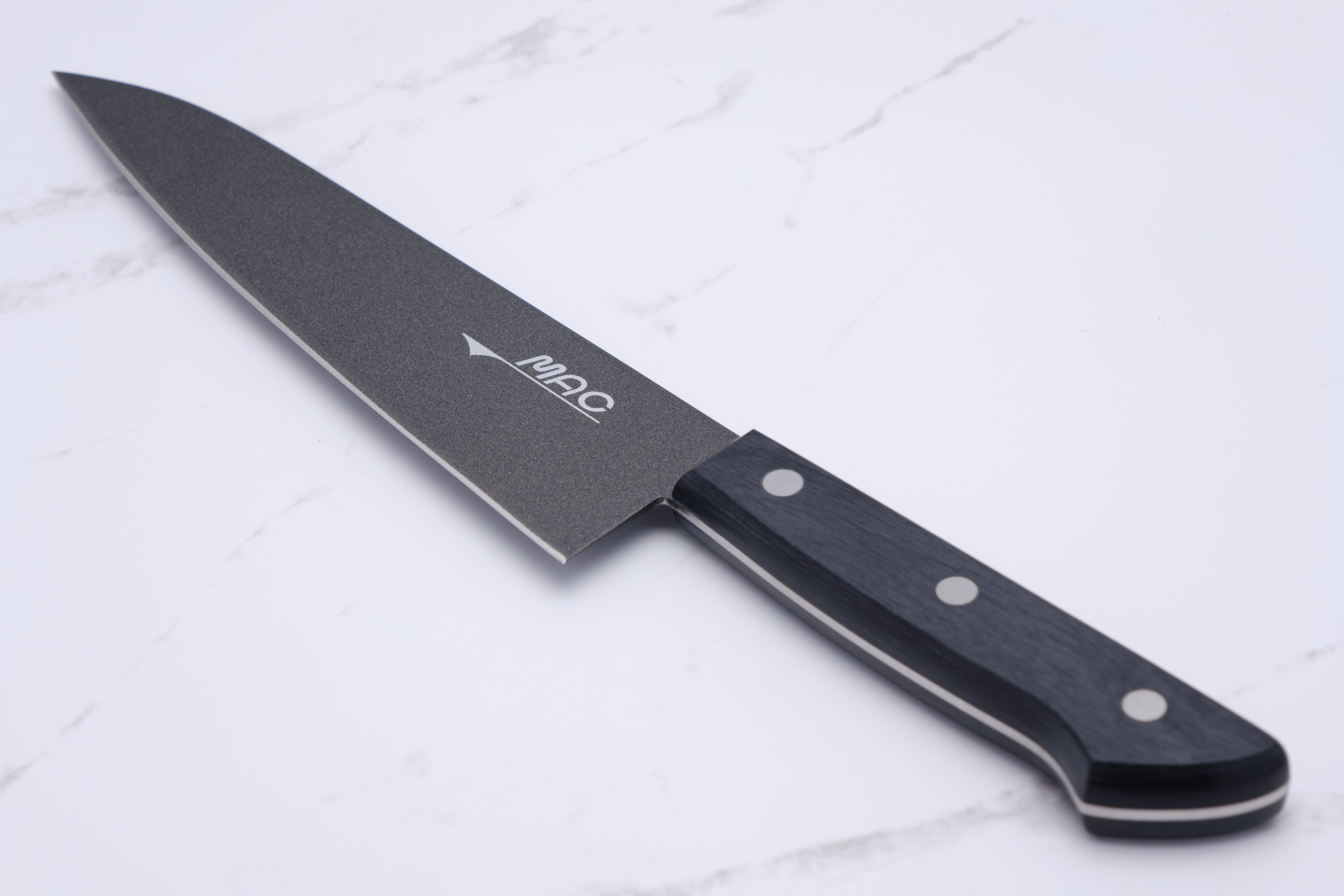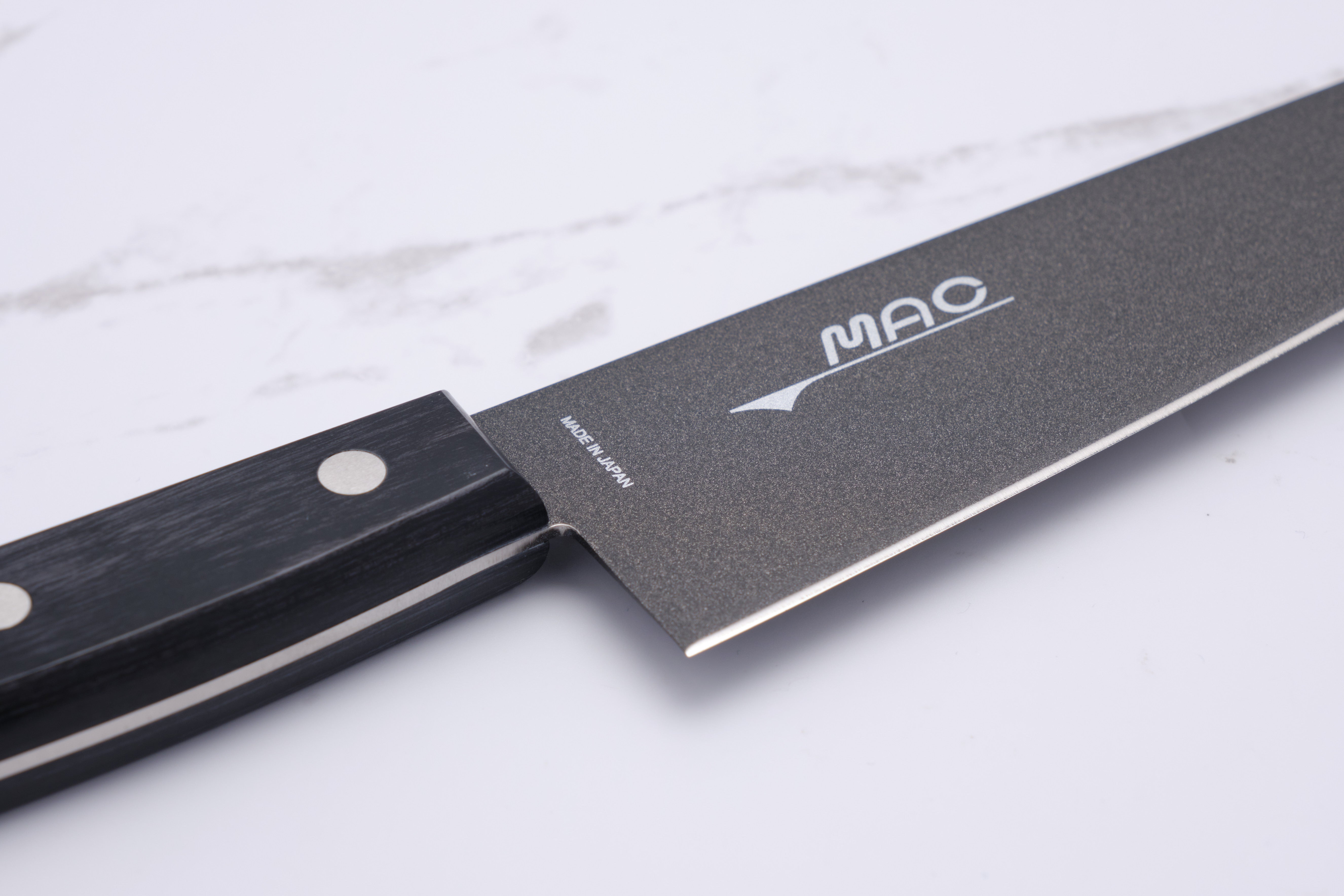 The MAC Teflon 180 mm Chef's Knife is an exceptional chef's knife designed to make cooking a breeze. This knife is ideal for sushi chefs as it is coated with Teflon, which prevents rice and other ingredients from sticking to the blade. With a hardness of 60 HRC, it ensures sharpness and durability, making it an indispensable tool in any kitchen. Whether you are cutting vegetables, meat or fish, this knife will deliver precise and smooth cuts, making cooking both faster and more efficient.