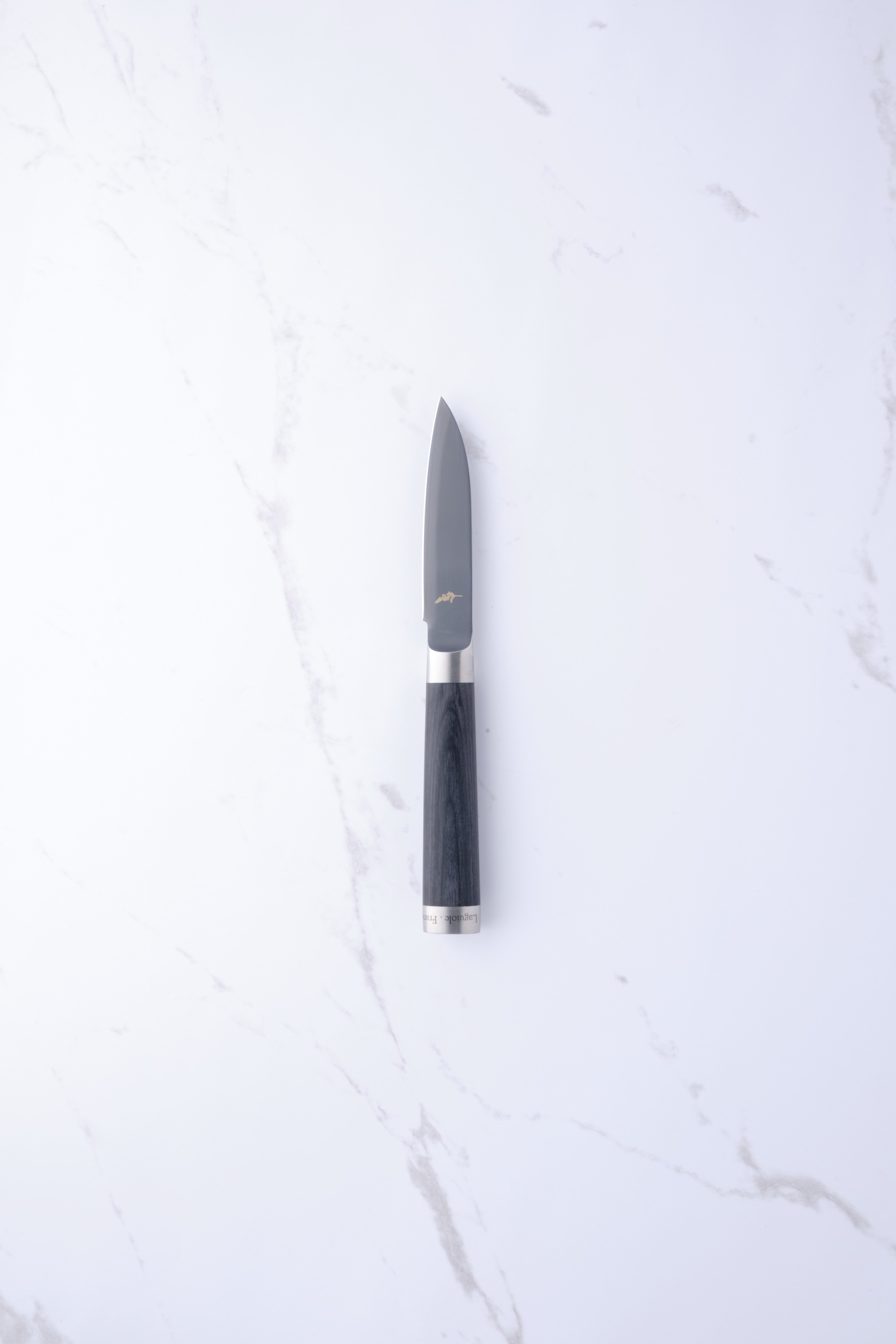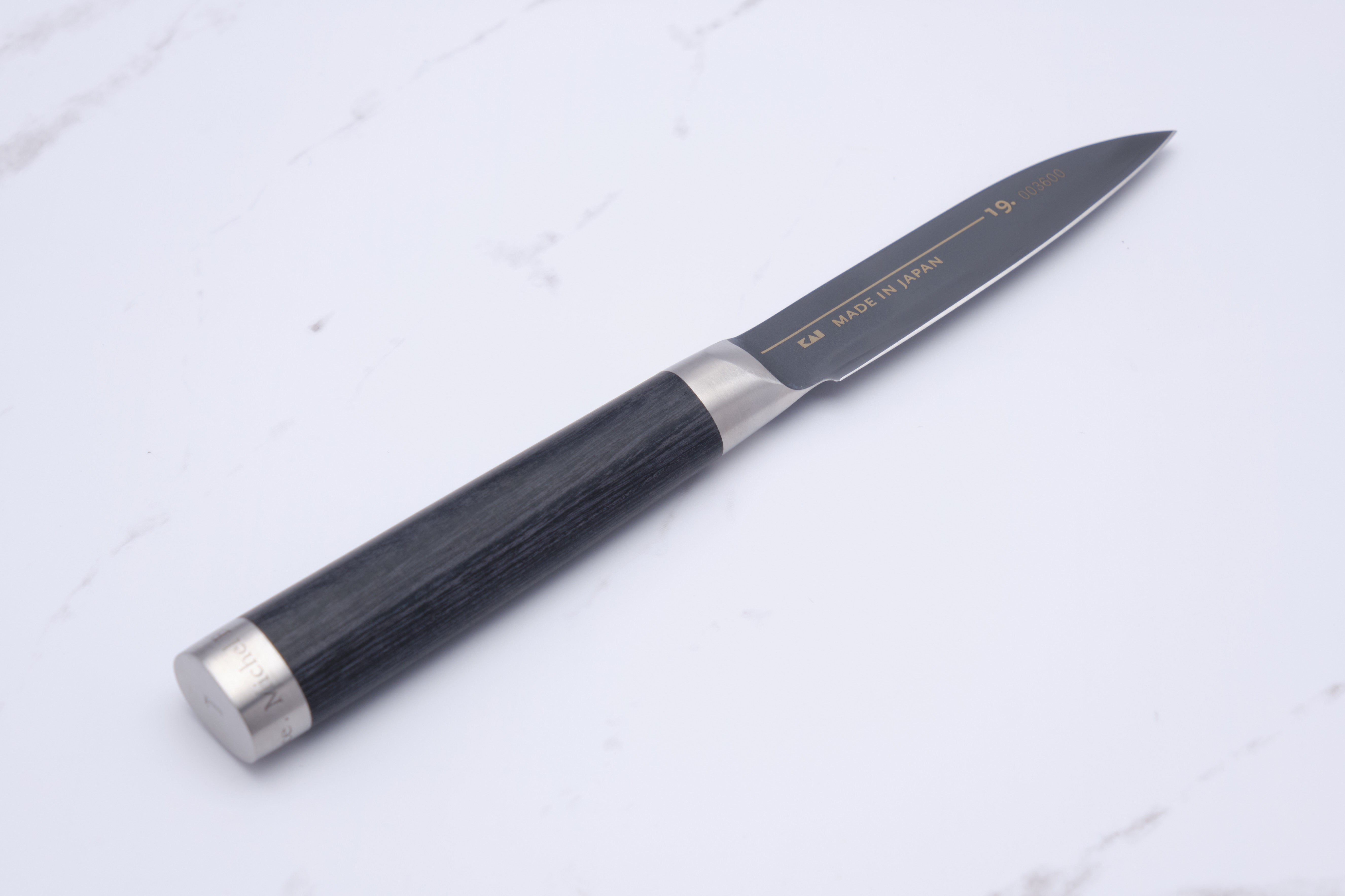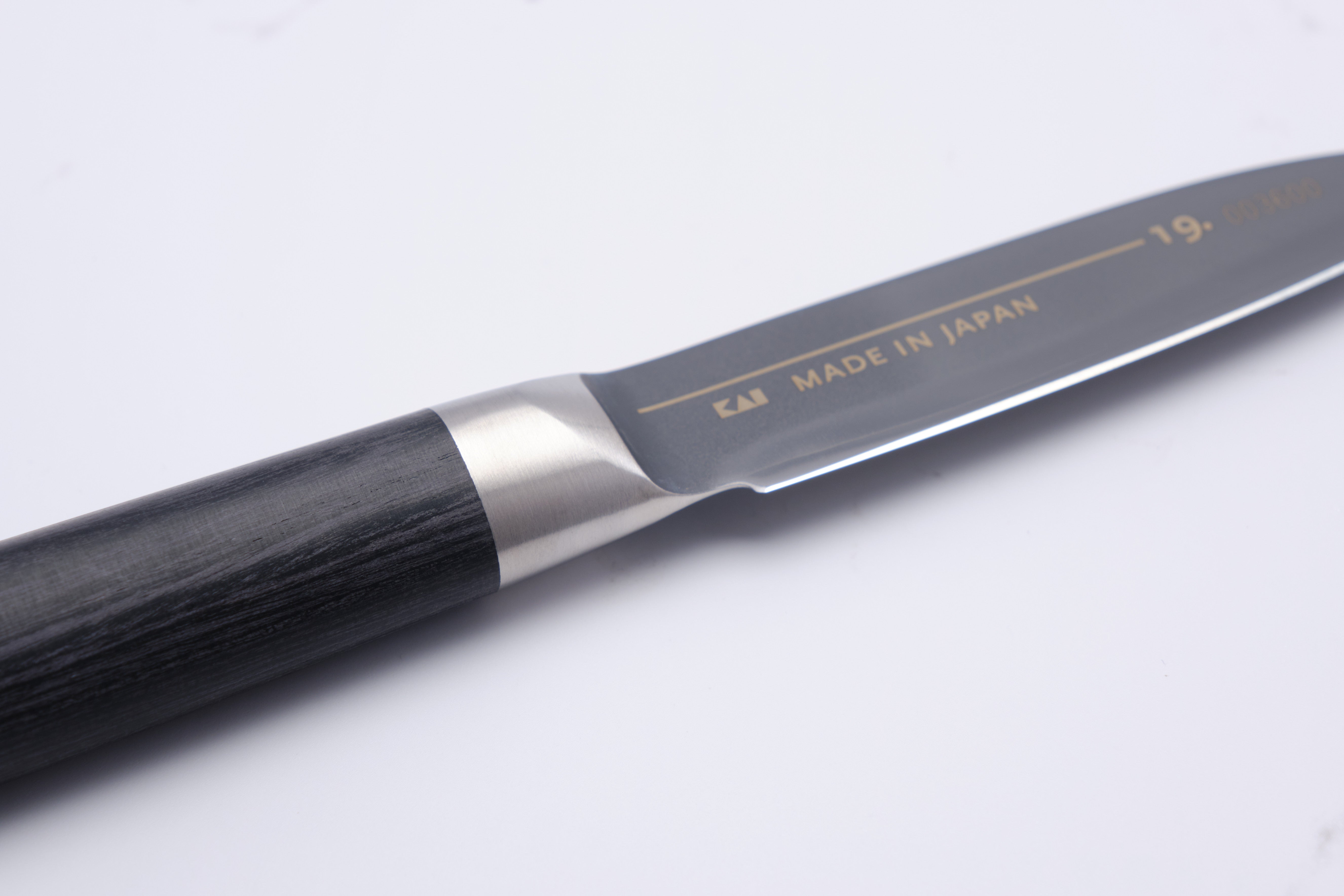 The Michel Bras 80 mm Herb Knife #1 from KAI is an exceptional herb knife, designed in collaboration with renowned French chef Michel Bras. This knife combines traditional Japanese craftsmanship with modern design, resulting in a perfect balance and precision for all your herb needs. With a core of VG-10 steel and a titanium coating, the knife offers both durability and sharpness. The included numbered magnetic sheath ensures that your knife is always protected and ready to use. Each knife comes wrapped in handmade Japanese paper, making it an ideal gift for professional chefs and food enthusiasts alike.