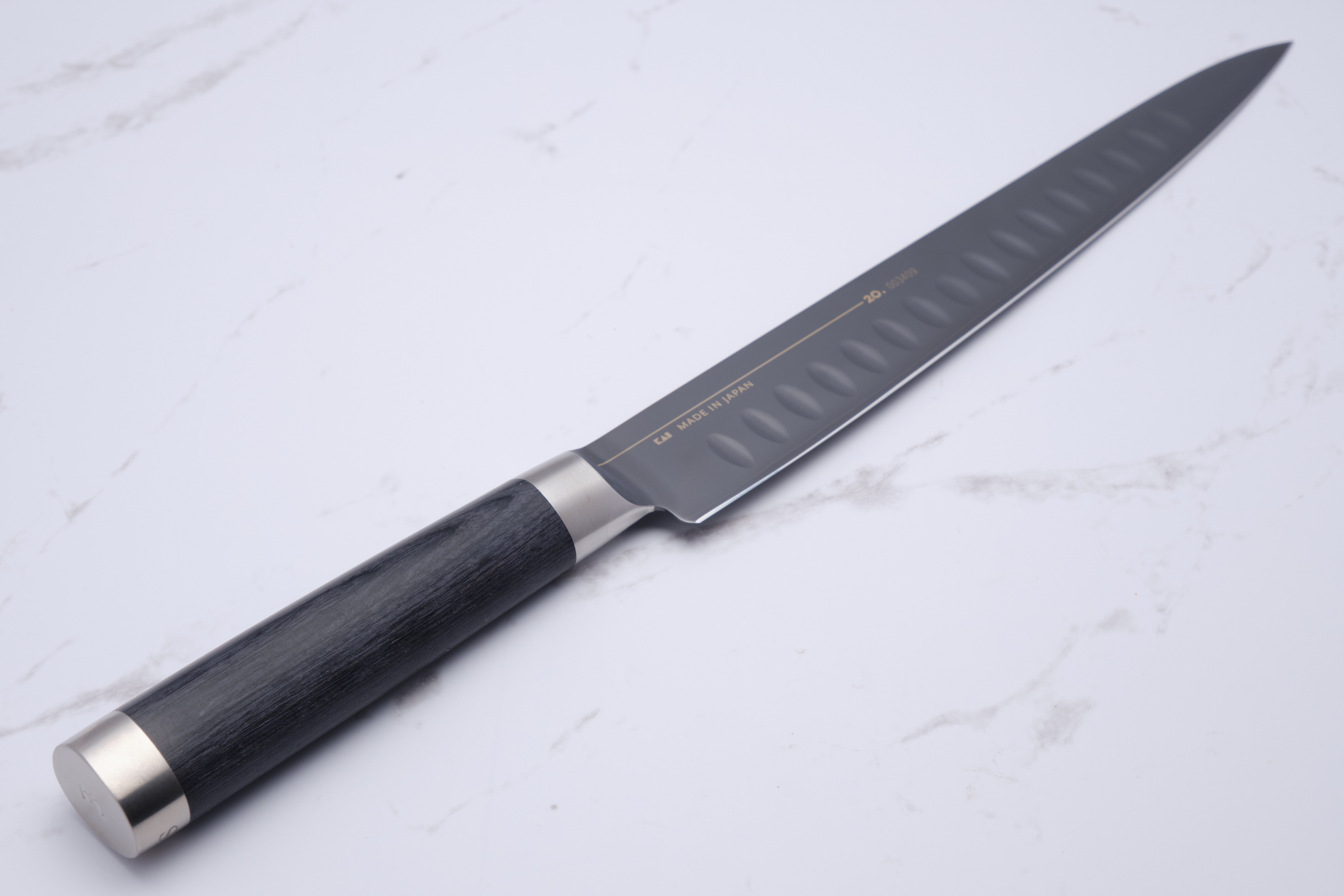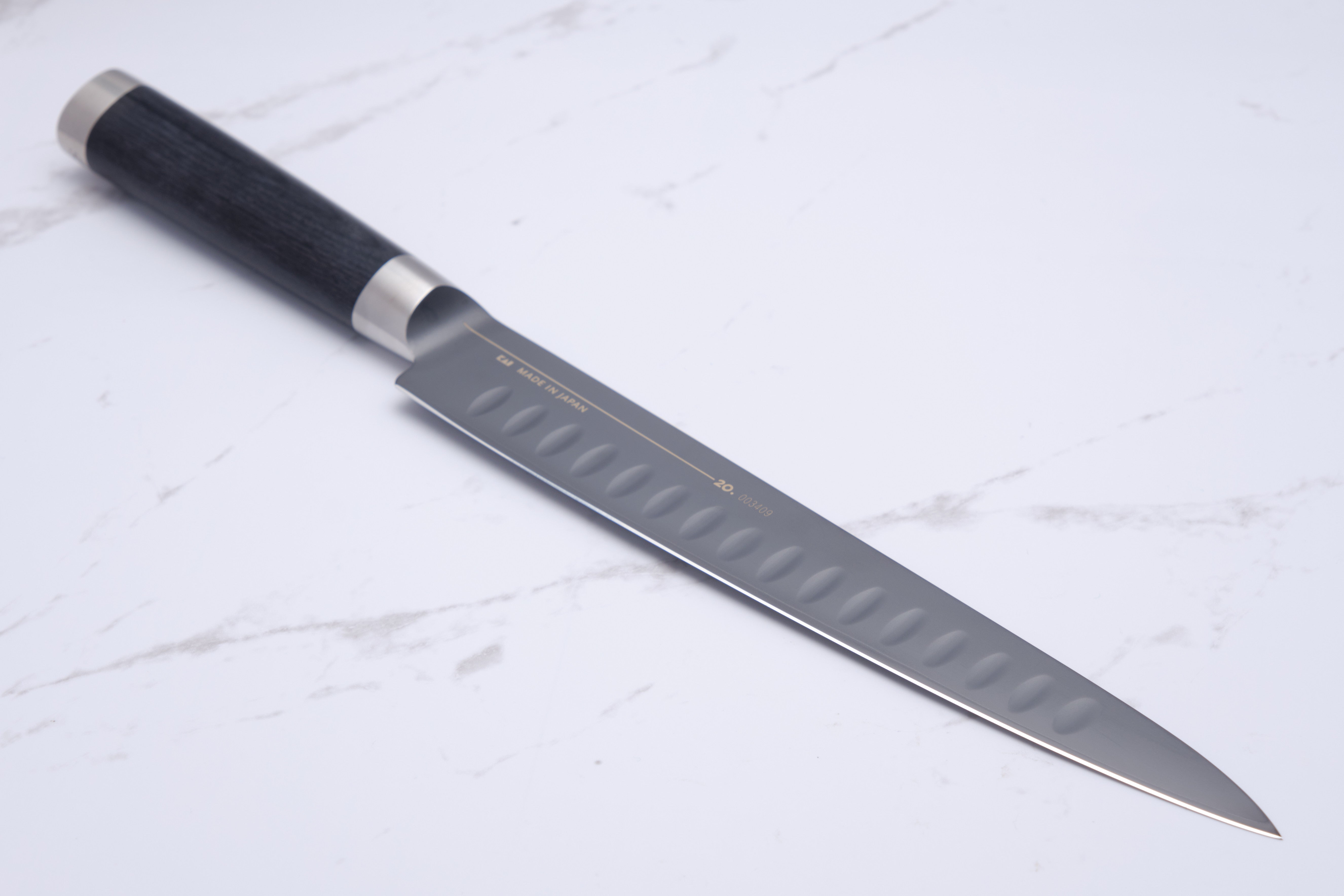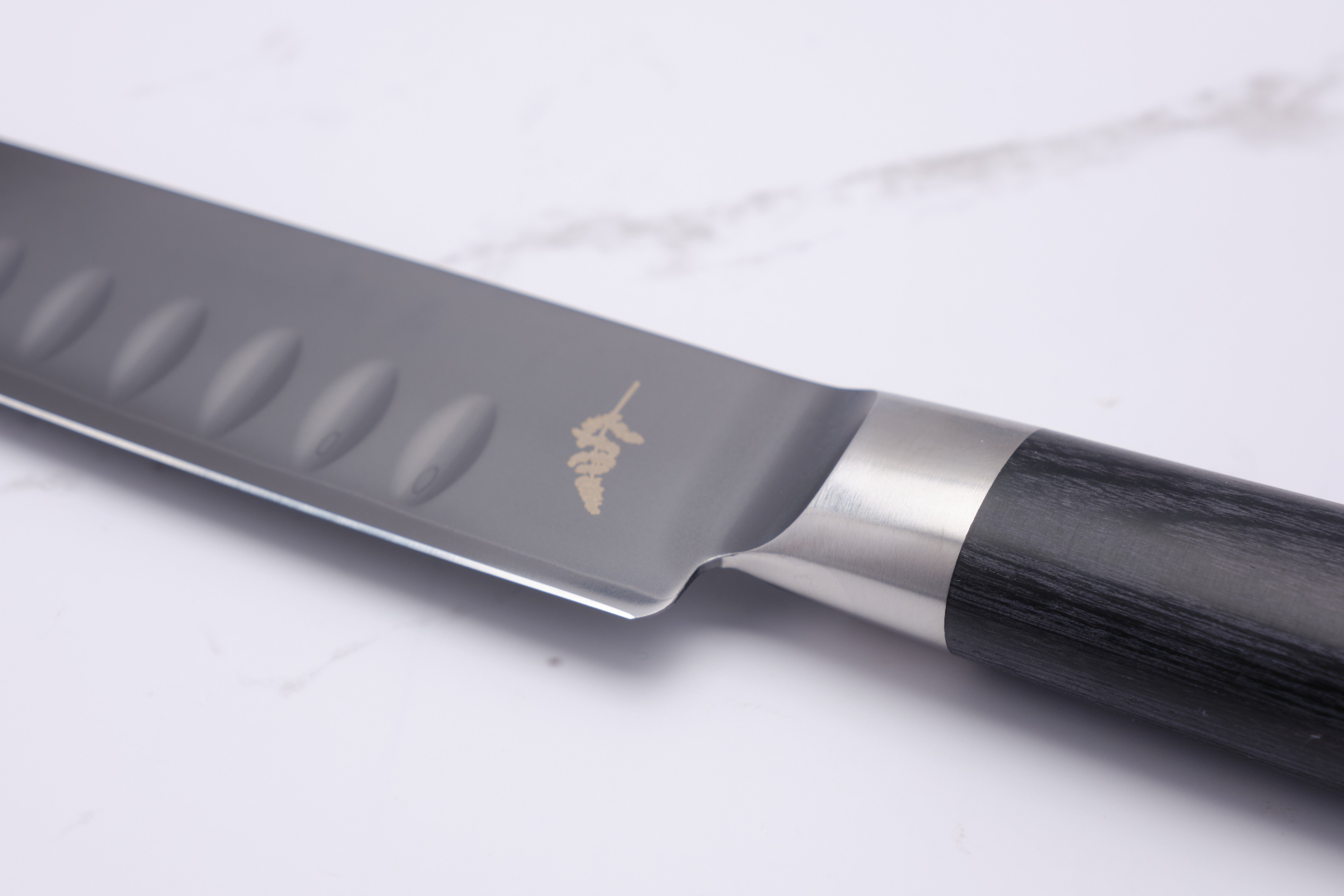 The knives in this series are made in collaboration between KAI Shun and the French chef Michel Bras. Each knife is balanced for its task and each knife is wrapped in handmade Japanese paper upon receipt. A sharpening guide and magnetic sheath are included for each knife, each knife has a number, the same number has the sheath.