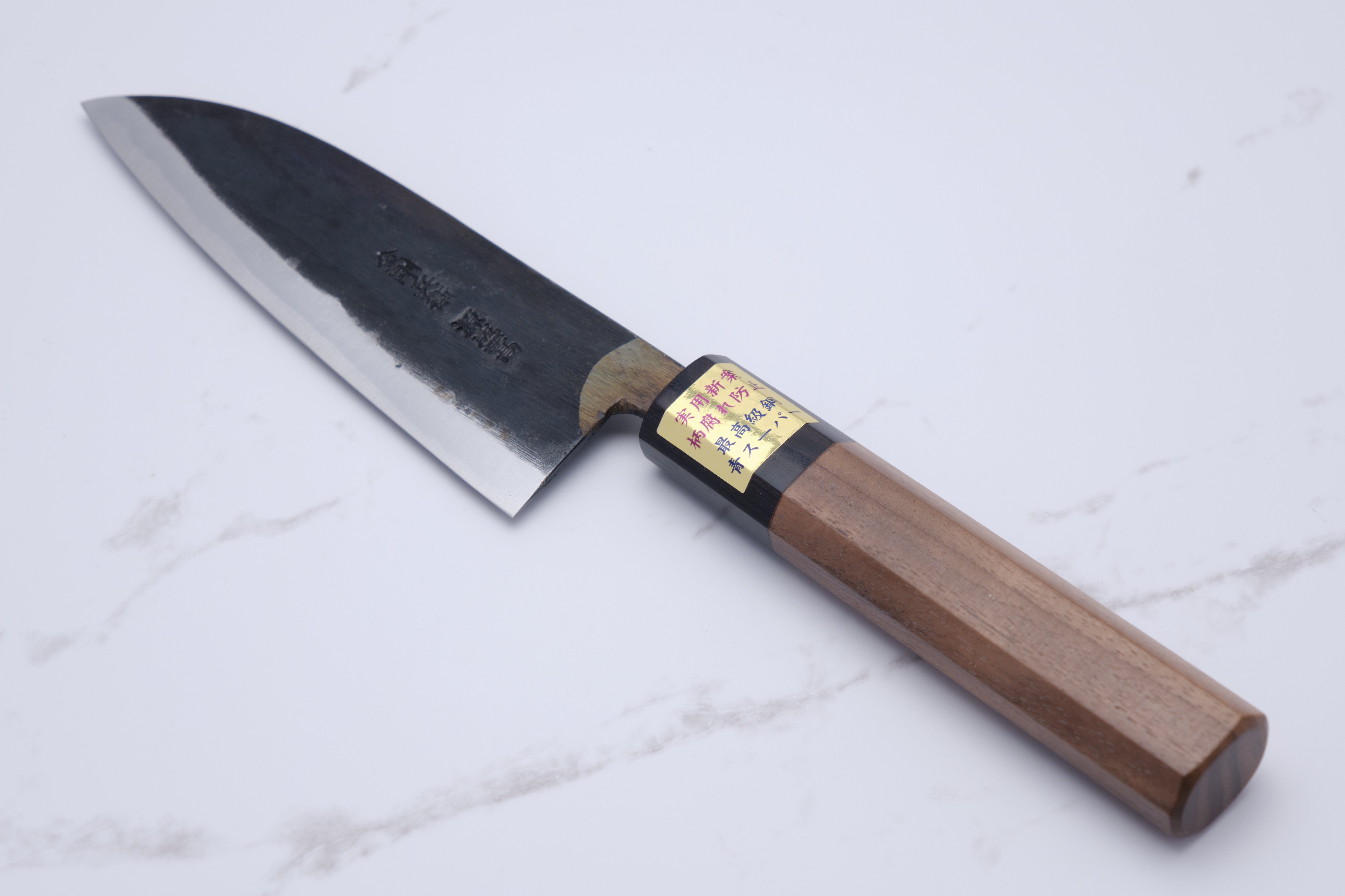Santoku with a 13 cm blade in three layers with a core of aogami-super (blue-super)