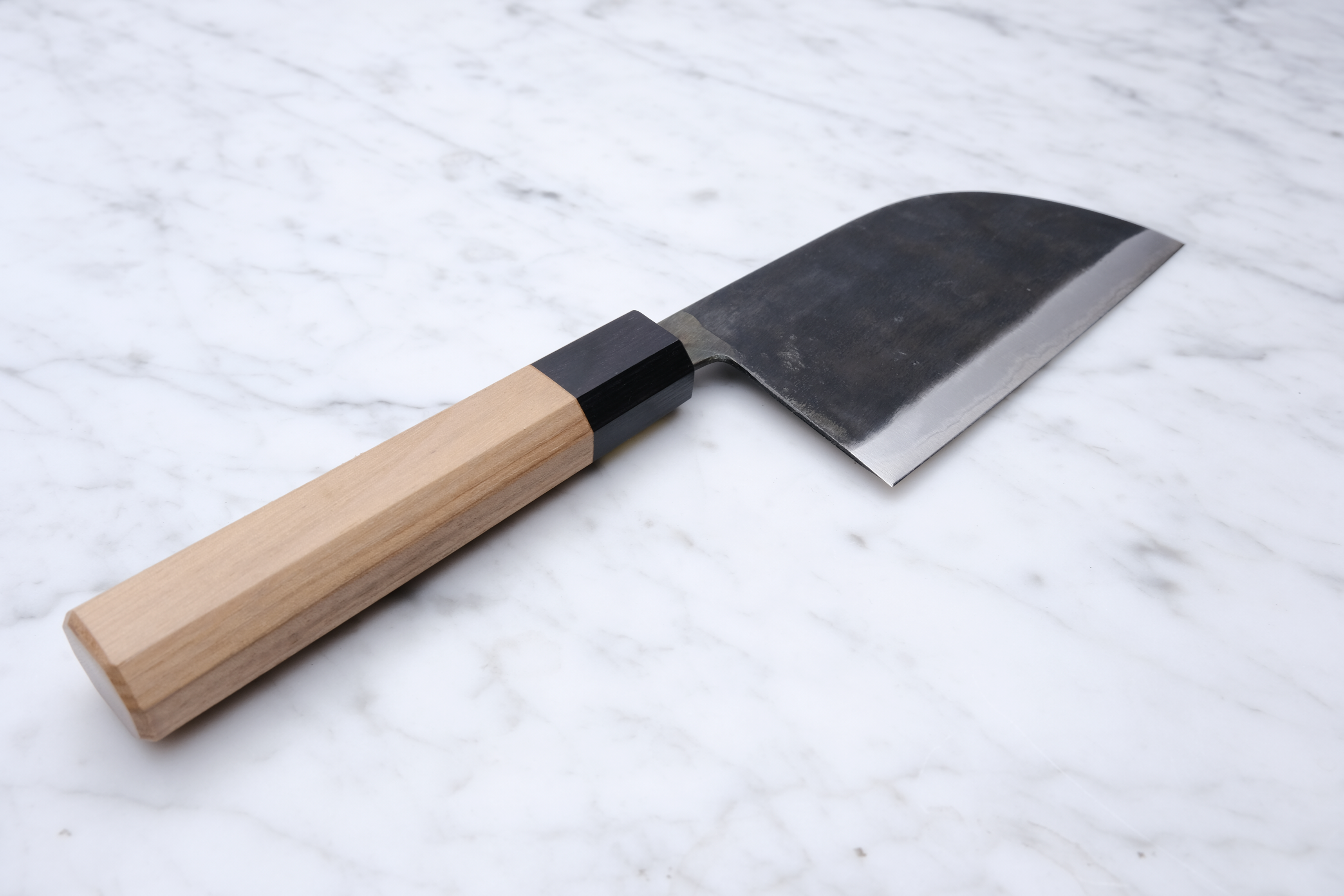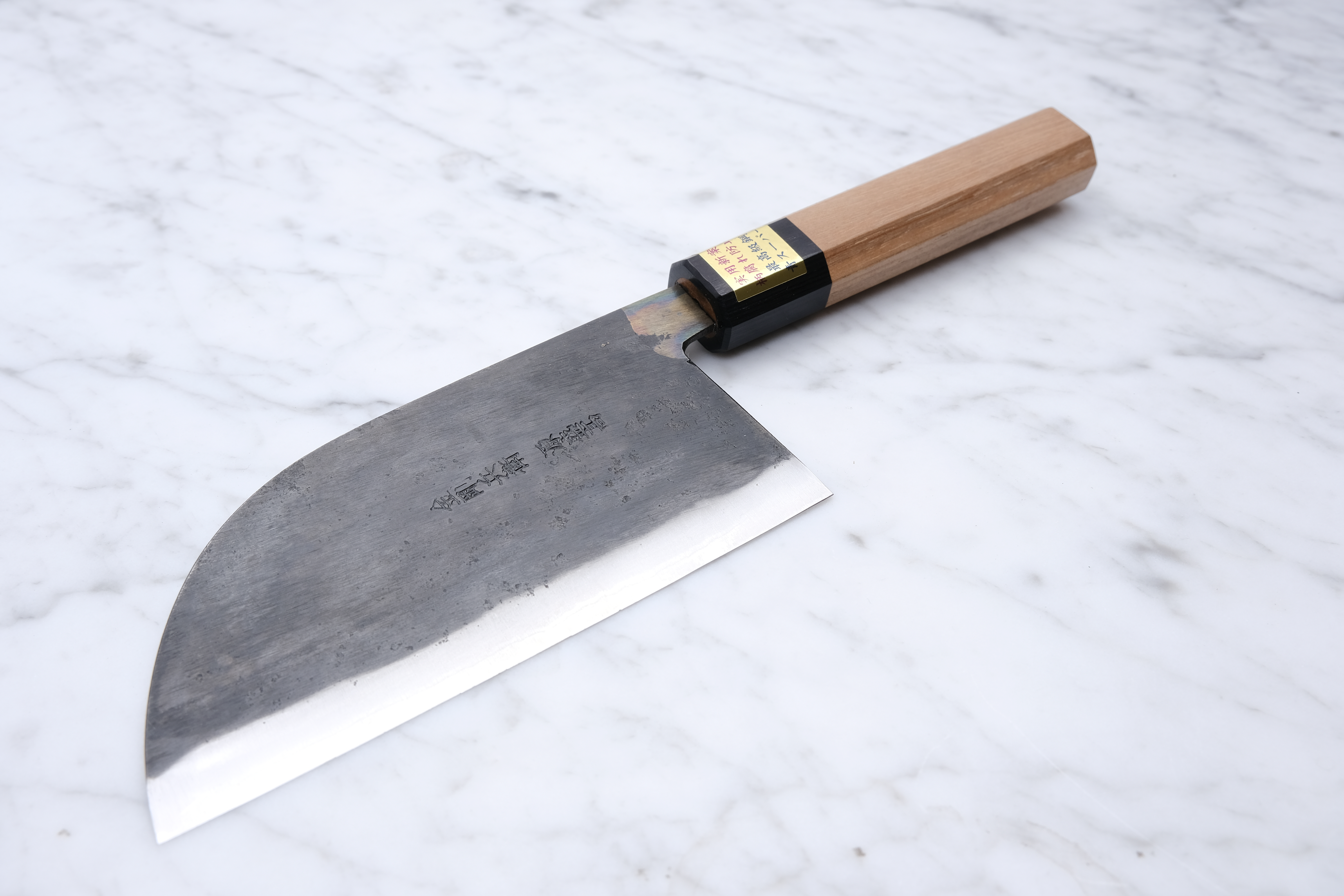 It should be noted that knives from Moritaka rust very easily. This is intended, so one should expect it. Maintenance is therefore extremely important, and one should always rinse the blade of the knife immediately after use.