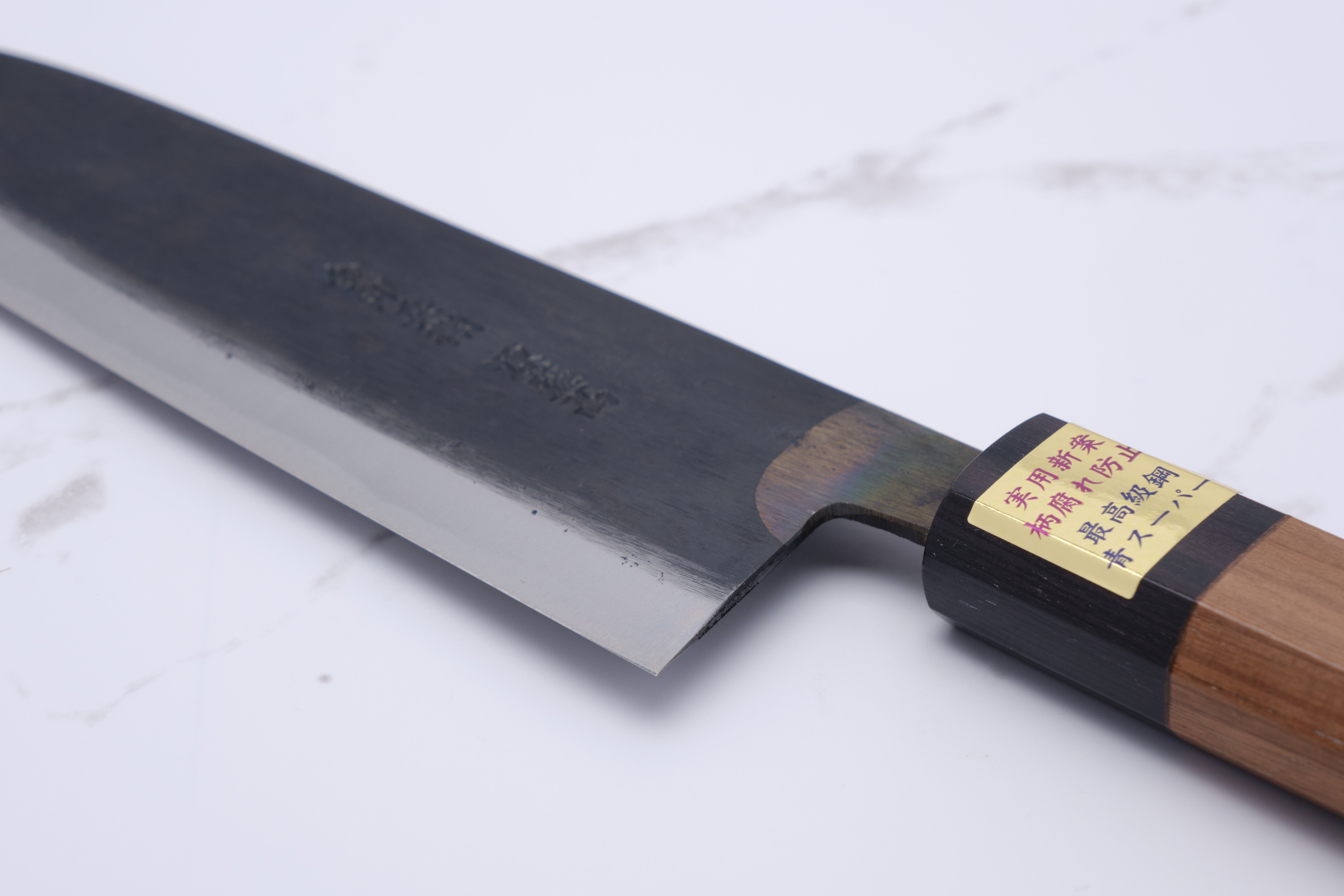 Moritaka in Kumamoto is one of the world's absolute oldest knifesmiths, whose knives have today become iconic and very easily recognizable for their rustic design characterized by the clearly hand-forged blade with a dark kurouchi surface.