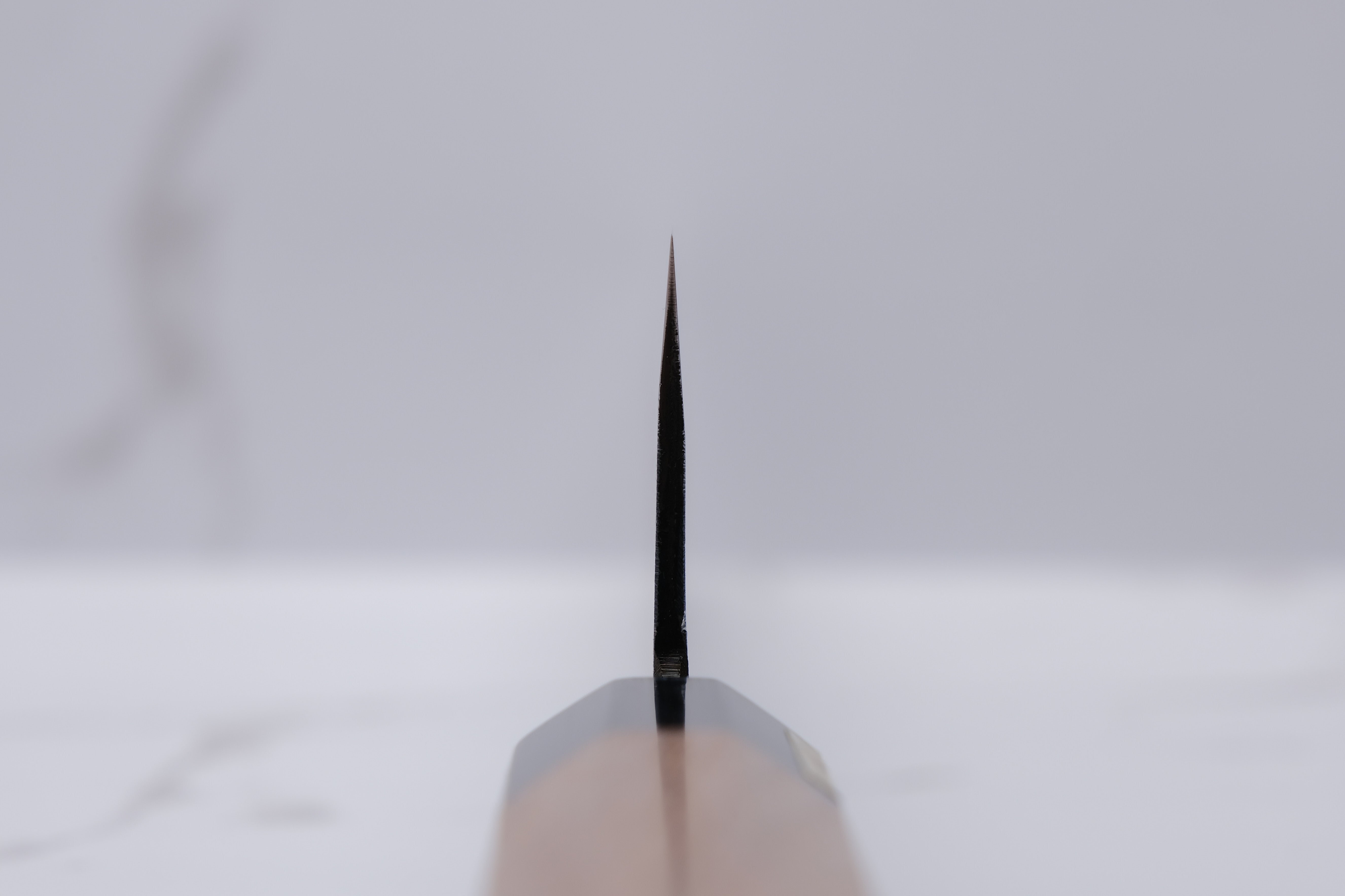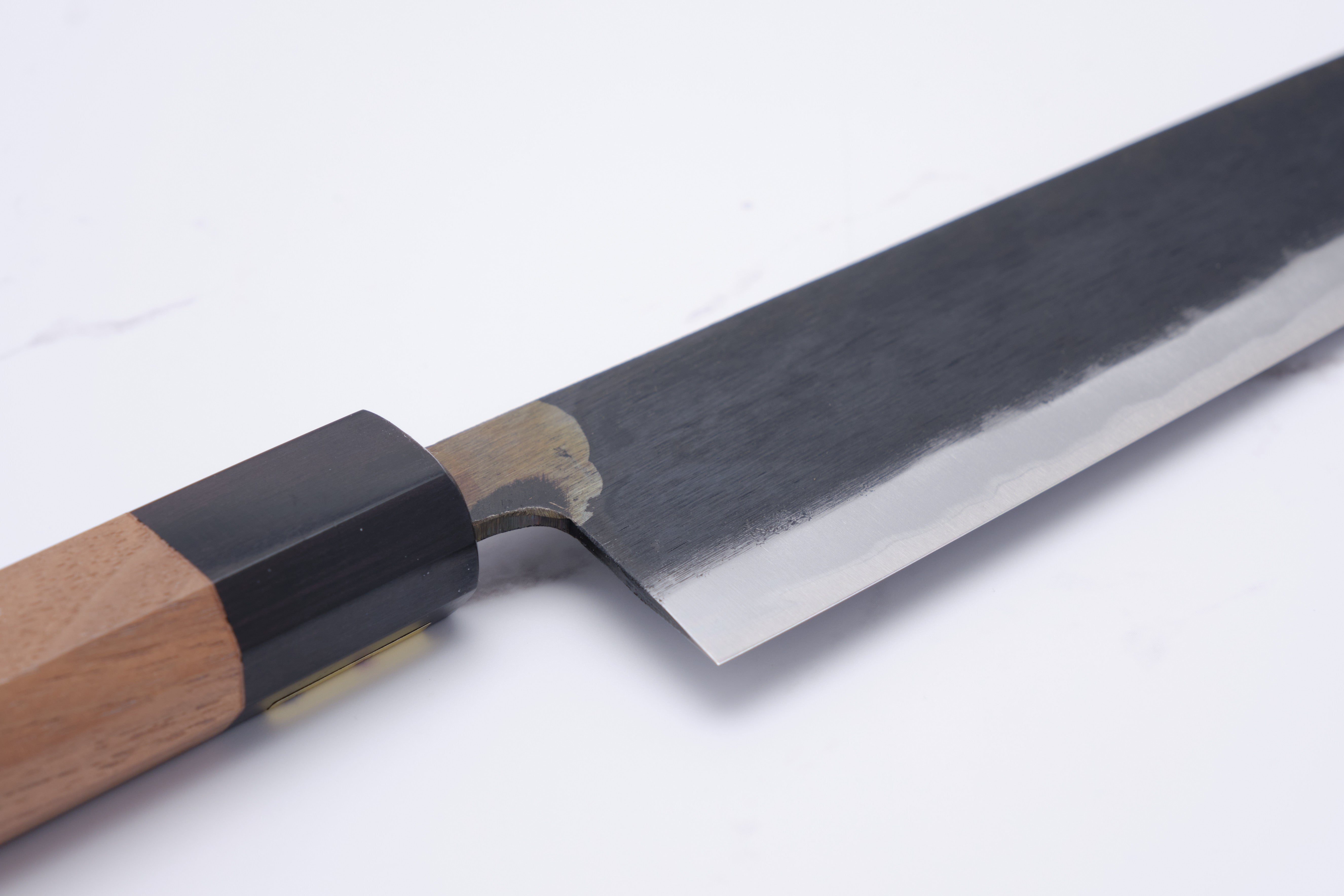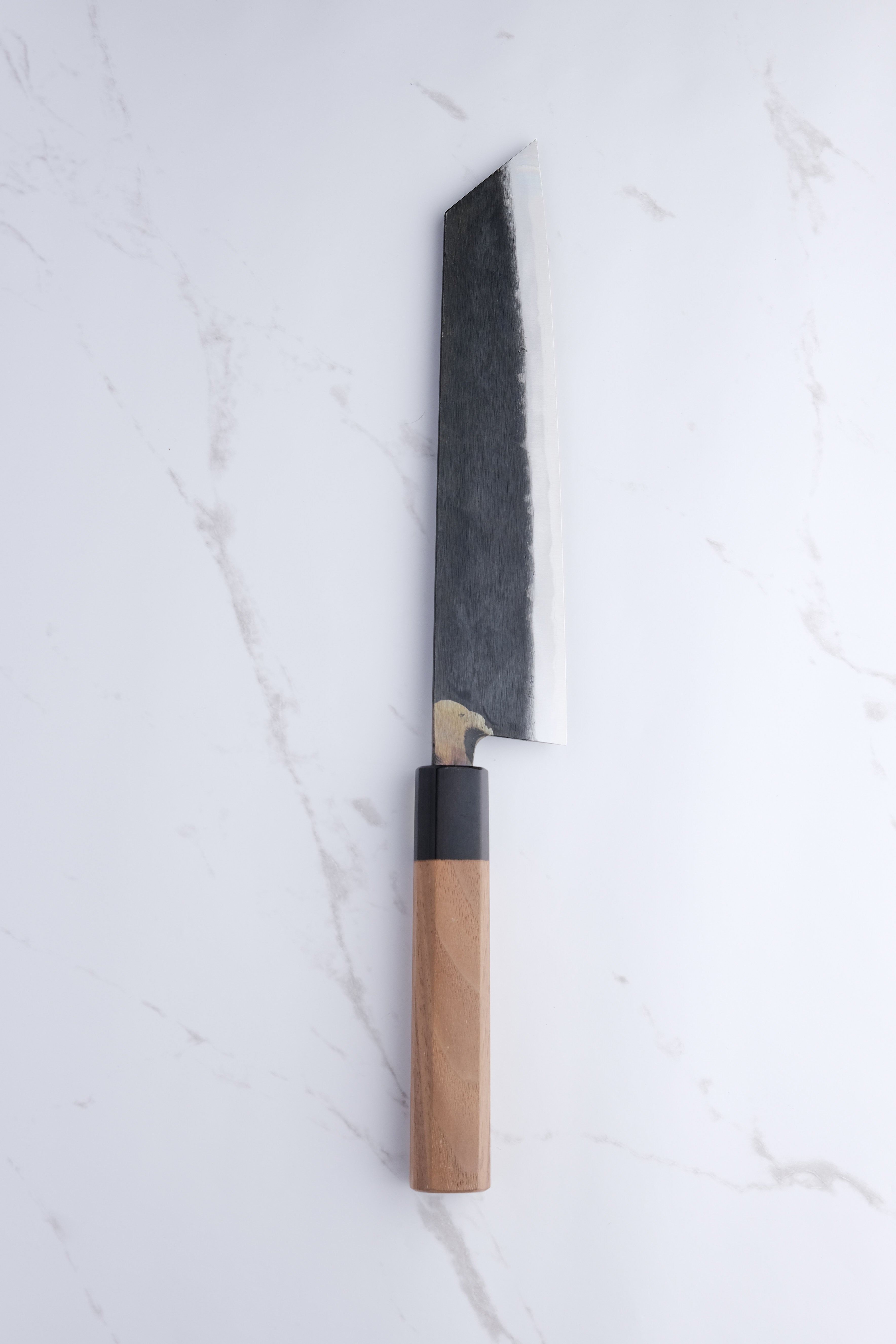 You should be aware that knives from Moritaka rust very easily. That's what they're meant to do, so that's to be expected. Maintenance is therefore extremely important, and you should e.g. always rinse the blade of your knife immediately after cutting with it.