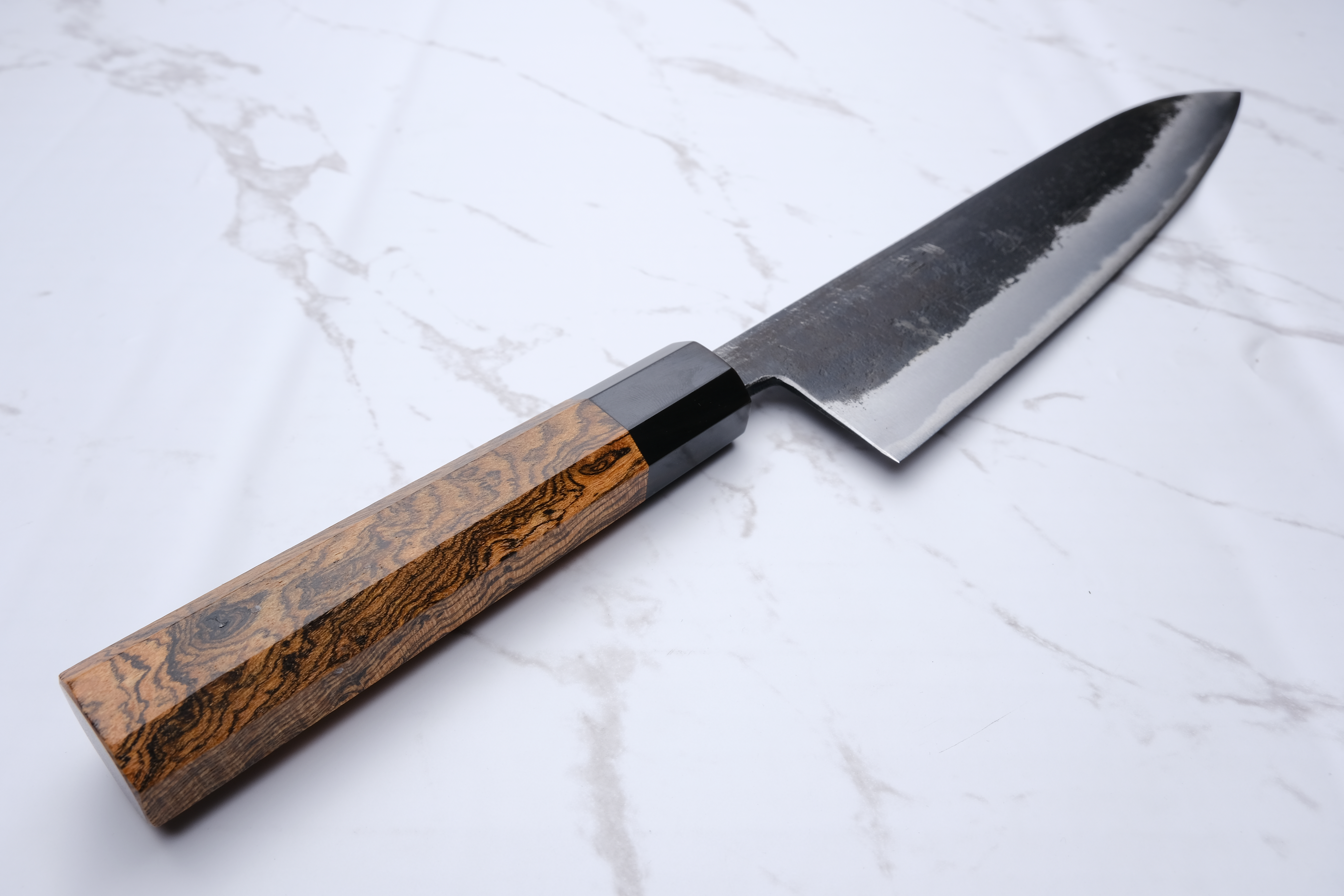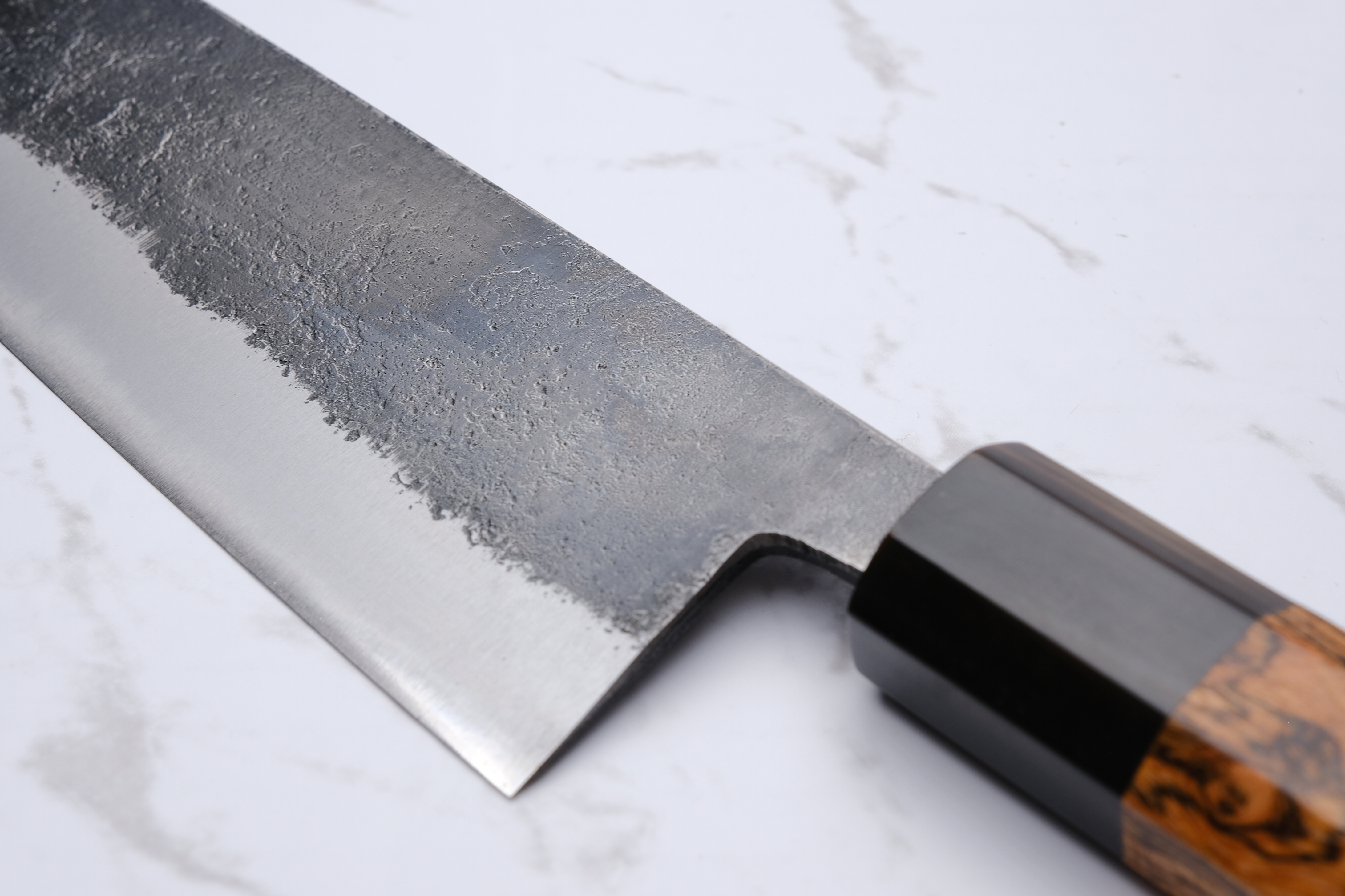 The fit and finish of the knives is rustic as it is important for Kouichi-san that the knives can withstand use, hence the hardening and sharpening are prioritized highly.