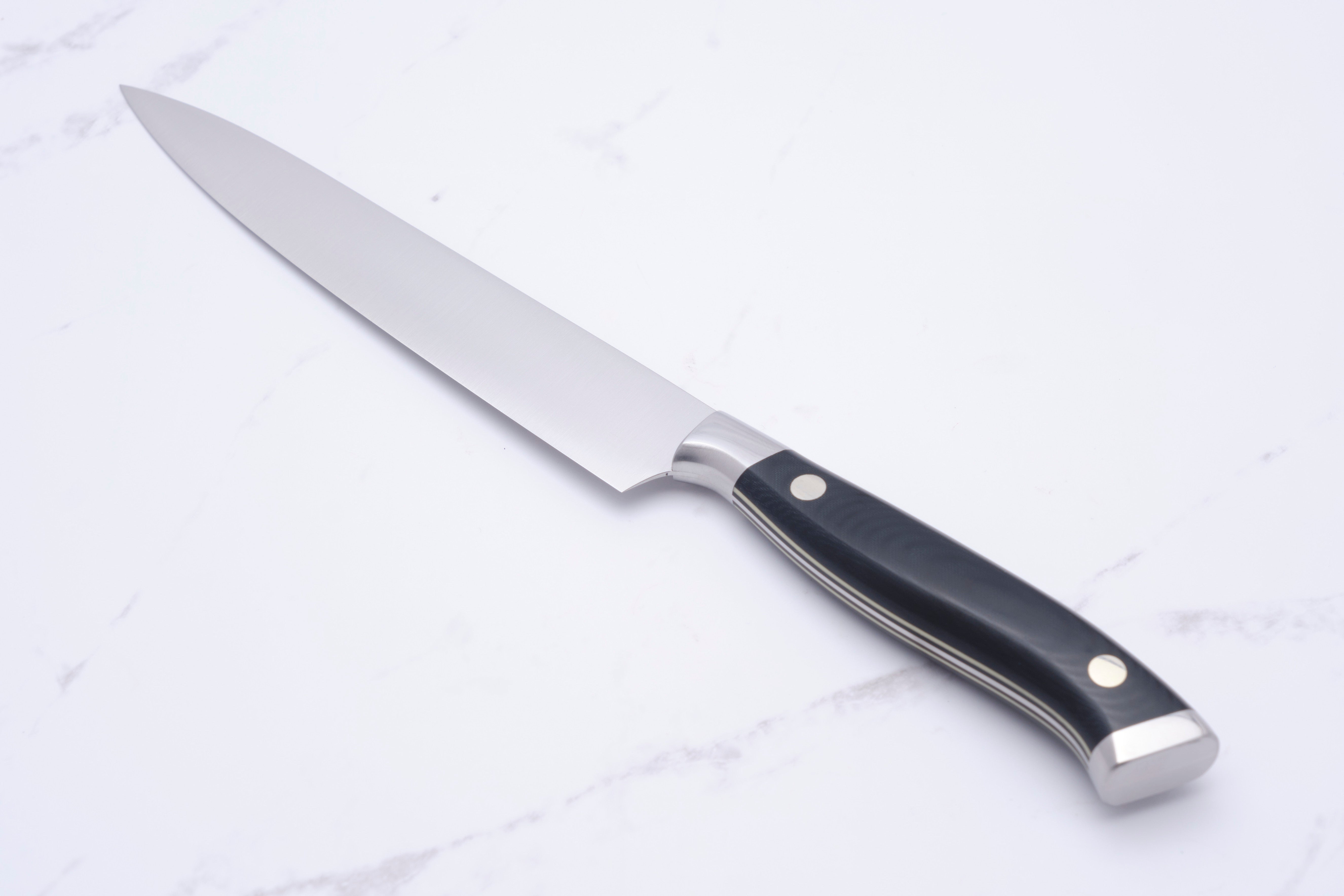 Among the most exclusive knife manufacturers in the world we find Nenox from Tokyo. The knife here is a 15 cm utility in western style with a fabulous edge and a beautiful handle. The handle in this case is made of black micarta