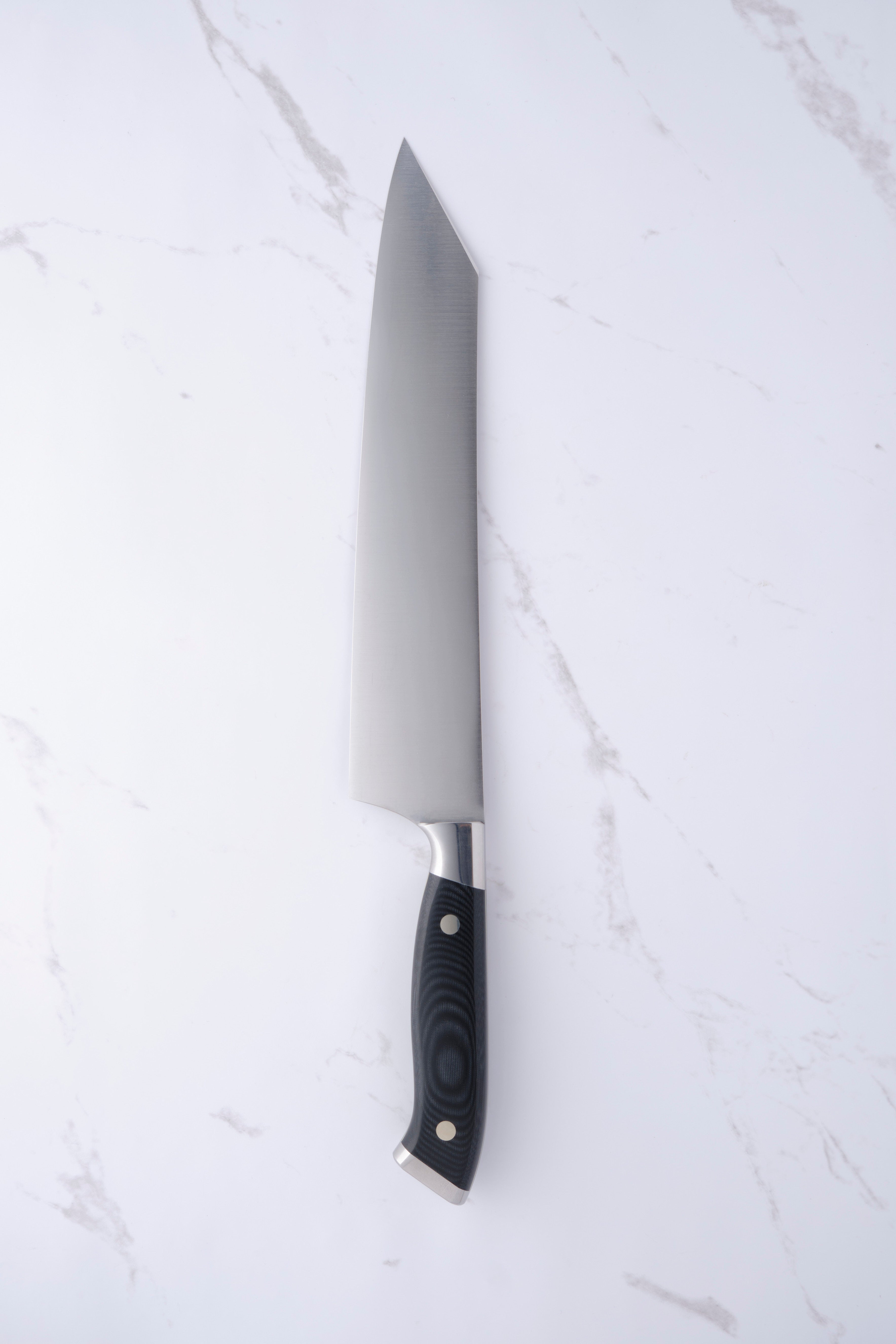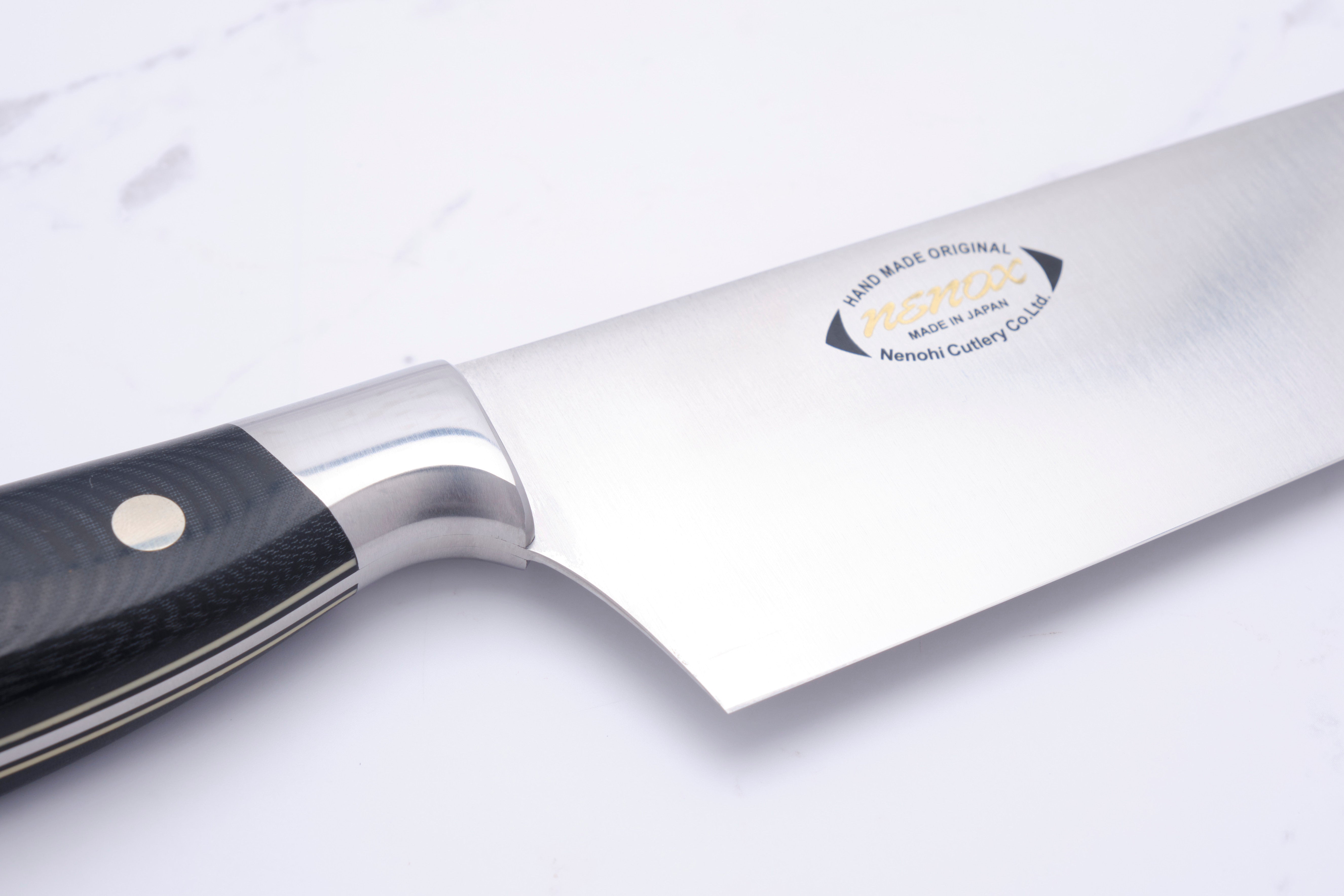 Among the most exclusive knife manufacturers in the world we find Nenox from Tokyo. The knife here is a 24 cm K-Tip Western-style chef's knife with a fabulous edge and a beautiful black micarta handle