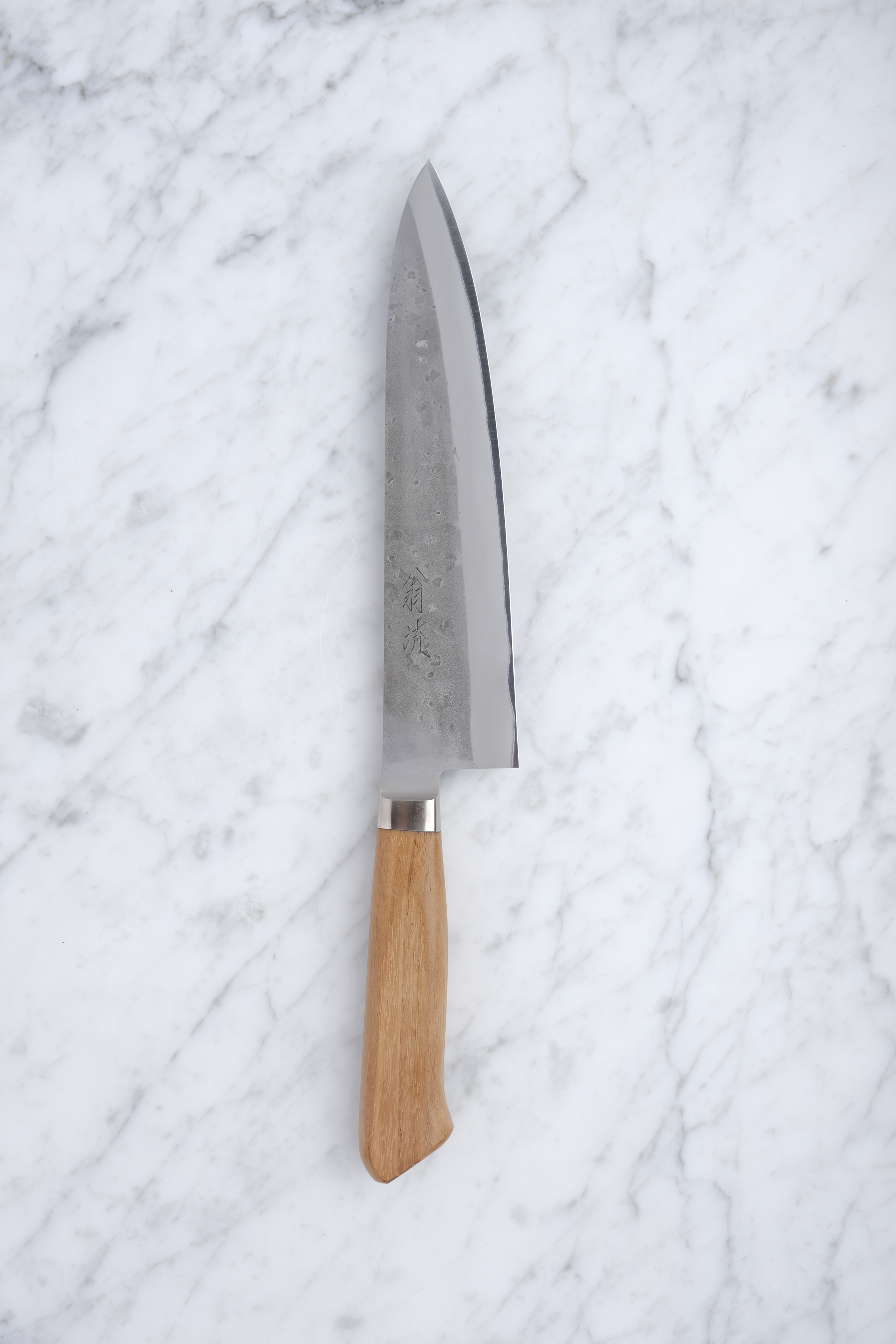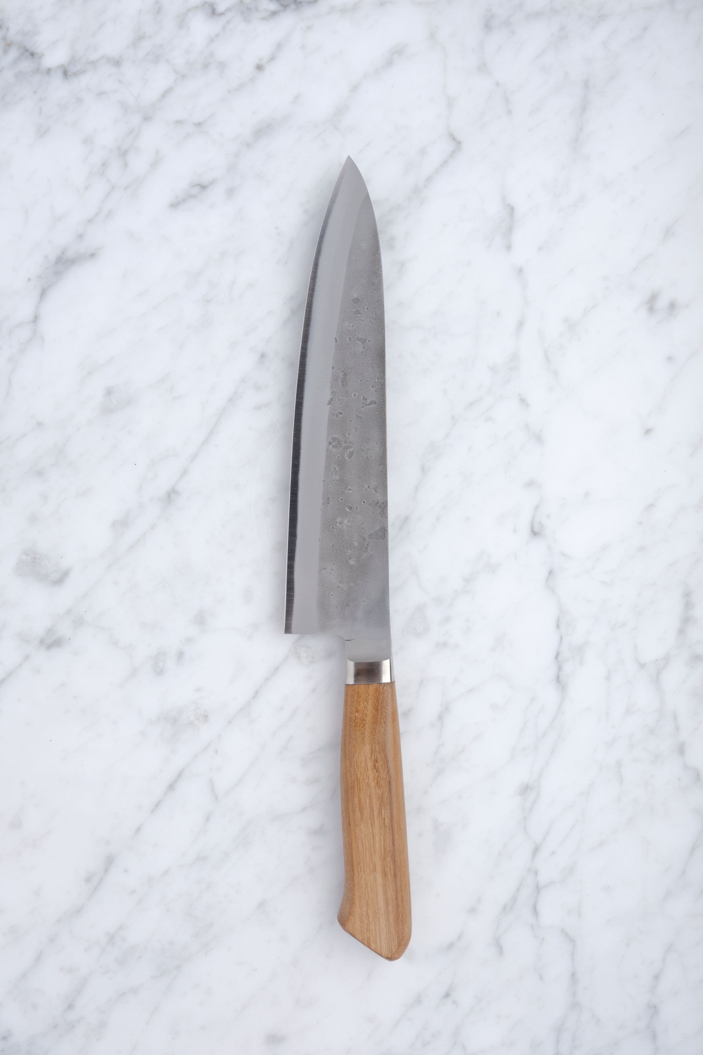This knife is a gyuto , which is also popularly called a chef's knife. This is 21 cm, and it is used for most tasks in the kitchen and is particularly good for slicing and chopping tasks in both meat and vegetables.