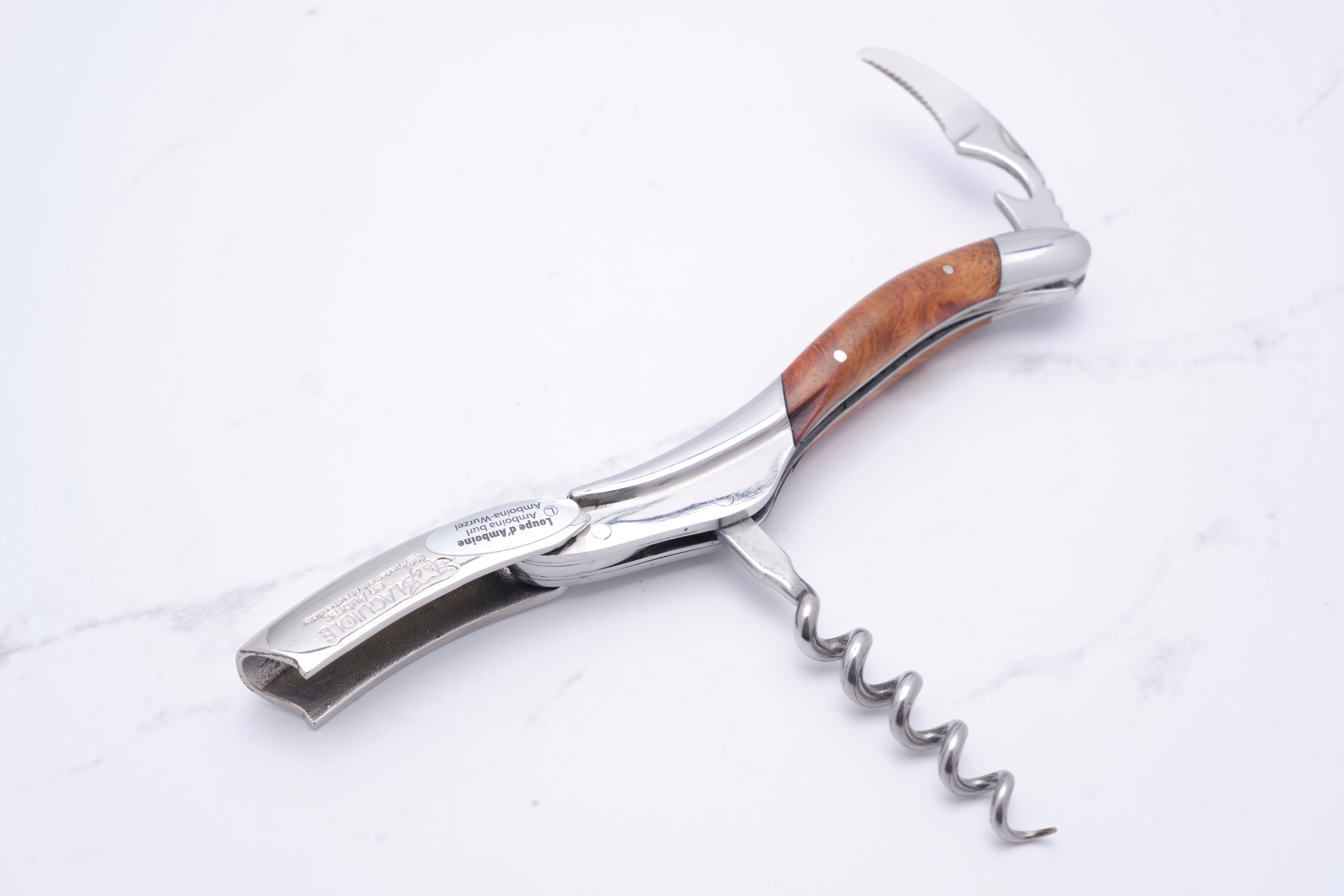 Laguiole en Aubrac has been around since 1829. From 1829 to 1880, the French company only produced steak and folding knives and it wasn't until 1880 that their corkscrews made their debut. The idea for the corkscrew came from the demand that had developed among men from the north of Aveyron who had traveled to Paris to work as waiters in the many small cafes.