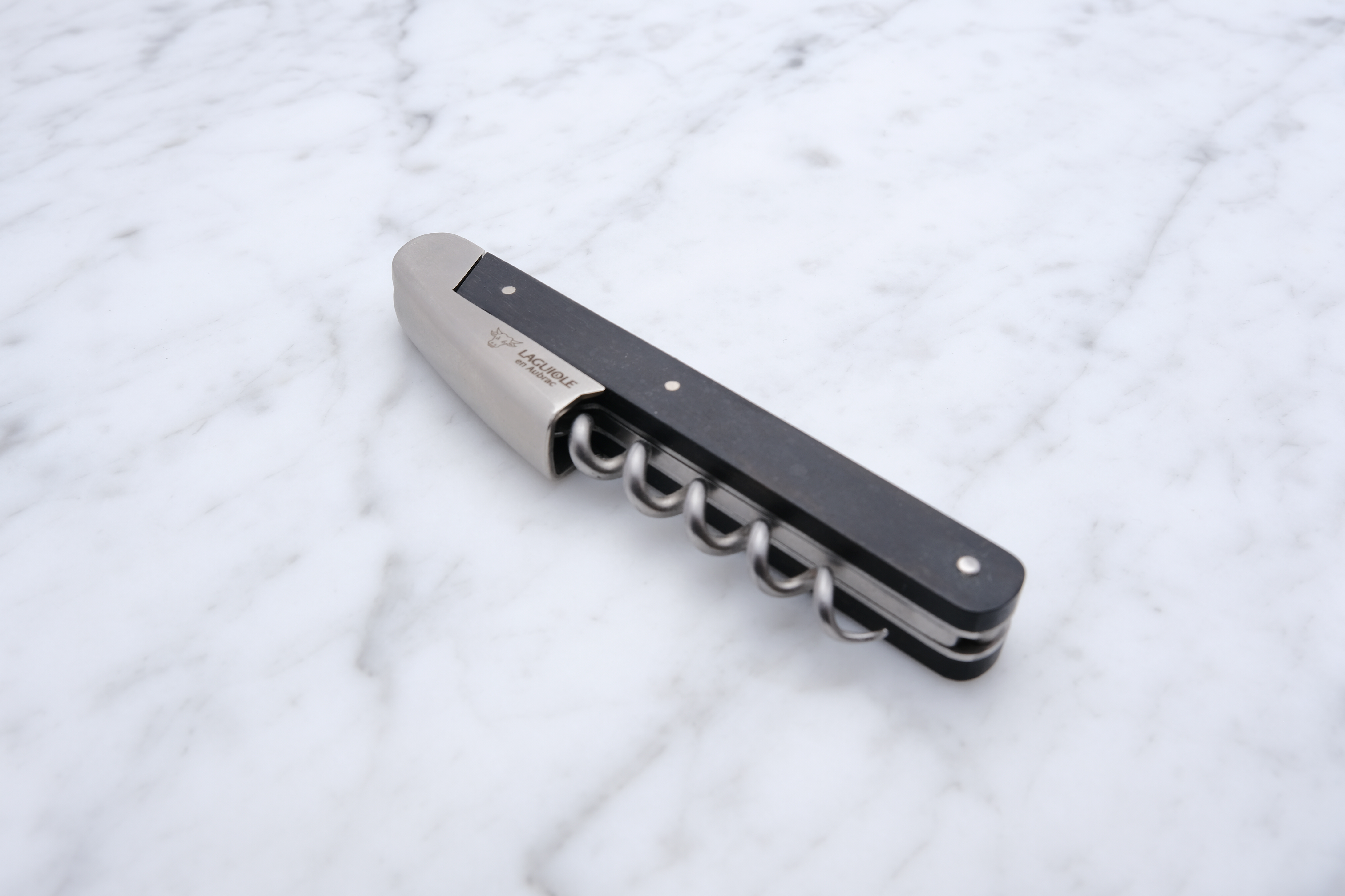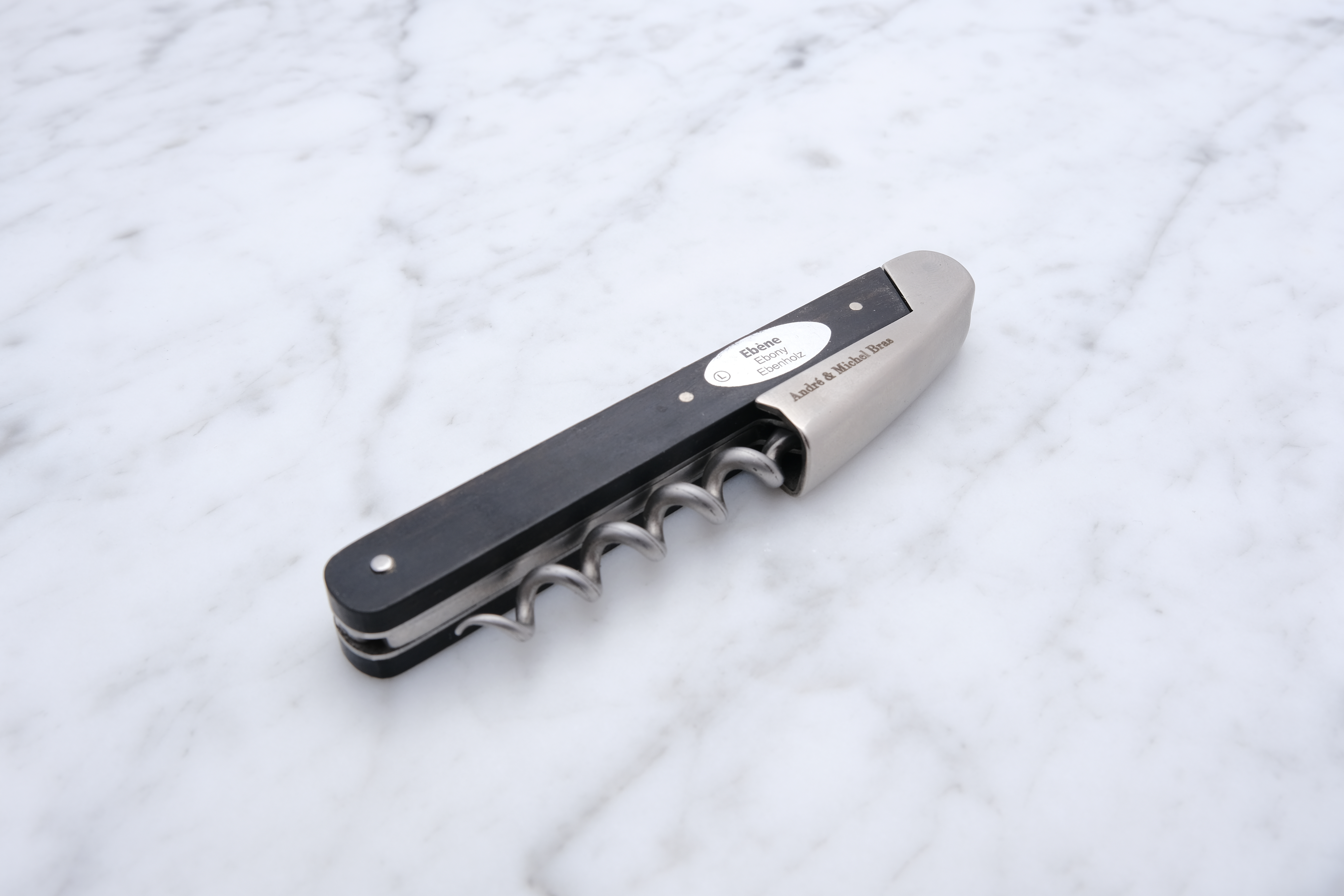 Corkscrew - Michel Bras Ebony from Laguiole En Aubrac is a masterpiece of French craftsmanship, designed by the famous Michelin chef Michel Bras. This elegant corkscrew, made of ebony, combines functionality with exceptional aesthetics. Since 1829, Laguiole En Aubrac has been synonymous with quality and tradition, and their corkscrews are no exception. The conical screw ensures a smooth penetration into the cork, making opening wine bottles a breeze. The molded cap prevents it from loosening over time, guaranteeing durability and reliability. With its highly polished steel finish, this corkscrew is not only a tool, but also a stylish accessory for any wine lover.