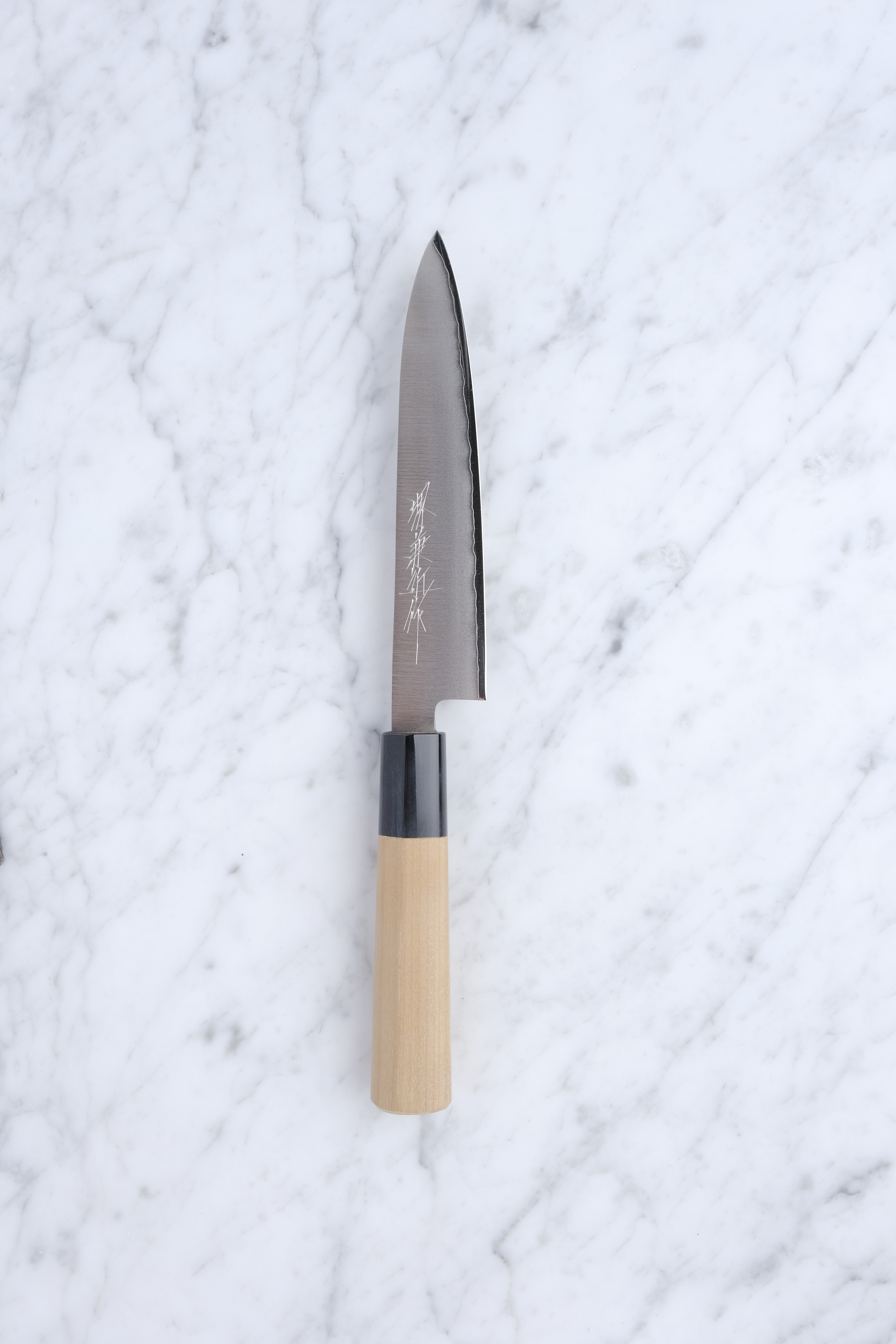 This knife is a utility , which is also called a petty knife. It is 15 cm, and it is used for the finer tasks such as trimming meat, or slightly more demanding cuts in fruit and vegetables. The cutting experience of this knife is poor in words, so it is a knife that must be tested to that extent. If you have the opportunity to drop by our store in Torvehallerne in Copenhagen, we will therefore be ready with carrots and a cutting board, so that you will be able to experience for yourself why this knife is so much better than most others out there.