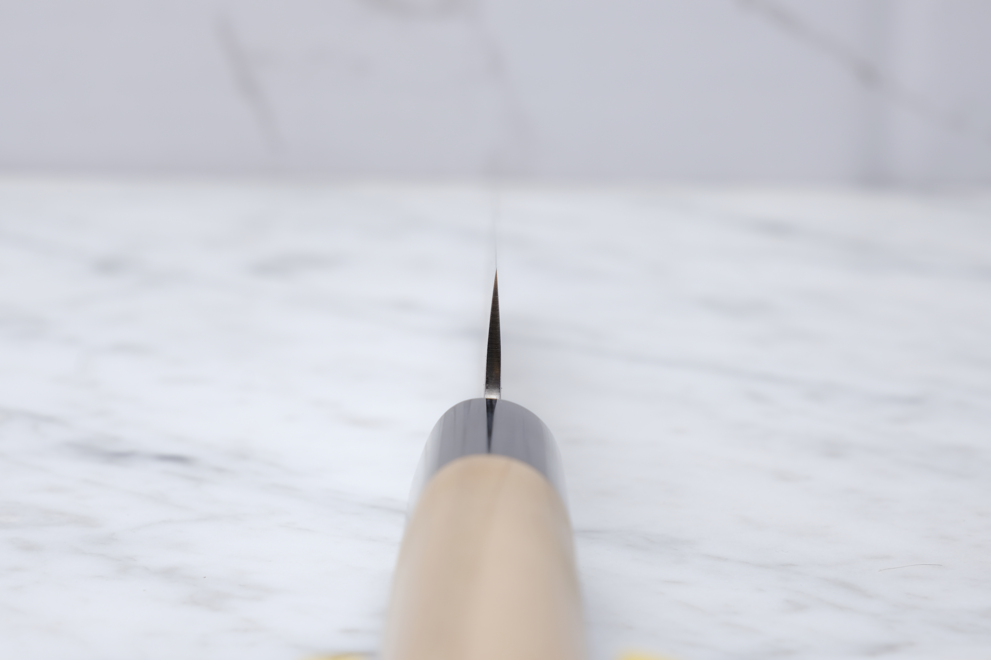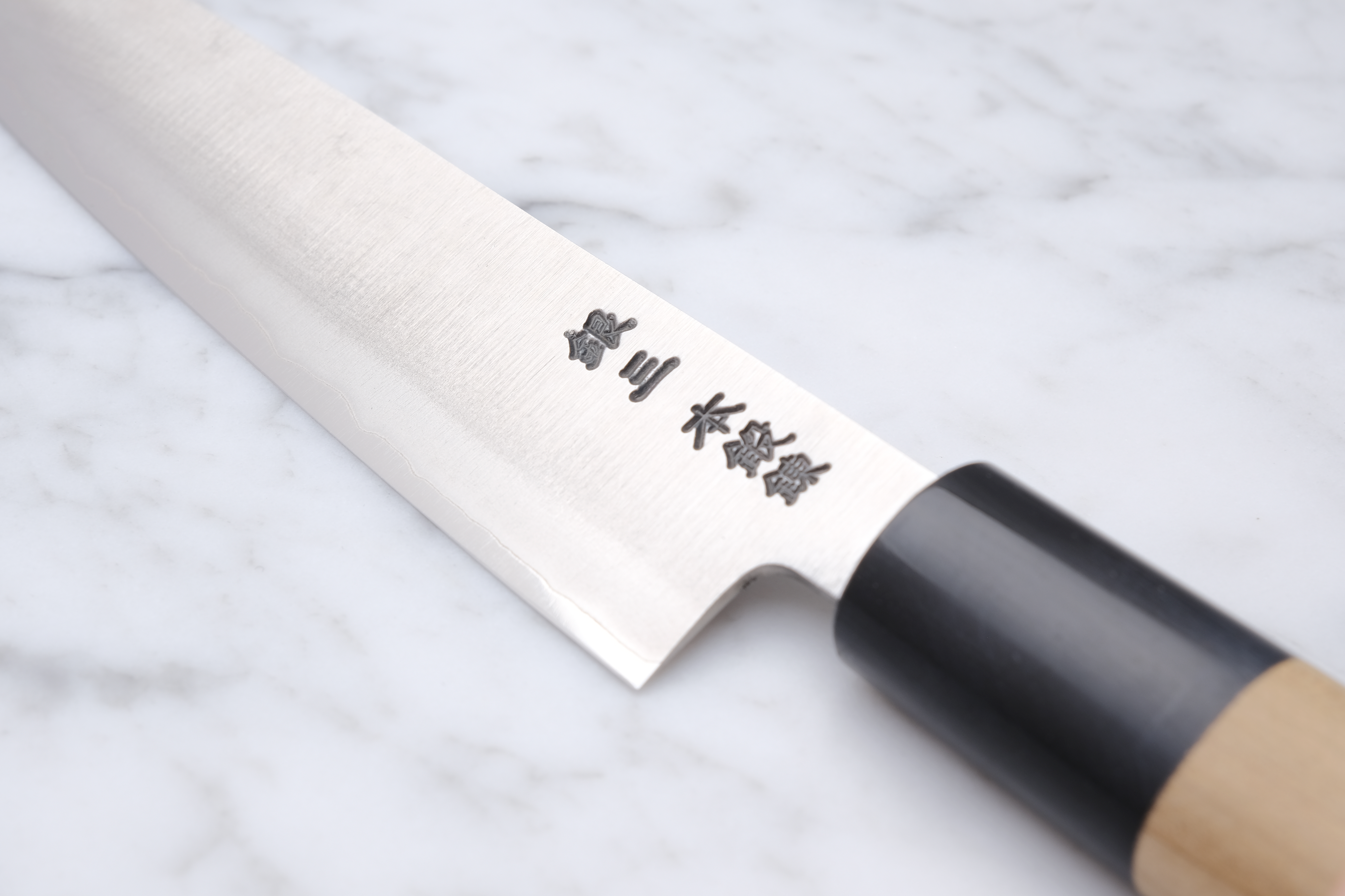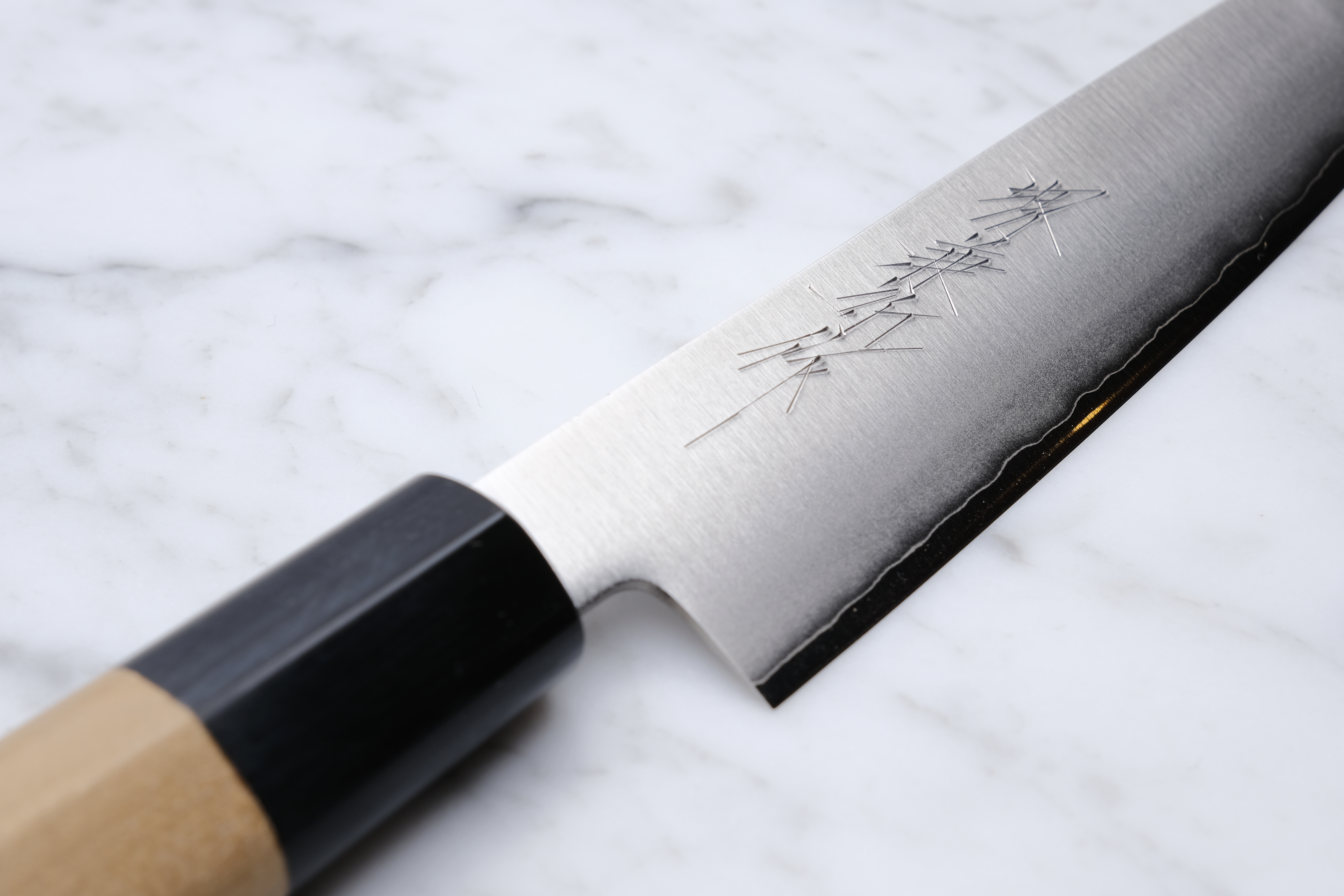 Mr. Fujii doesn't forge himself, he only grinds. This carefully thought-out division of labor ensures that, over the 50+ years he has been sharpening knives, he has acquired a fantastic competence. When we write grinding in this case, it is not just the finishing grind, but also what you can call 'the initial grind'. That is, from the raw, forged blade to the finished and sharp knife.