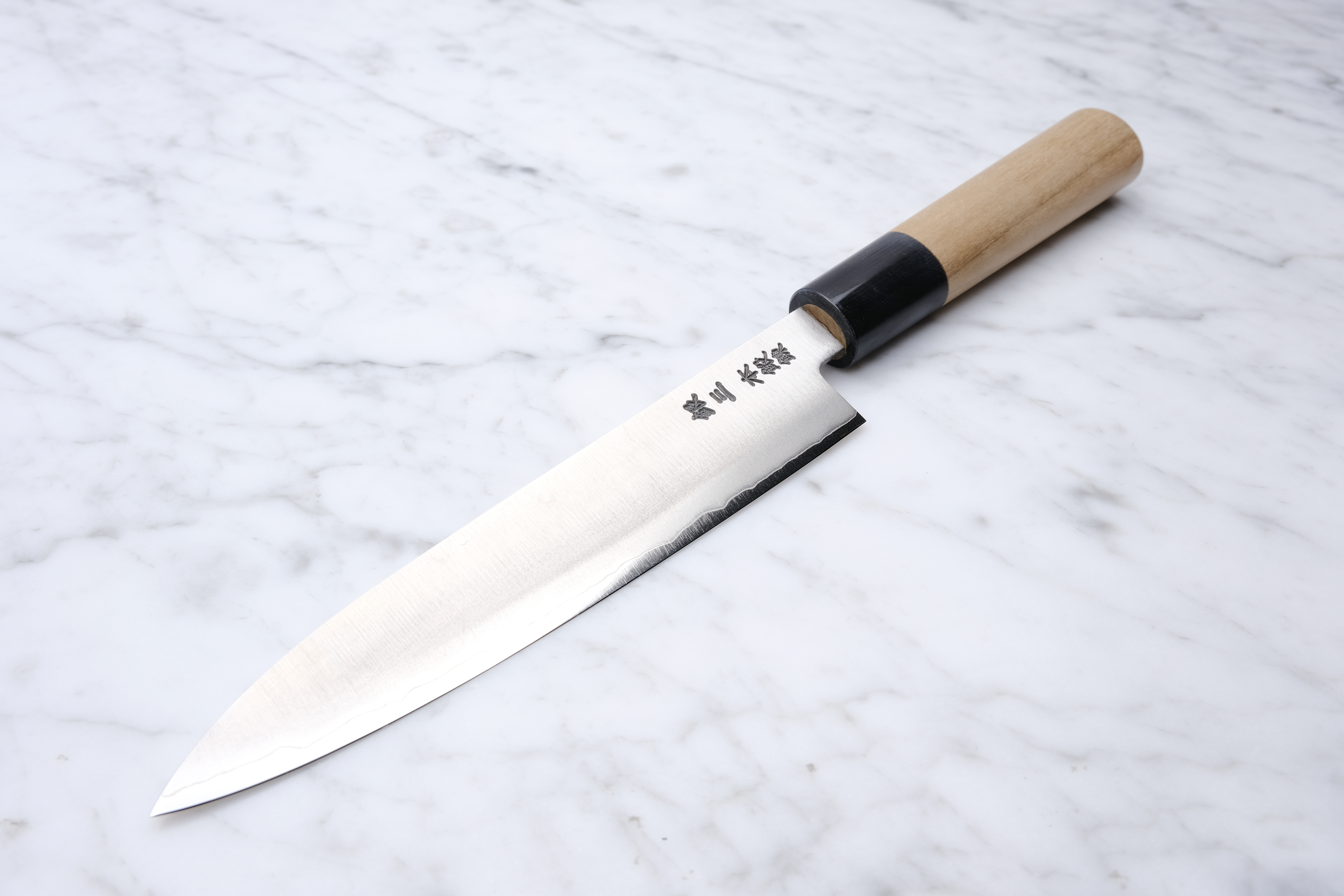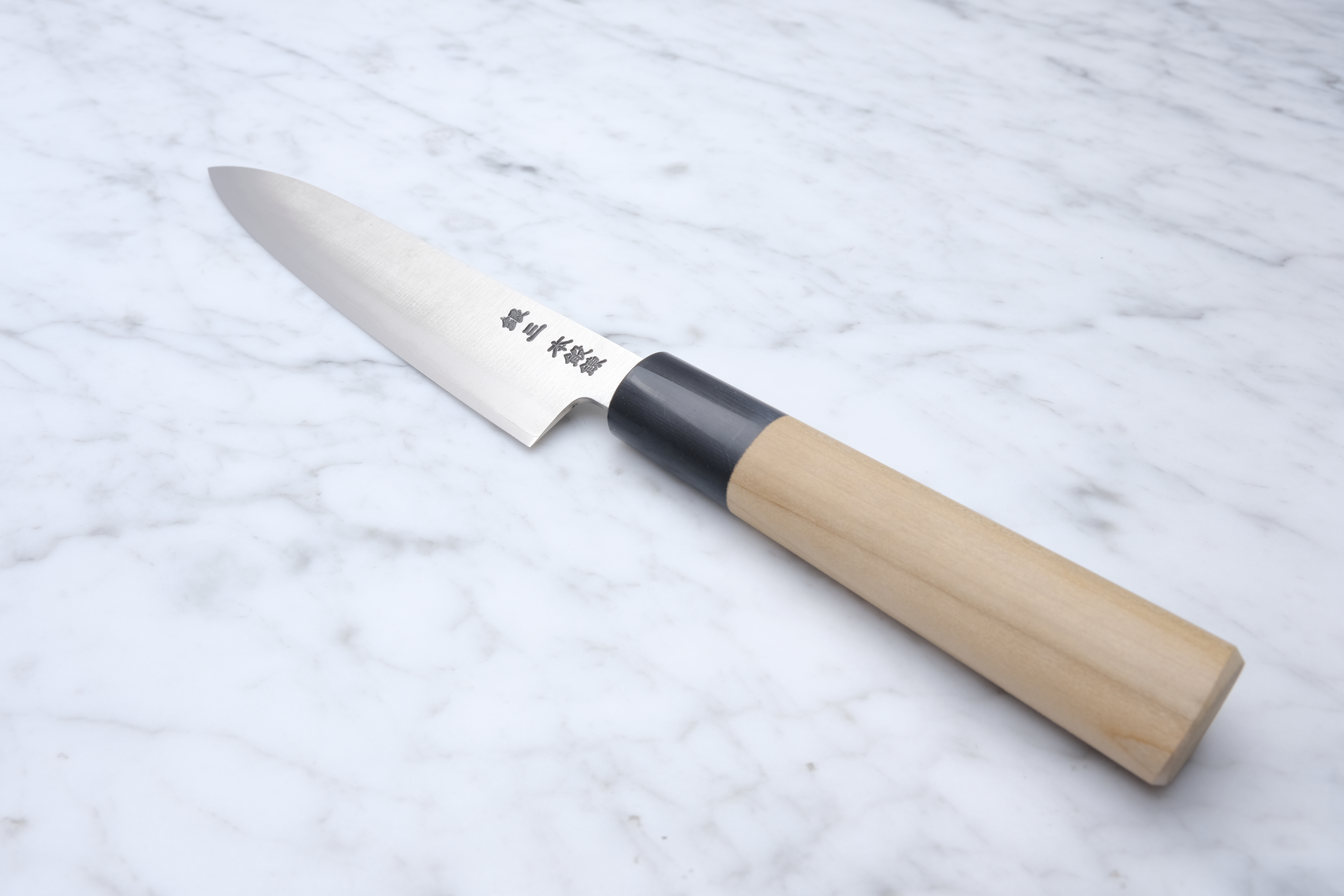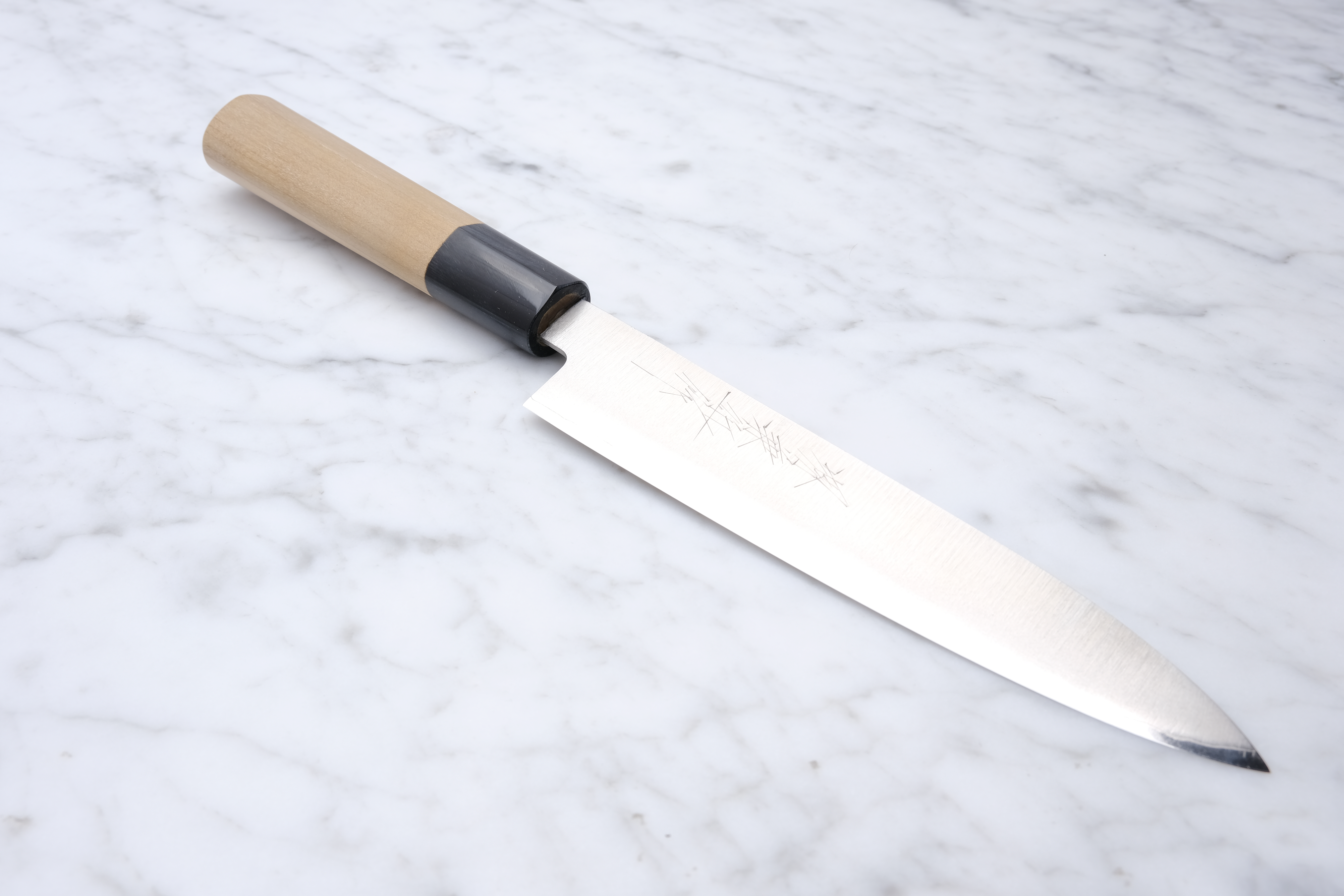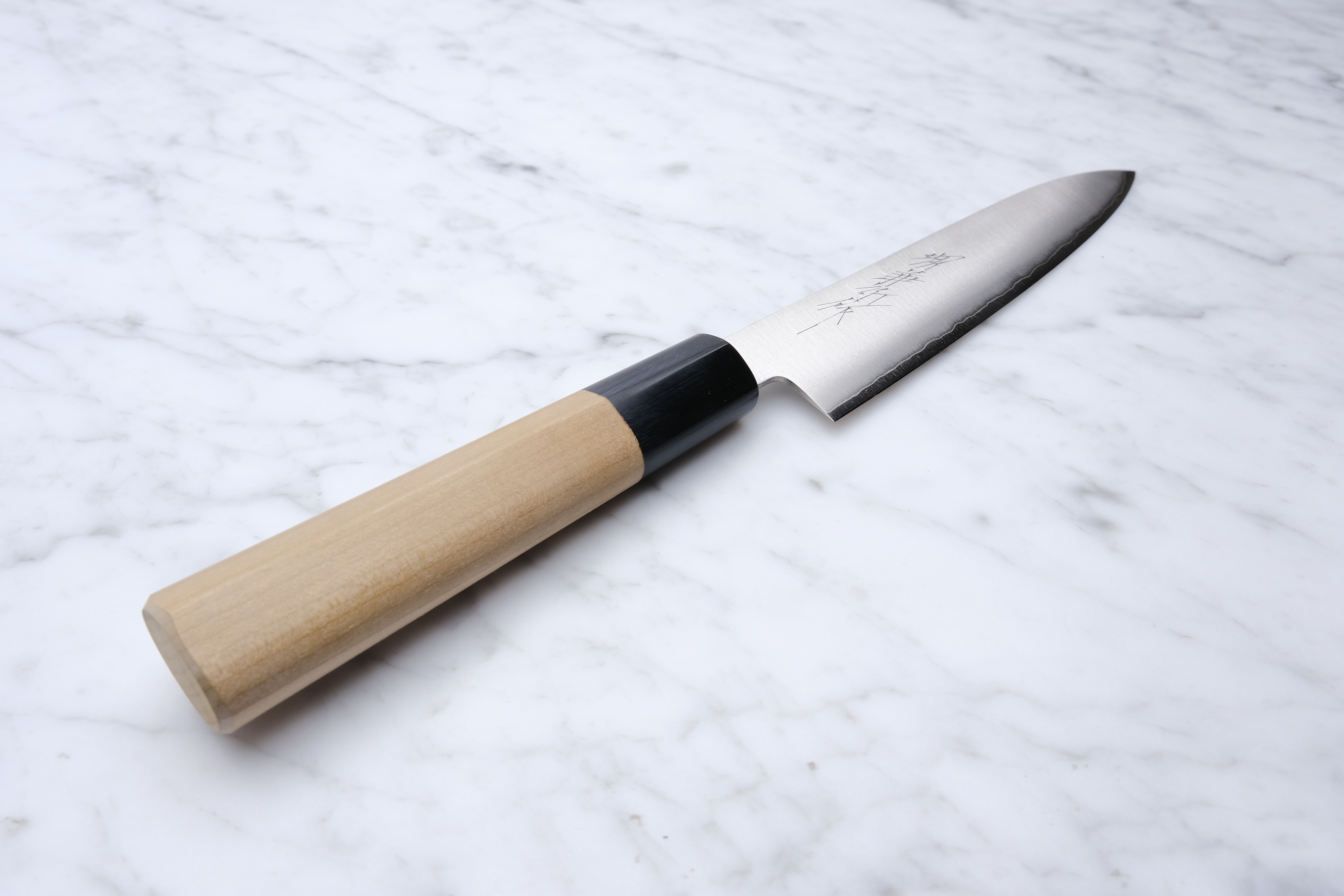 Mr. Fujii doesn't forge himself, he only grinds. This carefully thought-out division of labor ensures that, over the 50+ years he has been sharpening knives, he has acquired a fantastic competence. When we write grinding in this case, it is not just the finishing grind, but also what you can call 'the initial grind'. That is, from the raw, forged blade to the finished and sharp knife.